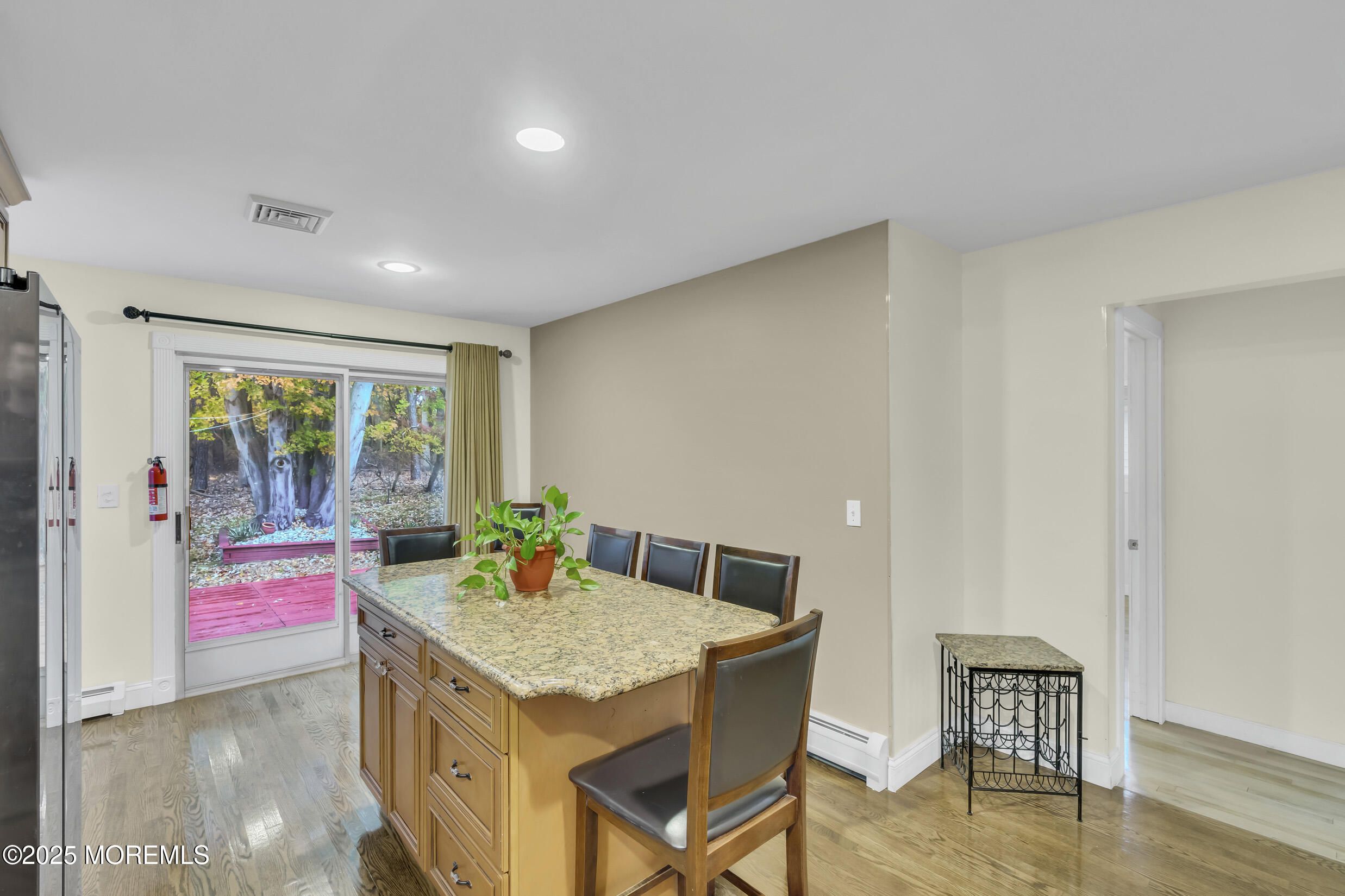 Iimmaculate, move-in ready home in Holiday City Silverton has been beautifully renovated and maintained. Among its special features are: lightened and refinished hardwood floors; decorative dental mouldings and 2-panel doors throughout; a gorgeous kitchen with granite counters and a large center island; a newer refrigerator (2022); high-end custom cabinets; and sliding doors opening to a large deck and private yard bordered by trees. The remodeled bathroom houses the washer/dryer and a walk-in shower. This home's unique stucco facade and landscaping, the double-wide concrete driveway and the newer Timberline roof (2021) maximizes curb appeal and value. All this and it is located near all shopping, dining and the Jersey Shore's world-famous beaches, boardwalks and entertainment. Hurry to make your appointment for a private showing of this special home.