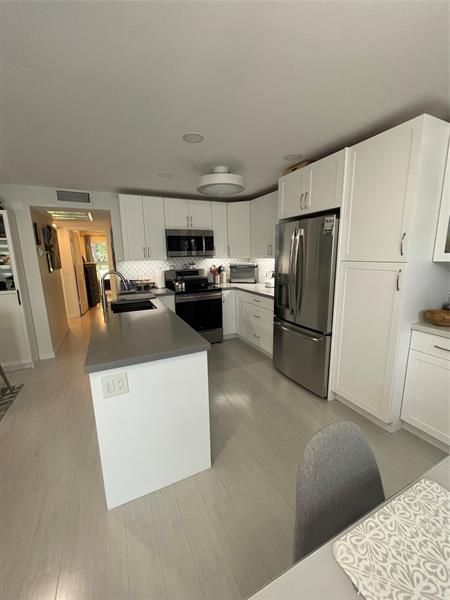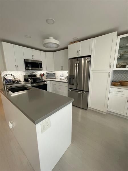 MUST SEE! FULLY RENOVATED GORGEOUS 2 bedroom, 2 bath condo in High Rise Bldg, Garden View. Located in active adult community in the heart of Deerfield Beach. Remodeled w/ Permits. HURRICANE IMPACT FRONT DOOR & WINDOWS. TONS of CUSTOM FEATURES including Hunter Douglas window shades w/ remotes. Open kitchen w/ induction cooktop, stainless steel appliances, w/ slow close cabinets. Quartz counter tops in kitchen & bathroom. Extra queen size bed on patio & murphy bed. Plenty of space for guests! His/Her closets & walk-in closet in primary bedroom. CVE offers resort style amenities including a lavish clubhouse, 1,500 seat theater, premier performances, shuttle buses, state of the art gym, pickleball, tennis, pools, movies & classes. Close to shopping, restaurants & beach. Assoc claims 55+.
