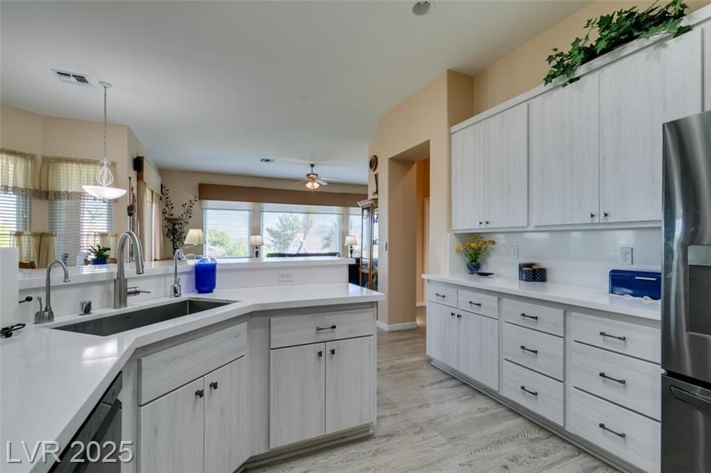 *Stunning “Sapphire Model”—Fully Transformed! Perched on an elevated lot with views of the foothills*This home dazzles from the moment you arrive*Gorgeous paver-stone driveway & walkway that's complemented by beautifully manicured landscaping*Well-designed floorplan, bedrms on opposite wings of the home*Expansive main suite features a bayed-window area, perfect for a cozy sitting nook*Gourmet kitchen with upgraded cabinetry, quartz countertops, premium appliances, vinyl-plank flooring*The home boasts brand-new Andersen windows, motorized drop-down blinds, new top-of-the-line water-softening system* Newer Air Conditioning system*Ceiling fans*Brand-new washer & dryer included*Oversized garage offers a workshop area, built-in cabinets, new evaporative cooler*Fully owned solar-panel system, efficient - eco-friendly power*Step outside to a incredible backyard retreat,extended covered patio,built-in barbecue, paver stone accents,lush landscaping—ideal for entertaining or peaceful relaxation.