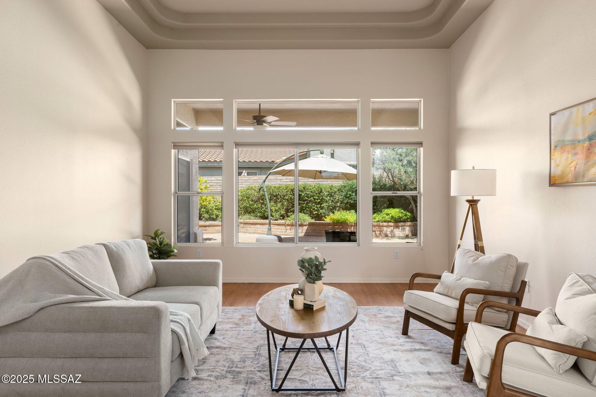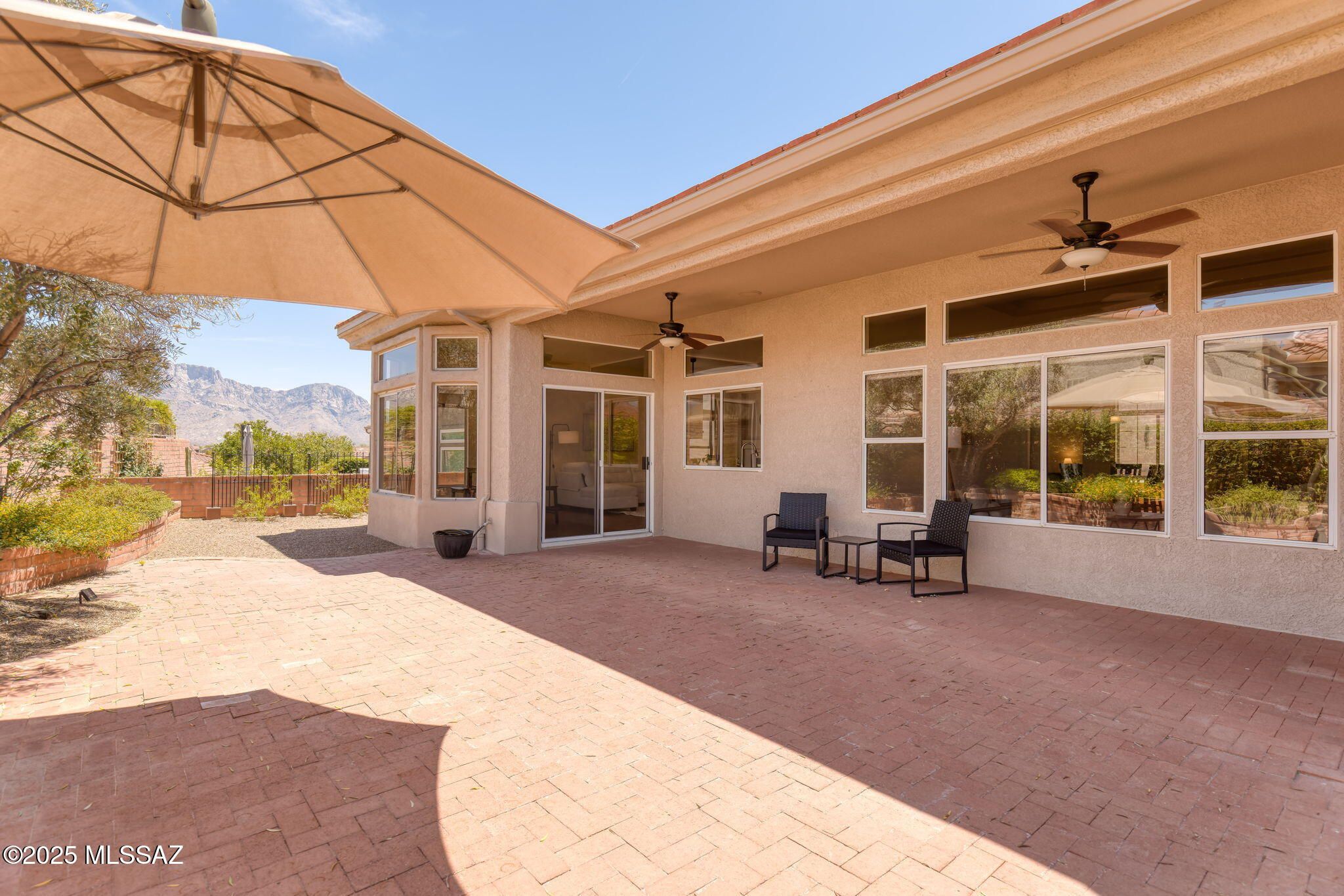 Located within the prestigious active adult community of Sun City Oro Valley, this beautifully appointed home offers more than just a place to live, it offers a vibrant lifestyle. Residents here don't just reside, they thrive!Enter through a gated front courtyard adorned with pavers and take in Arizona's breathtaking sunsets. As you head inside, you're welcomed by a grand entryway leading into the sought-after Regent model, known for its spacious layout and timeless architectural features. Tray ceilings, decorative pillars, and natural light create a graceful ambiance, while expansive picture windows frame serene views and fill the home with warm, natural tones. 2 bedrooms, 2 and a half bathrooms, a spacious den and separate flex room, new roof 2025, HVAC 2022- this home has it all!