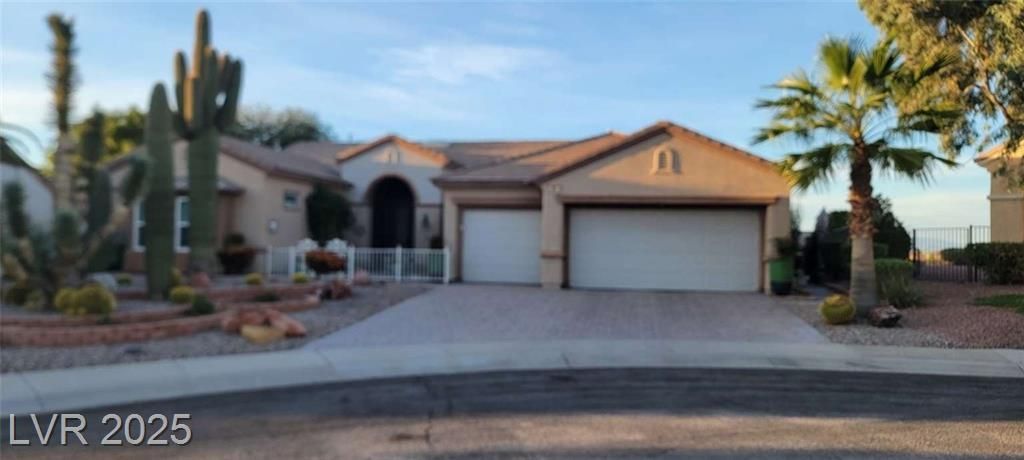 Welcome to this charming single-story home, set on a spacious 0.28-acre lot within a highly desirable 55 + community. Enjoy energy-efficient living with a solar-powered pool water heater and an open, light-filled floor plan. The generously sized primary suite offers comfort and privacy, while the backyard oasis features desert landscaping and sweeping views of the Las Vegas skyline. Move-in ready and beautifully maintained, this home blends style and comfort with access to resort-style amenities perfect for an active lifestyle.