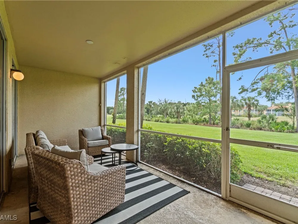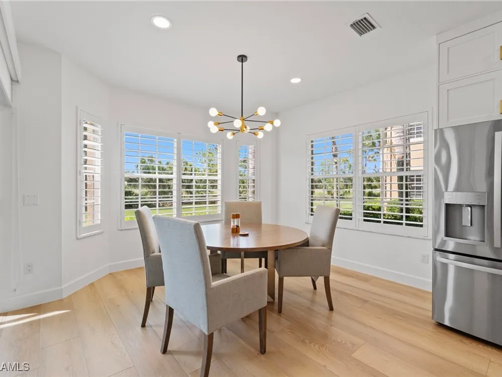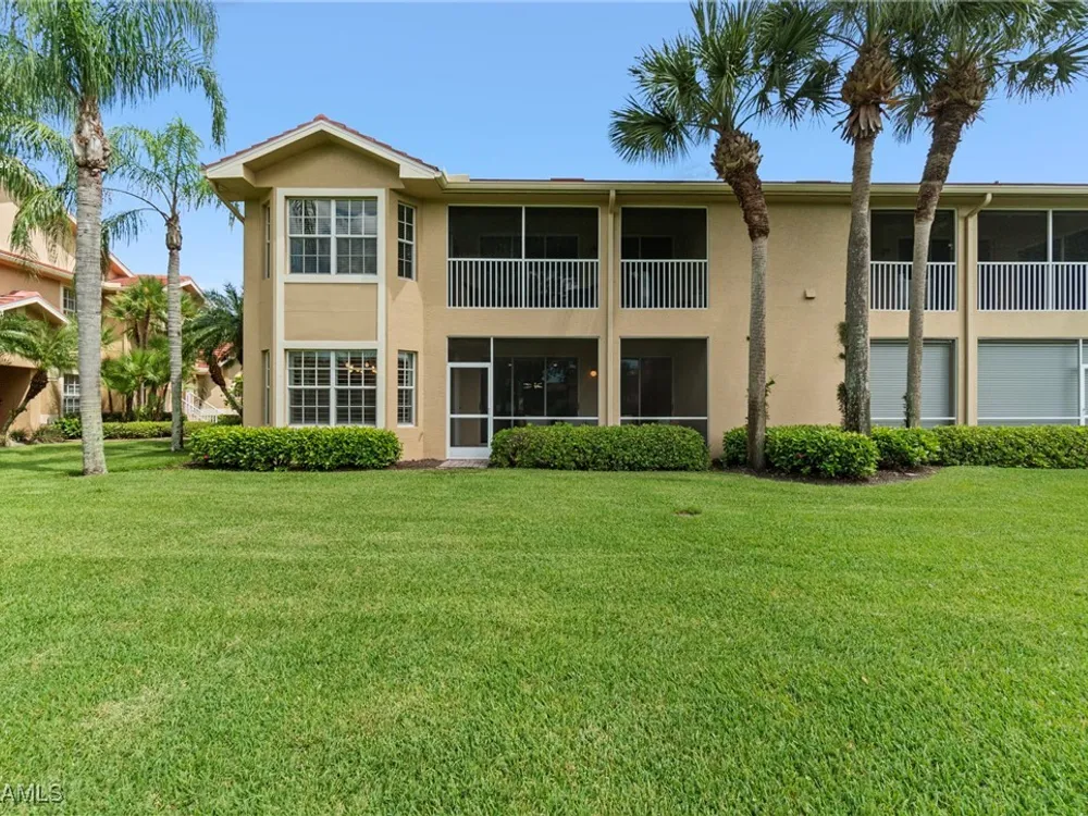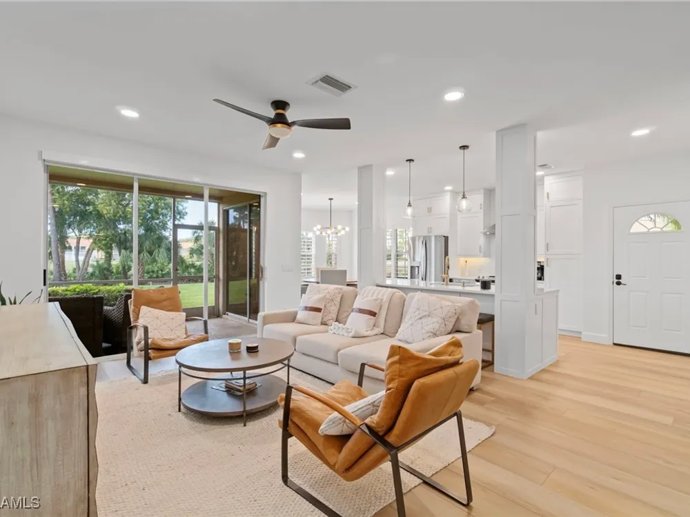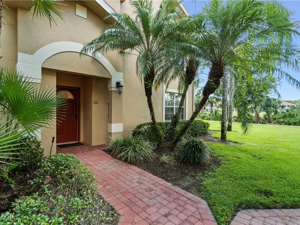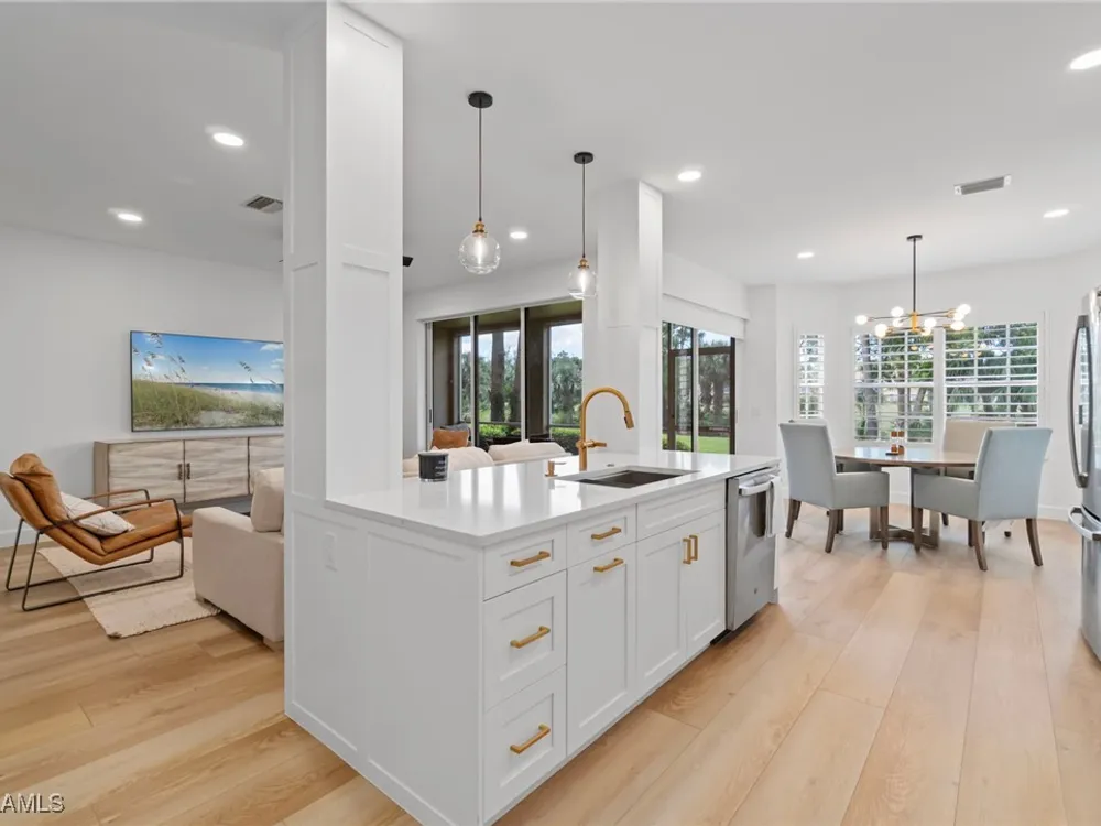 LUXURY RENOVATION – RECESSED LIGHTING – MODERN FIXTURES! This beautifully renovated condo blends modern elegance with everyday comfort, showcasing high-end luxury vinyl flooring, recessed lighting, modern fixtures, hardware, and fresh designer paint throughout. A custom accent wall in the dining room adds sophistication, while the primary suite features a chic accent wall, blackout shade, and calming views. The spa-like bathrooms offer touch-light mirrors and a spacious primary shower for a true retreat experience. Additional highlights include upgraded finishes, elegant details, and move-in-ready style. Optional golf and sports memberships provide access to an 18-hole championship course, tennis, fitness center, and more, with a social membership required to enjoy the vibrant community lifestyle. Perfectly located near RSW Airport, shopping, dining, entertainment, and Gulf beaches, this condo delivers the best of Southwest Florida living! THIS PROPERTY QUALIFIES FOR A 1% LENDER INCENTIVE IF USING PREFERRED LENDER, INQUIRE FOR MORE DETAILS**