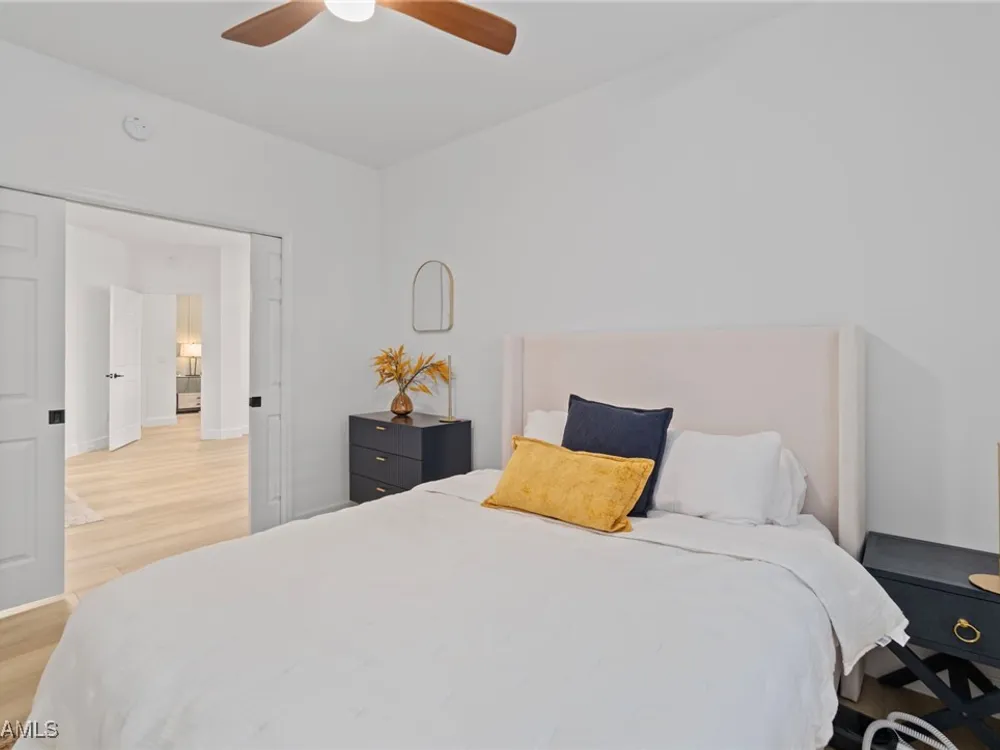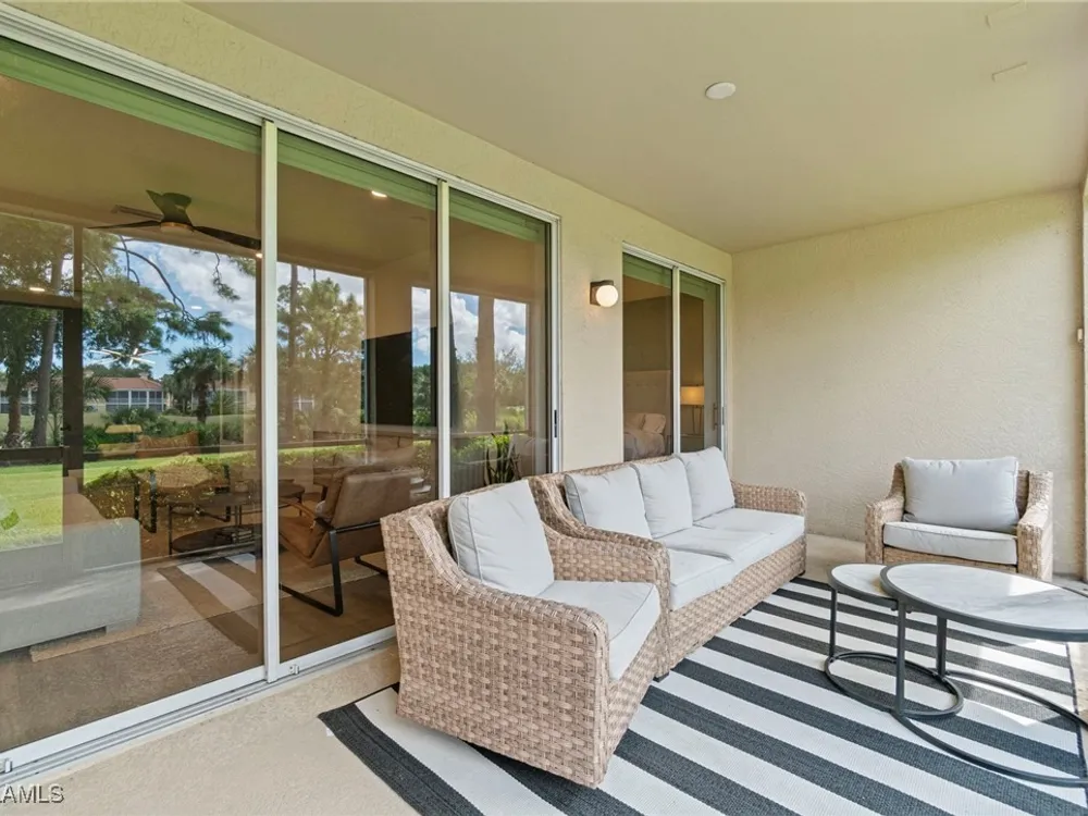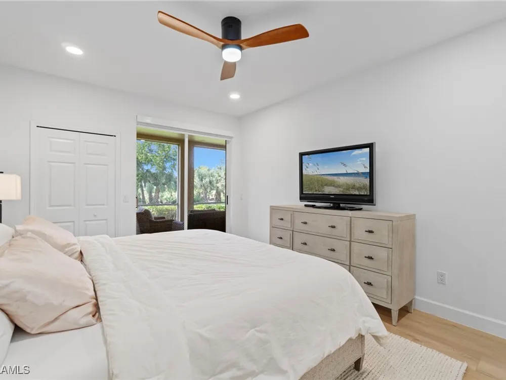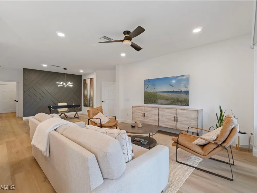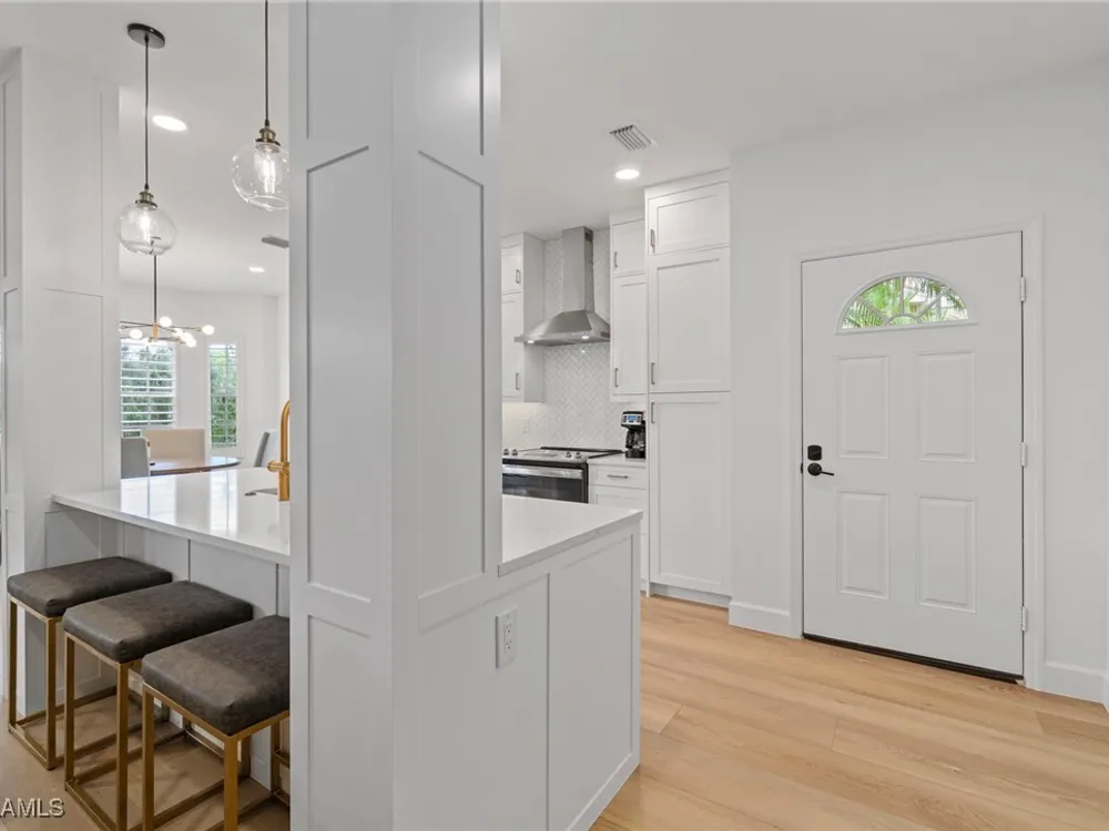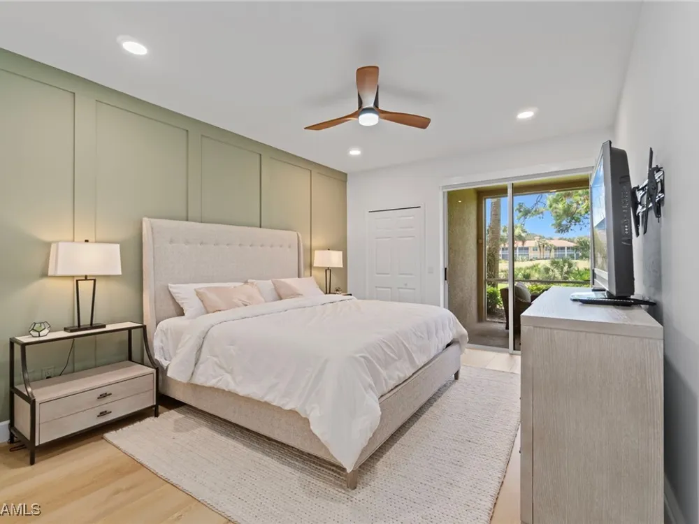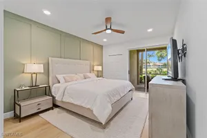 LUXURY RENOVATION – RECESSED LIGHTING – MODERN FIXTURES! This beautifully renovated condo blends modern elegance with everyday comfort, showcasing high-end luxury vinyl flooring, recessed lighting, modern fixtures, hardware, and fresh designer paint throughout. A custom accent wall in the dining room adds sophistication, while the primary suite features a chic accent wall, blackout shade, and calming views. The spa-like bathrooms offer touch-light mirrors and a spacious primary shower for a true retreat experience. Additional highlights include upgraded finishes, elegant details, and move-in-ready style. Optional golf and sports memberships provide access to an 18-hole championship course, tennis, fitness center, and more, with a social membership required to enjoy the vibrant community lifestyle. Perfectly located near RSW Airport, shopping, dining, entertainment, and Gulf beaches, this condo delivers the best of Southwest Florida living! THIS PROPERTY QUALIFIES FOR A 1% LENDER INCENTIVE IF USING PREFERRED LENDER, INQUIRE FOR MORE DETAILS**