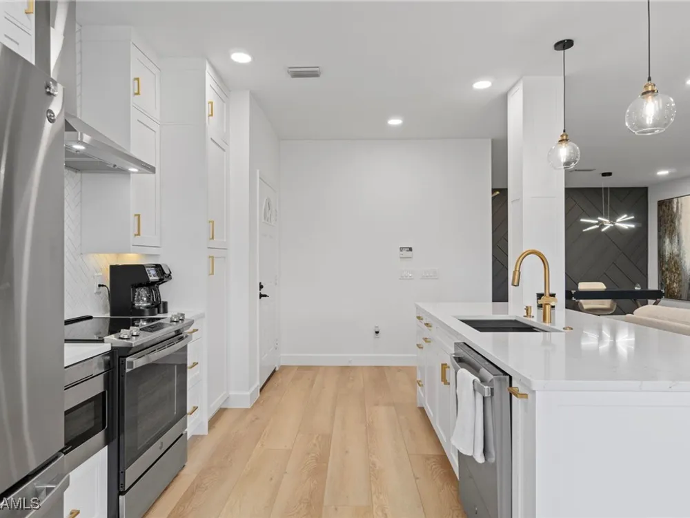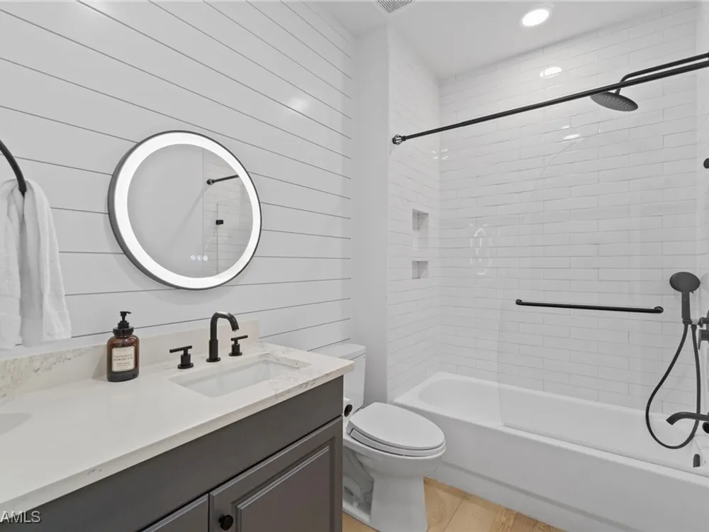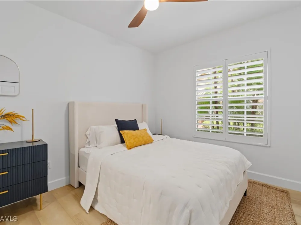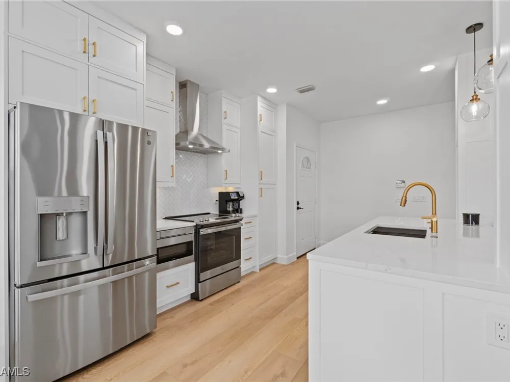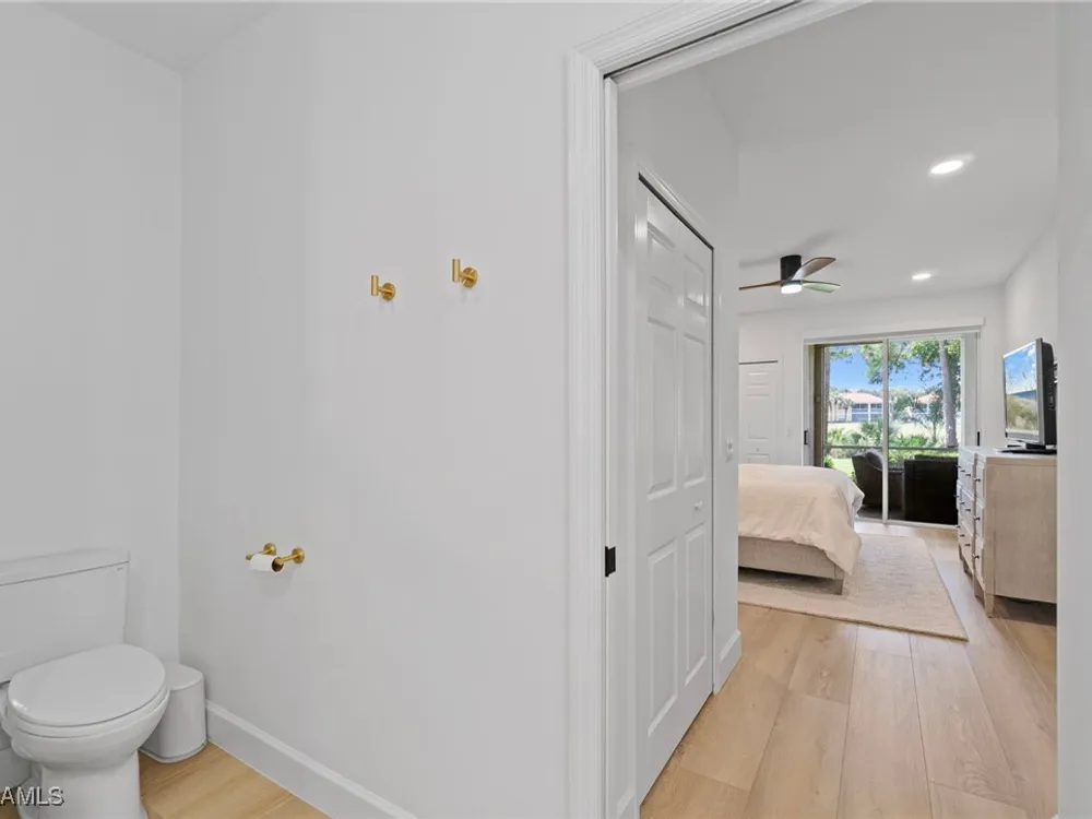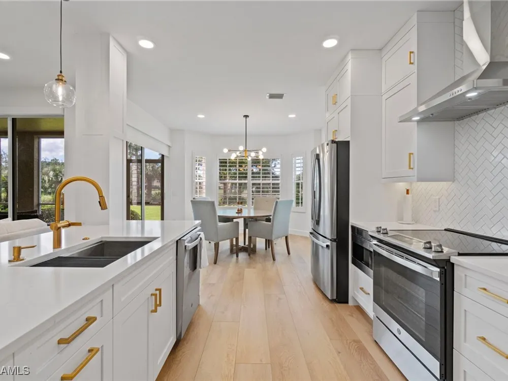 LUXURY RENOVATION – RECESSED LIGHTING – MODERN FIXTURES! This beautifully renovated condo blends modern elegance with everyday comfort, showcasing high-end luxury vinyl flooring, recessed lighting, modern fixtures, hardware, and fresh designer paint throughout. A custom accent wall in the dining room adds sophistication, while the primary suite features a chic accent wall, blackout shade, and calming views. The spa-like bathrooms offer touch-light mirrors and a spacious primary shower for a true retreat experience. Additional highlights include upgraded finishes, elegant details, and move-in-ready style. Optional golf and sports memberships provide access to an 18-hole championship course, tennis, fitness center, and more, with a social membership required to enjoy the vibrant community lifestyle. Perfectly located near RSW Airport, shopping, dining, entertainment, and Gulf beaches, this condo delivers the best of Southwest Florida living! THIS PROPERTY QUALIFIES FOR A 1% LENDER INCENTIVE IF USING PREFERRED LENDER, INQUIRE FOR MORE DETAILS**