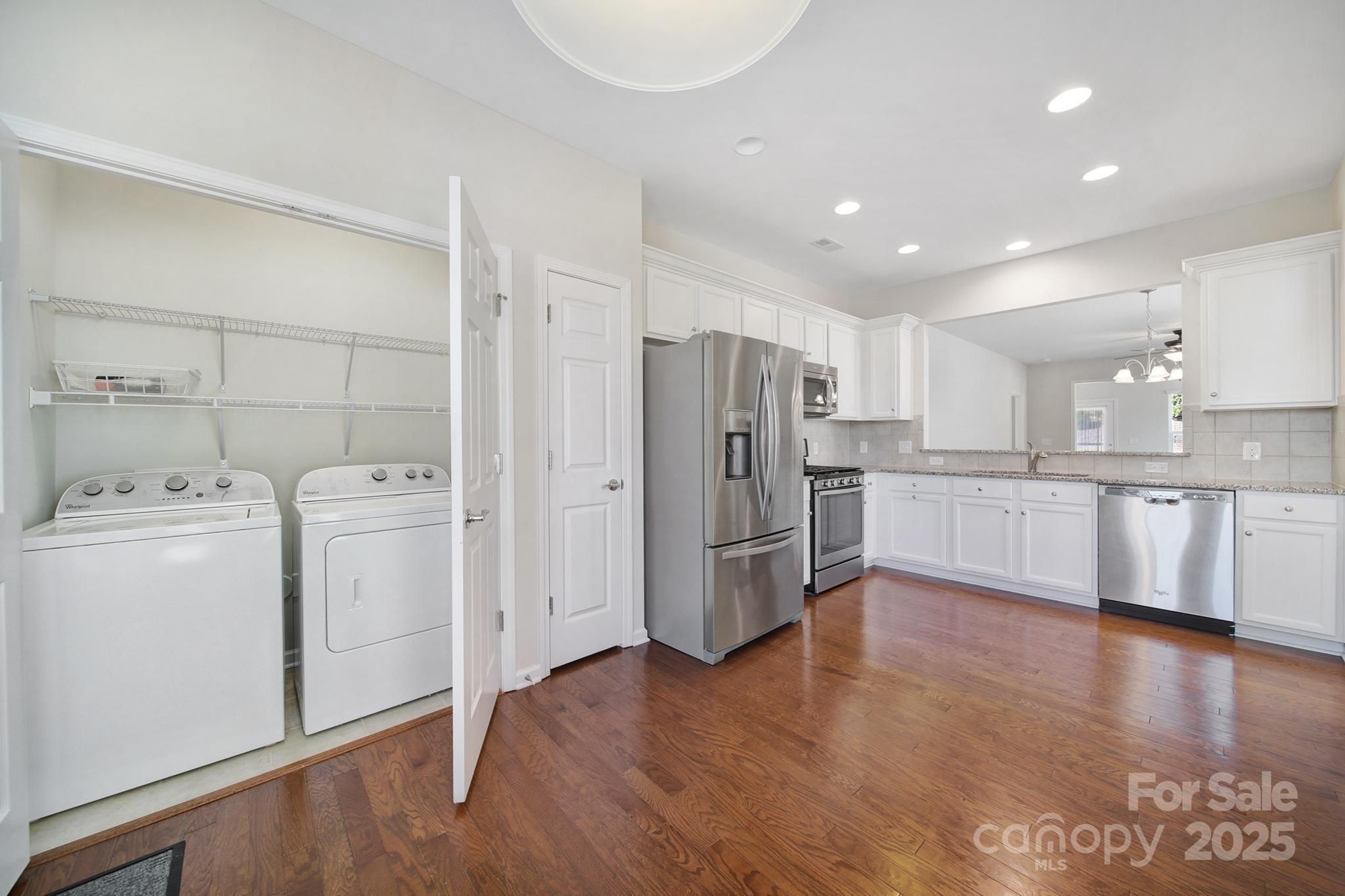 - Dishwasher, Disposal, Gas Range, Microwave, Oven, Refrigerator, Washer/Dryer