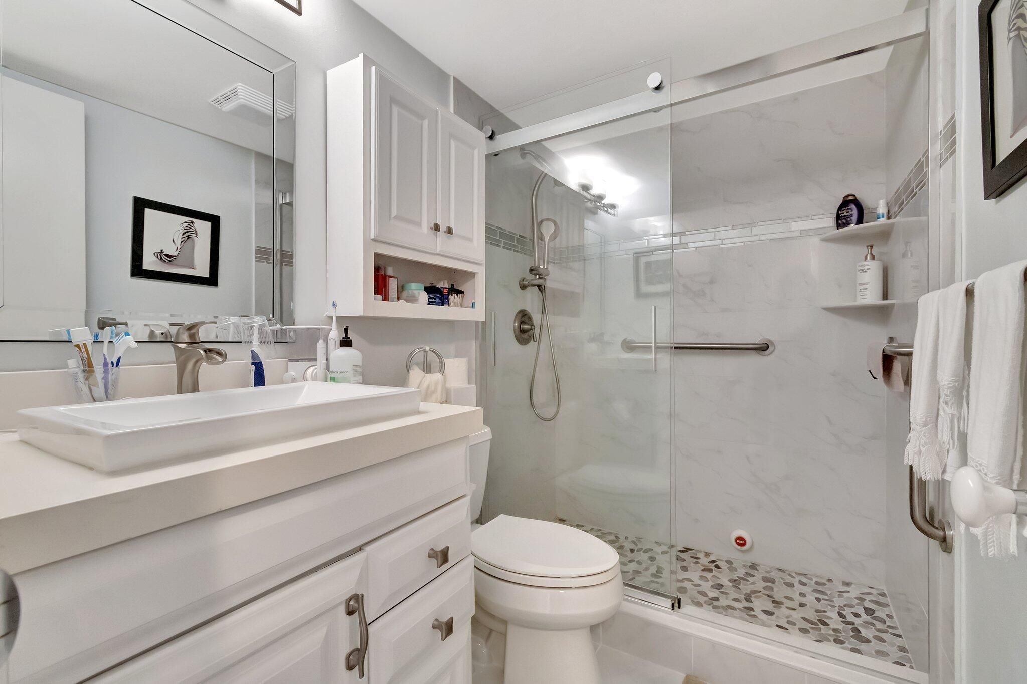 CENTURY VILLAGE, BOCA RATON--SUPER ACTIVE ADULT COMMUNITY. This second-floor lakeside property in a highly desirable area is now available for sale. The Cornwall section can be rented immediately for at least 3 months, making it a great investment opportunity for investors and end-users. The second-floor unit offers a breathtaking view of the lake and is located in a well-maintained, active adult community. The unit has plenty of storage space, a shared laundry room, and a patio perfect for gatherings and morning coffee. The enclosed screened, glassed in patio, can be used year-round as a home office or hobby room. The updated galley-style kitchen features granite countertops, a backsplash, and beautiful real wood cabinets.