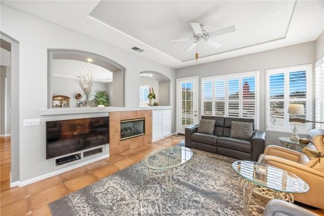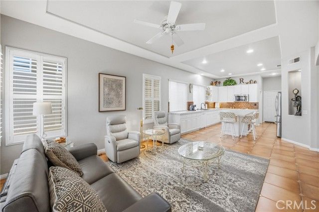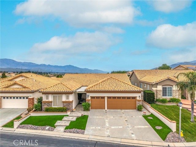 Welcome to 2027 Melbourne Circle, a beautifully maintained residence nestled in the prestigious, guard-gated 55+ Sun Lakes Country Club community. This exceptional Wisteria floor plan features 2,219 square feet of comfort, style, and thoughtfully designed living space. Step inside this 2 bedroom, 2.5 bath home and the spacious living room quickly becomes the focal point of the home with abundant natural light and views. The dining room creates an easy, open flow with plenty of room for memorable gatherings. Step inside the kitchen, where an oversized island, double ovens, and beautiful quartz countertops create both sytle and functionality. The kitchen opens to the family room, where a charming fireplace anchors a space destined to be your favorite spot for relaxing. The serene primary suite captures lovely backyard views with the majestic San Gorgonio Mountains beyond. Enjoy a full en-suite bath with double vanities and a walk-in closet enhanced by a built-in organization system. The guest bedroom and bath are conveniently situated side by side, with the bathroom featuring a newer walk-in shower designed for safety and comfort. The Wisteria also includes a versatile bonus room, ready to serve any purpose you envision. An attached three-car garage-a rare find in Sun Lakes Country Club-is designed for storage and includes a newer water heater. The impressive yard surrounding this delightful home boasts low-maintenance synthetic turf in the front and a backyard that offers stunning mountain vistas. The community benefits from access to premier amenities that include 2 golf courses, 3 swimming pools, tennis and pickleball courts, 3 clubhouses, fitness facilities, 2 restaurants, lounge, and so much more. This home offers a resort lifestyle in a serene setting, perfect for any active senior seeking a vibrant community to call home.
