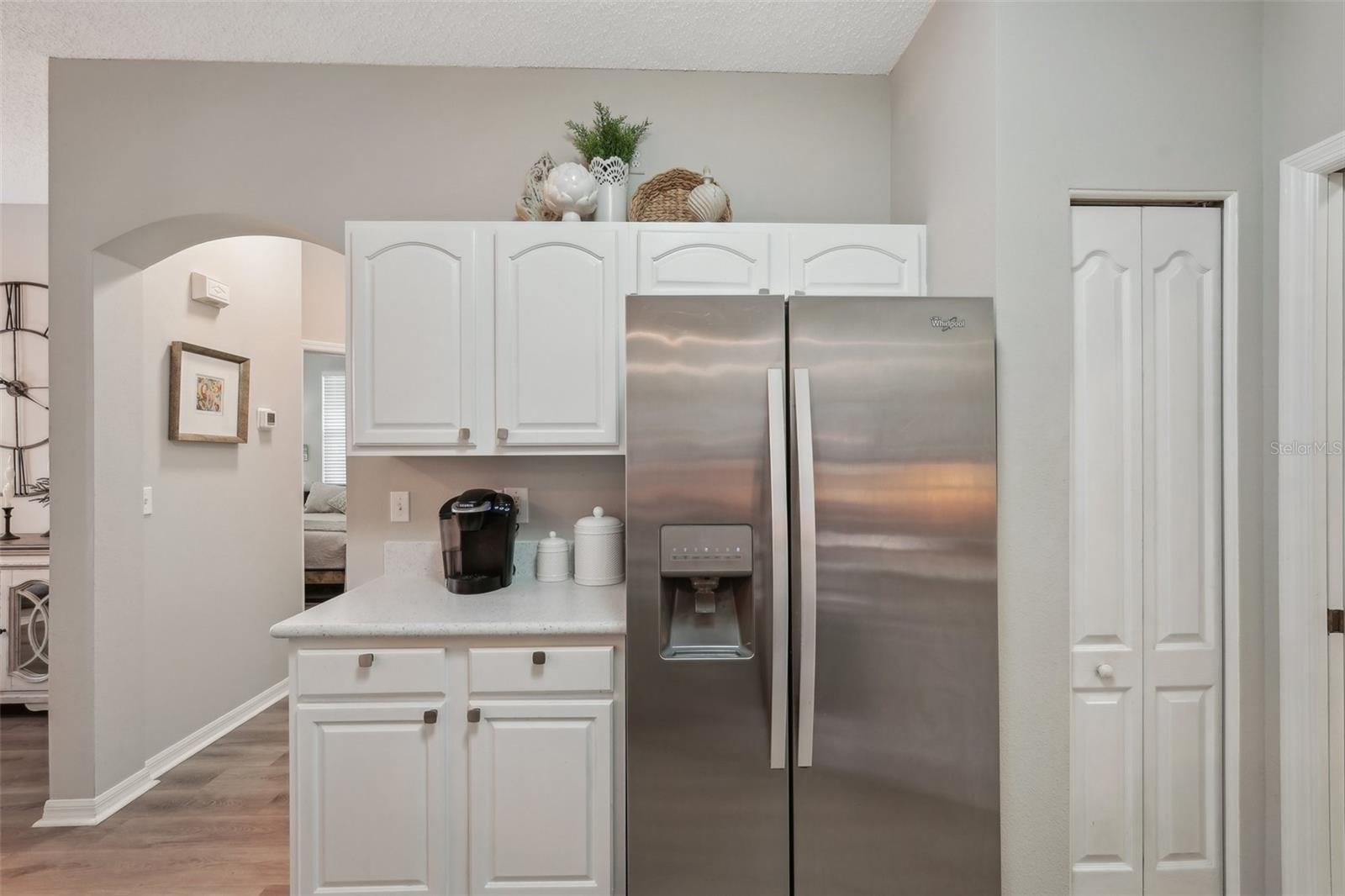 Welcome to this delightful 2-bedroom, 2-bathroom split floor plan condo in the sought-after Acadia II community. This corner unit offers a partial pond view and boasts an enclosed rear porch with double glass sliders for added tranquility. Inside, enjoy the spacious kitchen with a convenient bar, perfect for entertaining, and a seamless view of the dining and living areas. Plus 2022 appliances, making this kitchen both stylish and highly functional—a perfect space for cooking, entertaining, and everyday living. High ceilings, fresh light paint, and abundant natural light from large windows create a bright and airy atmosphere. The home features beautiful new laminate flooring throughout and a practical inside utility room. The 2-car garage adds extra convenience, and the split layout ensures privacy for both bedrooms. You’ll love the gated community of Kings Point, which has amazing facilities, pools, clubs and events just waiting for you to enjoy. Located between Sarasota and Tampa, this home is perfectly positioned for a convenient ride to airports, great shopping, dining, and professional entertainment. With easy access to award-winning, sandy beaches, you’ll experience the best of all worlds—without the stress of big city life. Leave the hustle behind and embrace a new chapter in Sun City Center, Florida, the state's top-ranked and most affordable 55+ retirement community. Whether you’re looking for a peaceful retreat or an inviting space for guests, this condo offers it all.