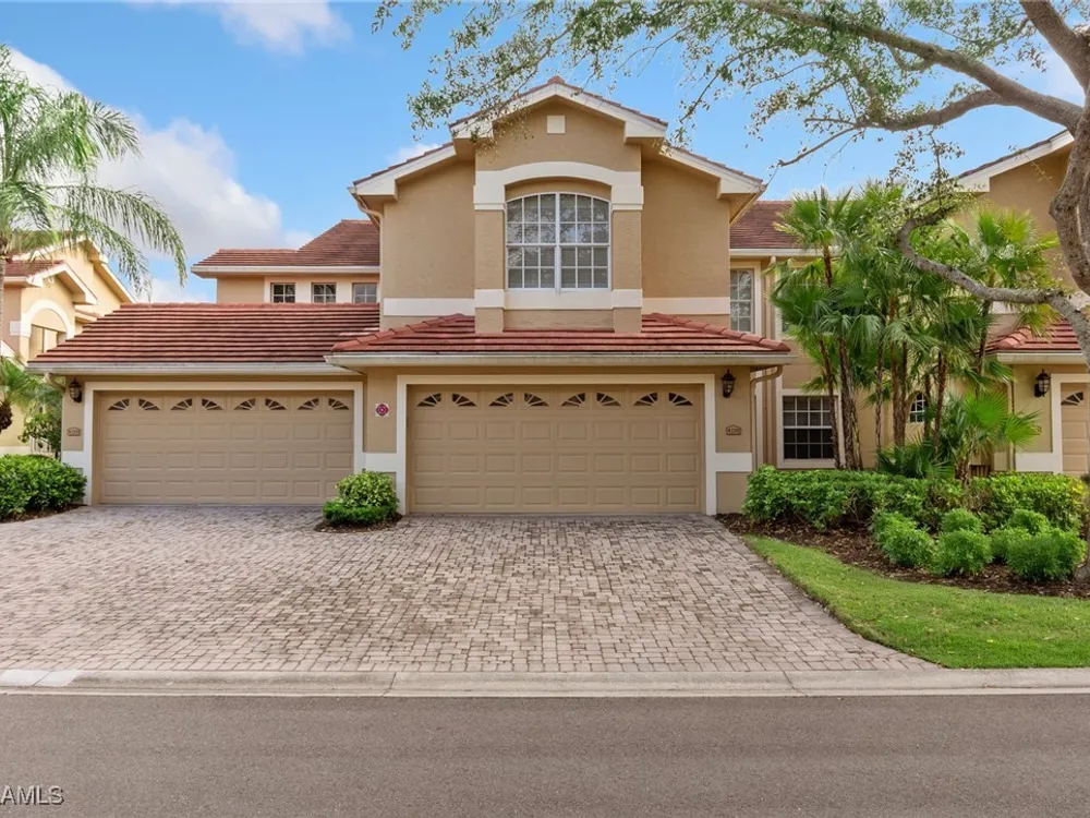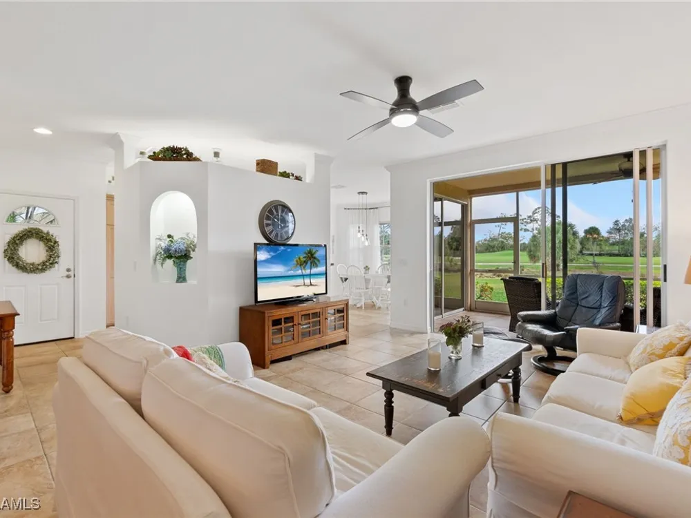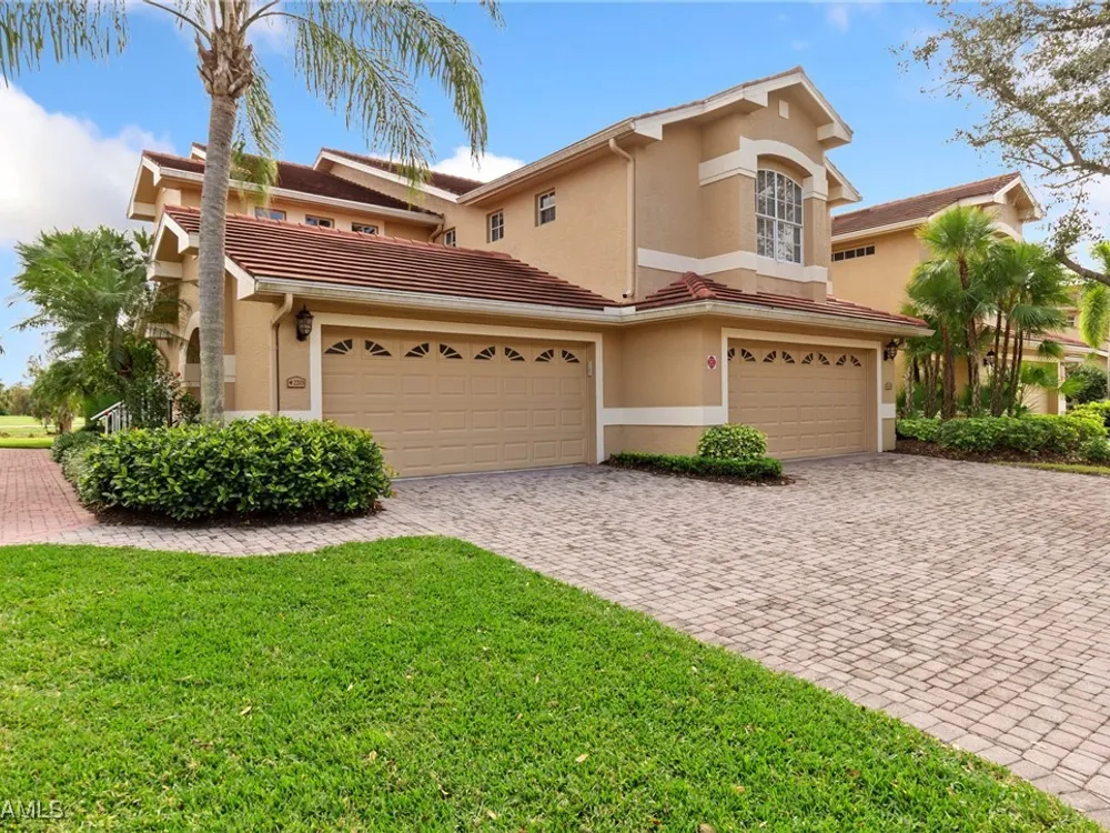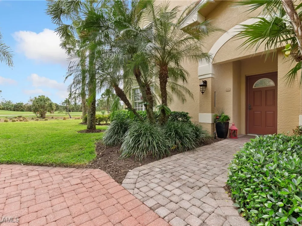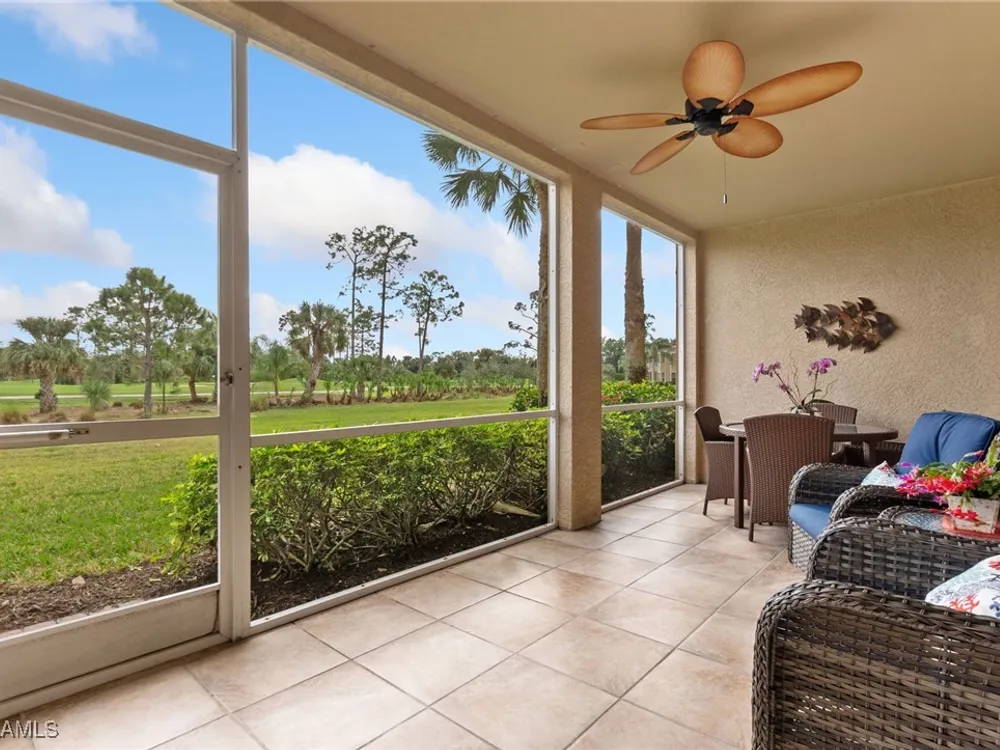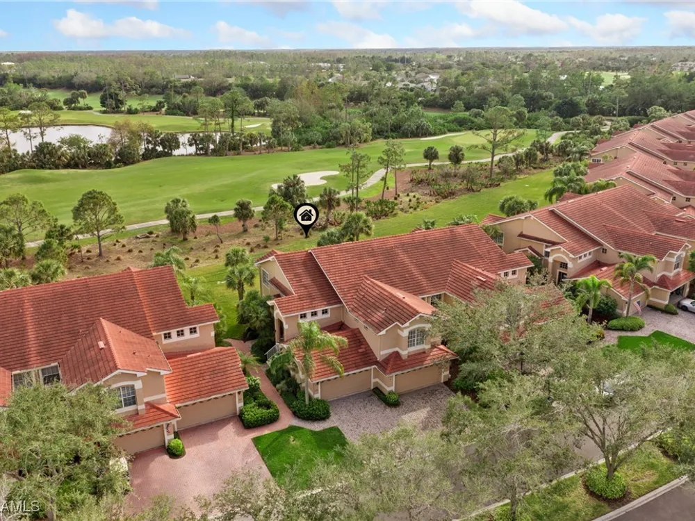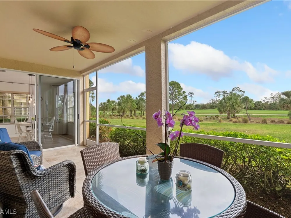 Immaculate 3 bedroom 2 bathroom 2-car attached garage condo located in the popular Grandezza Country Club. Surrounded by natural light, this home benefits from an easternly morning sun exposure with golf course views. The home also features a desirable floor plan with a large entertainment area, private primary suite and separate guest quarters with updated bathrooms. The attached 2 car garage has new epoxy flooring and paved driveway for additional vehicle parking. The screened lanai area offers great views of the golf course and spacious grassed private area. Walking distance from the condo community pool as well as Grandezza's main clubhouse with cabana, Olympic size pool, tennis, bocce, basketball court, fitness/wellness center and fine/casual dining makes this the perfect condo location. Grandezza's Darwin Sharpe III 18-hole Championship golf course currently has full golf memberships available. Conveniently located to I-75, SWFL International Airport and the SWFL beautiful beaches.