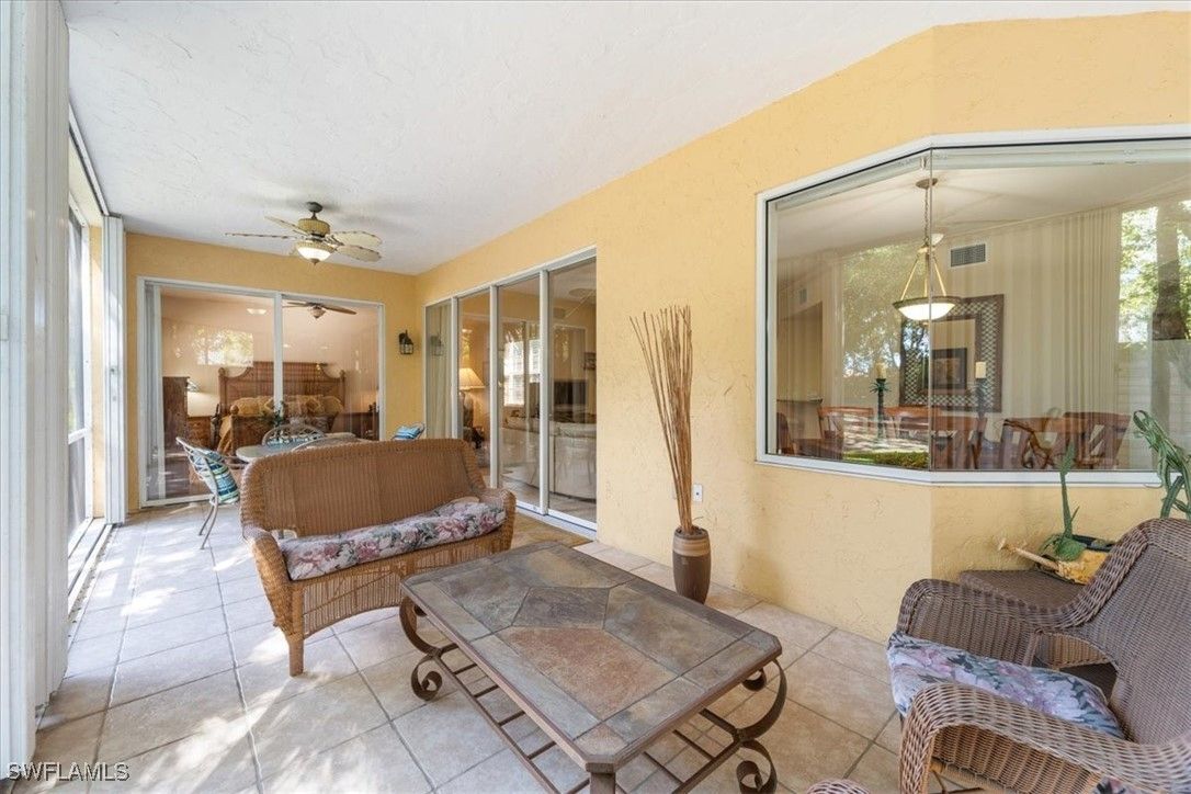 Welcome to the good life, where your morning coffee comes with golf course views and your afternoon swim is just steps from your front door. This delightful first-floor carriage home offers the rare combination of convenience and tranquility that savvy buyers dream about. As an end unit positioned directly across from the community pool, this three-bedroom, two-and-a-half-bathroom residence delivers privacy and natural light in equal measure. The thoughtfully designed layout presents a blank canvas ready for your personal touch, while the kitchen stands ready for culinary creativity with gleaming granite countertops and generous cabinet storage that would make any home chef smile. The true showpiece awaits on the wrap-around tiled lanai, where mitered glass windows blur the boundaries between indoor comfort and outdoor serenity. Three slider doors open to reveal Western exposure, bathing the space in golden afternoon light as you gaze upon manicured landscaping and the golf course beyond. It's the kind of spot where hours disappear without apology. The neighborhood puts everyday convenience within arm's reach. Grab groceries at the nearby Publix, indulge in retail therapy at Miromar Outlets, or expand your options at Coconut Point and Gulf Coast Town Center. Southwest Florida International Airport keeps your travel plans on track, while pristine beaches beckon a short drive away. An attached two-car garage provides practical shelter for vehicles and all those beach toys you'll inevitably collect. Discover why this exceptional residence might just be the Southwest Florida retreat you've been searching for!