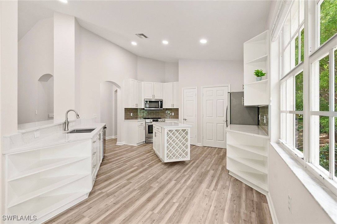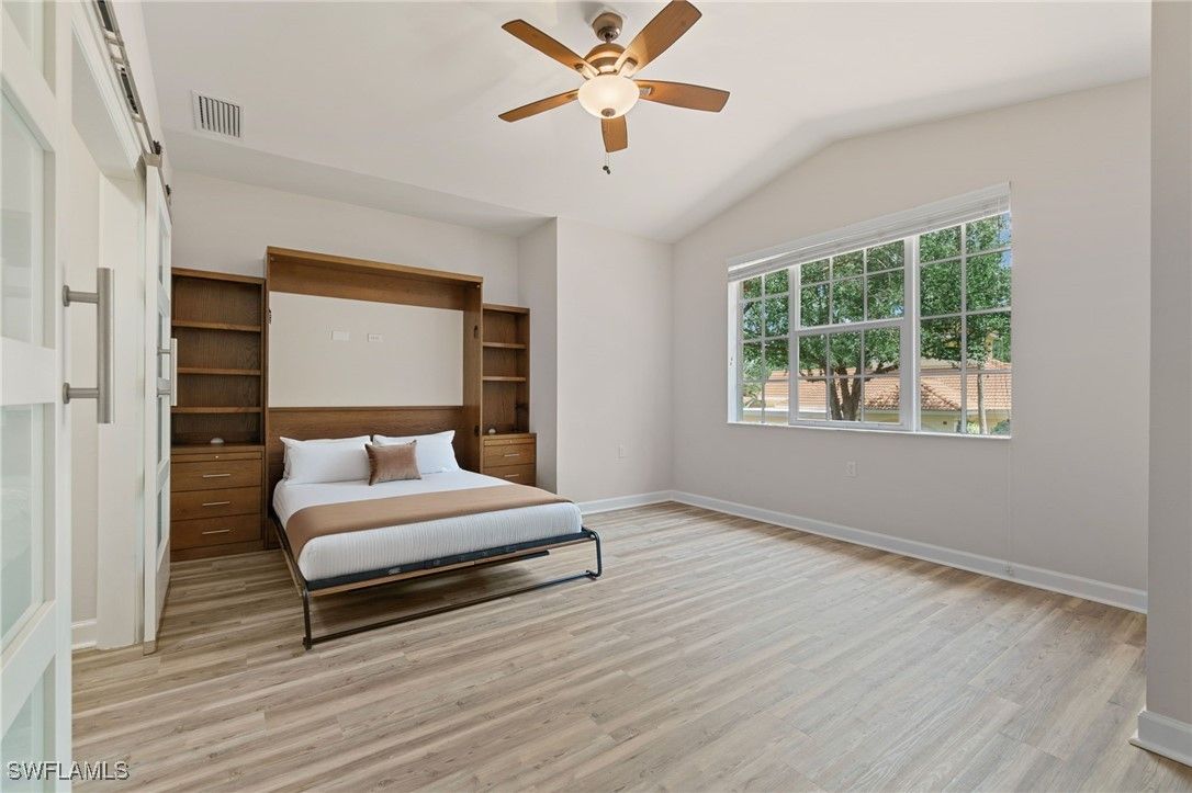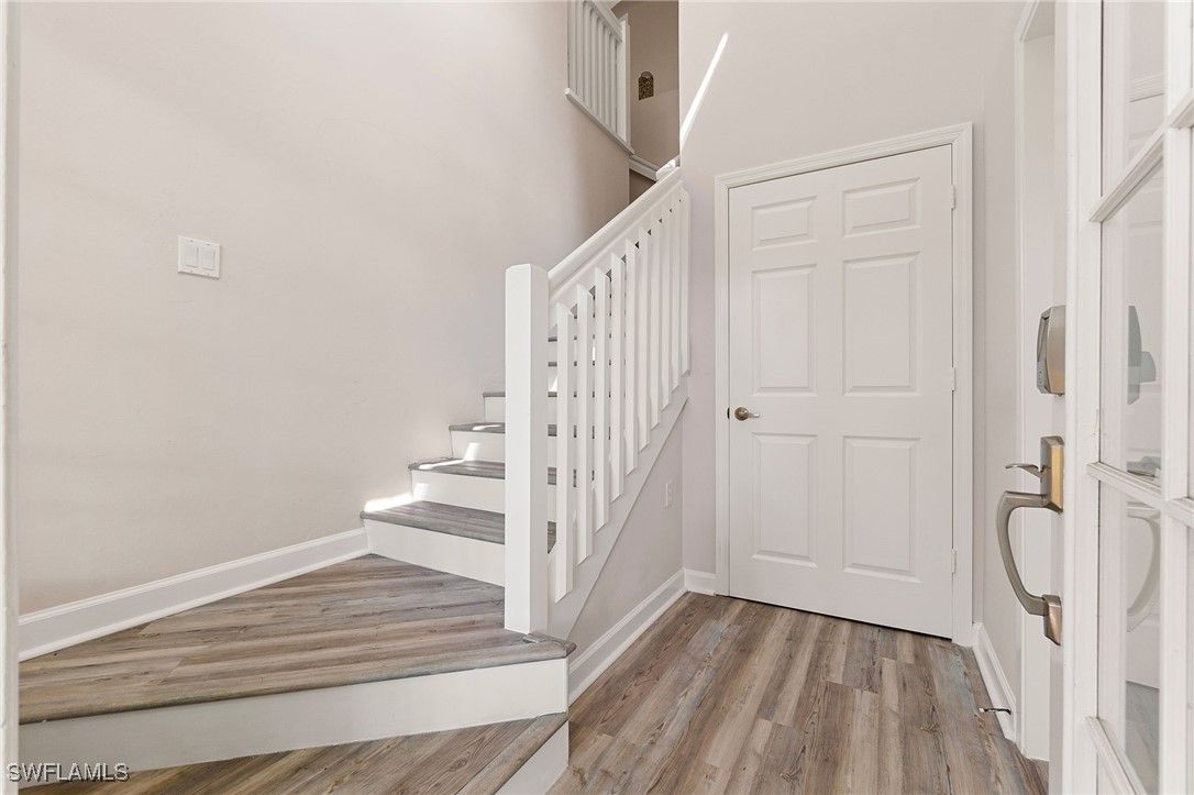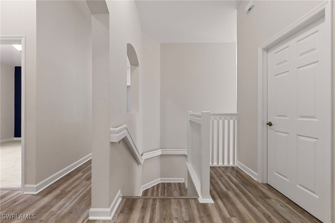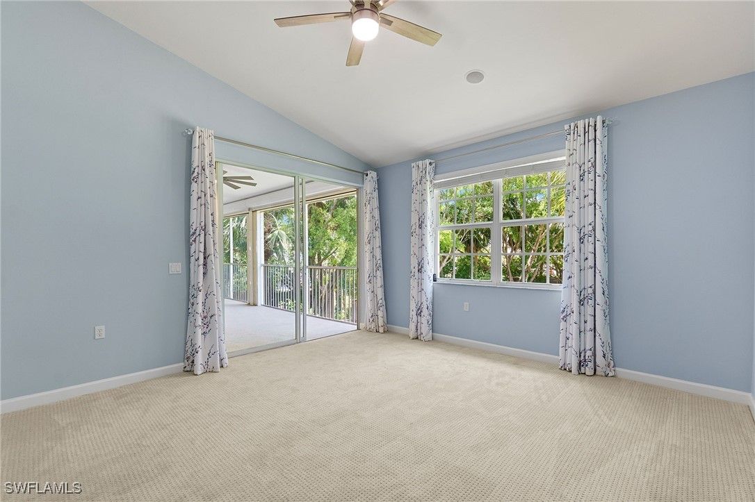 One or more photo(s) has been virtually staged, AI generated or rendered. Beautifully developed and spacious end-unit condo located in the popular Avalon community of Grandezza Country Club. This partially furnished 3 bedroom 2.5 bathroom condo features a light and bright open-concept living, updated kitchen, quartz countertops, luxury vinyl flooring, large attached 2 car garage, storm smart hurricane shutters and an oversized screened wraparound lanai that offers the perfect entertaining space with a tranquil setting that's ideal for year-round outdoor living. Steps from the private Avalon community pool/clubhouse and a short walk to the Grandezza Country Clubhouse. 18-hole Championship golf course, tennis courts, bocce, basketball wellness center and an active social community. Close to I-75, FGCU, SWFL International Airport, shopping and restaurants. Full golf membership available. The additional virtually stage photos are shown to highlight the features of this home.