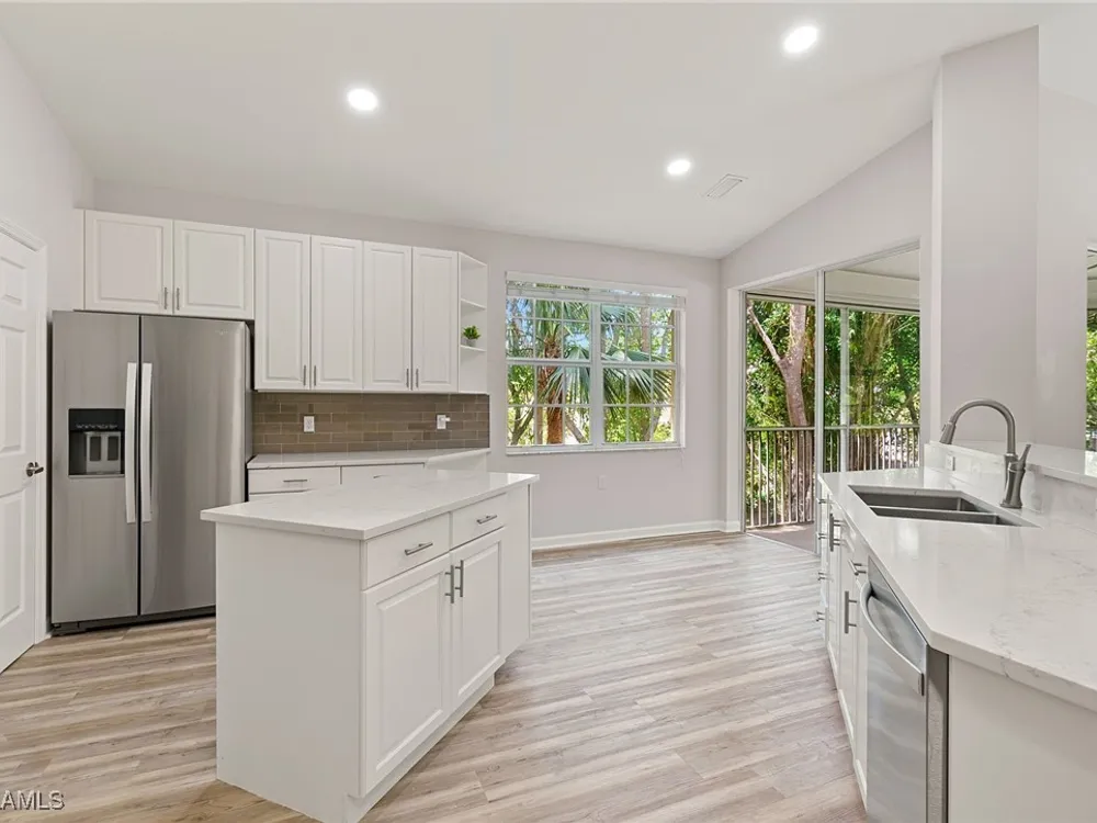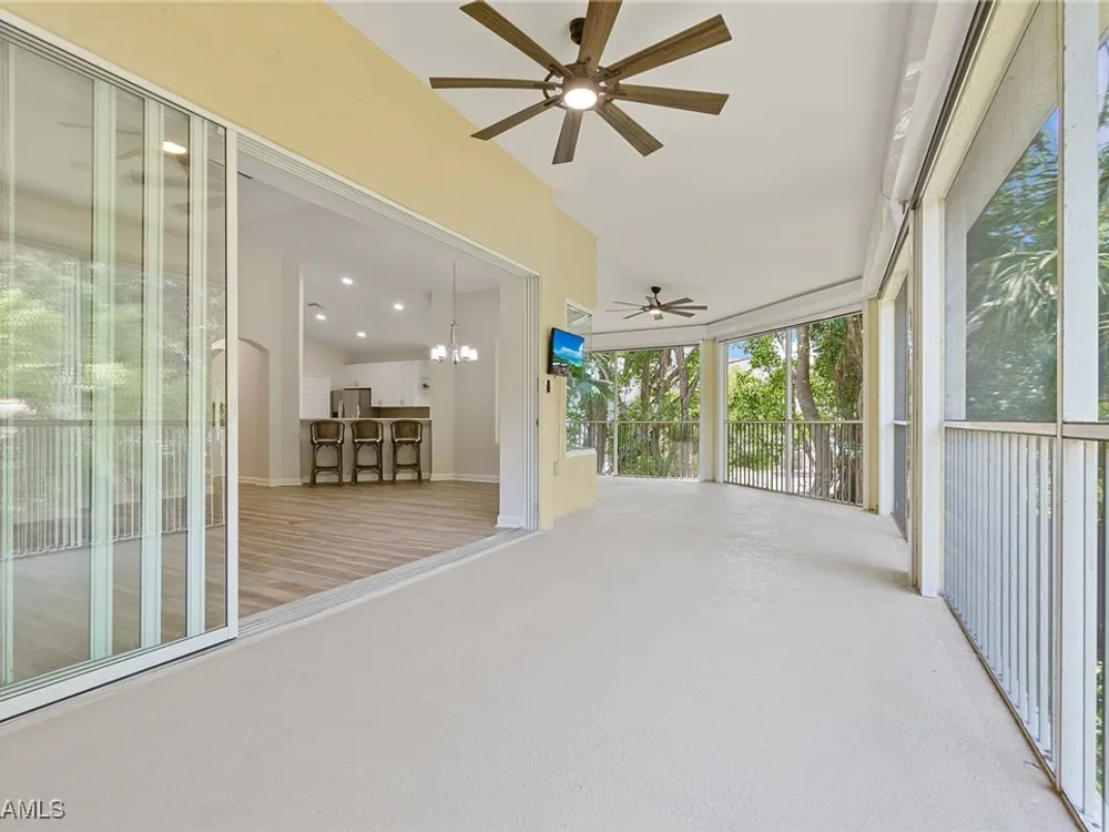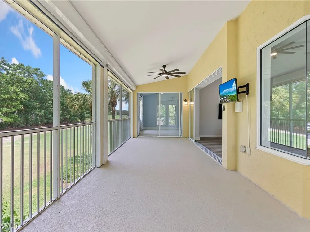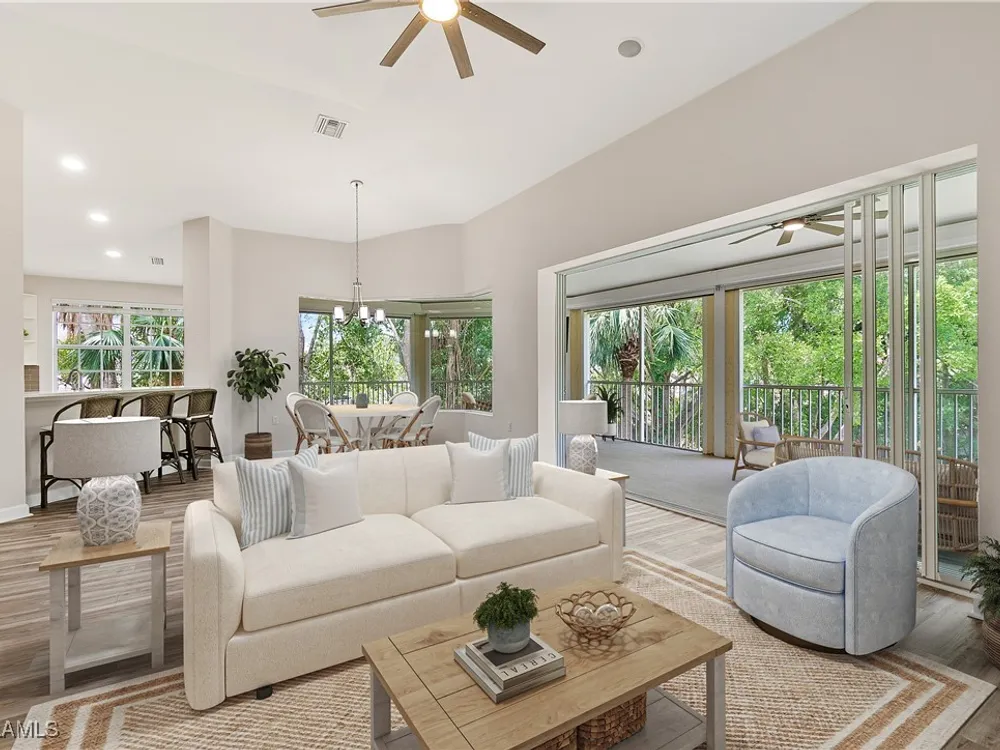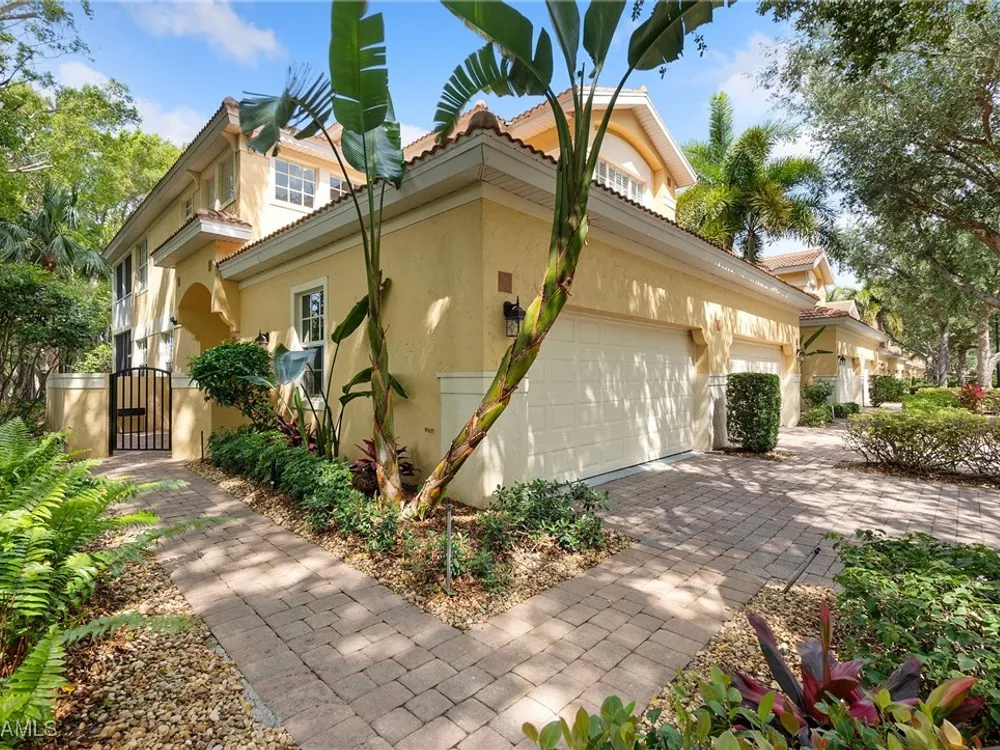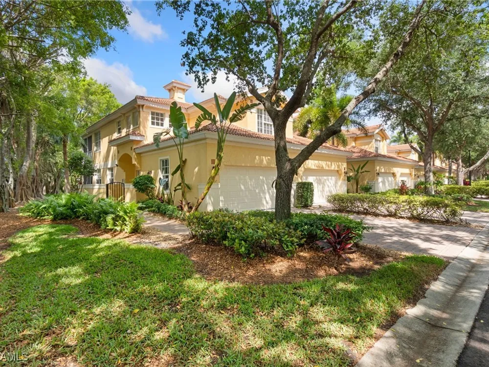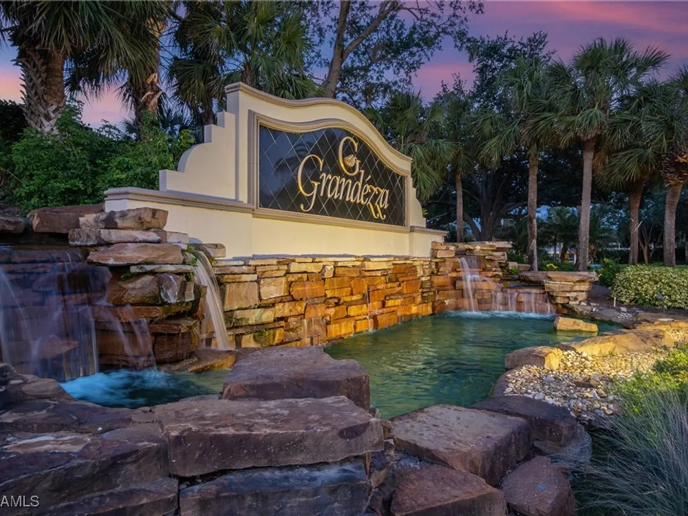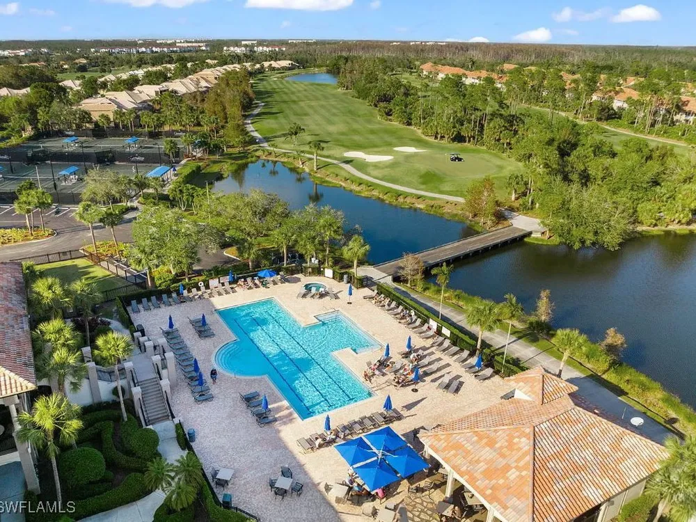 Beautifully developed and spacious end-unit condo located in the popular Avalon community of Grandezza Country Club. This partially furnished 3 bedroom 2.5 bathroom condo features a light and bright open-concept living, updated kitchen, quartz countertops, luxury vinyl flooring, large attached 2 car garage, storm smart hurricane shutters and an oversized screened wraparound lanai that offers the perfect entertaining space with a tranquil setting that's ideal for year-round outdoor living. Steps from the private Avalon community pool/clubhouse and a short walk to the Grandezza Country Clubhouse. 18-hole Championship golf course, tennis courts, bocce, basketball wellness center and an active social community. Close to I-75, FGCU, SWFL International Airport, shopping and restaurants. Full golf membership available. The additional virtually stage photos are shown to highlight the features of this home.