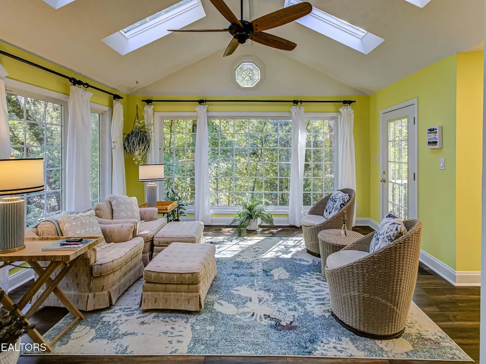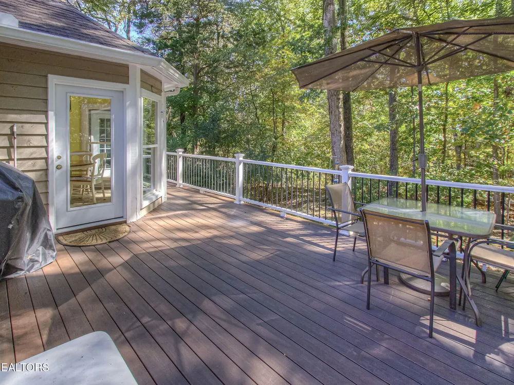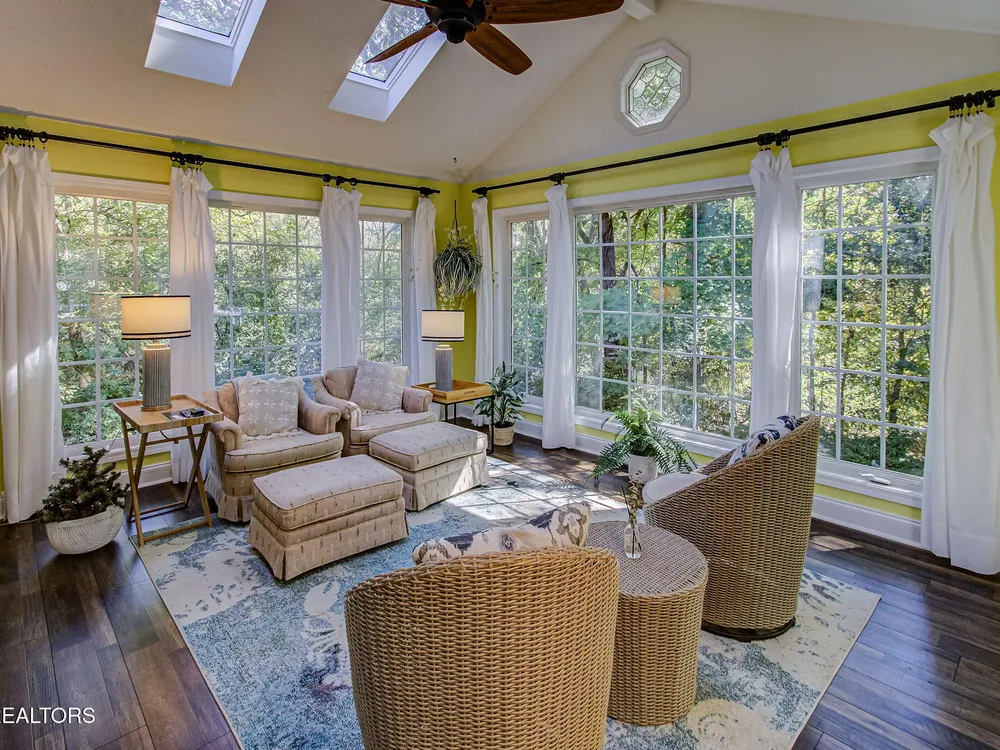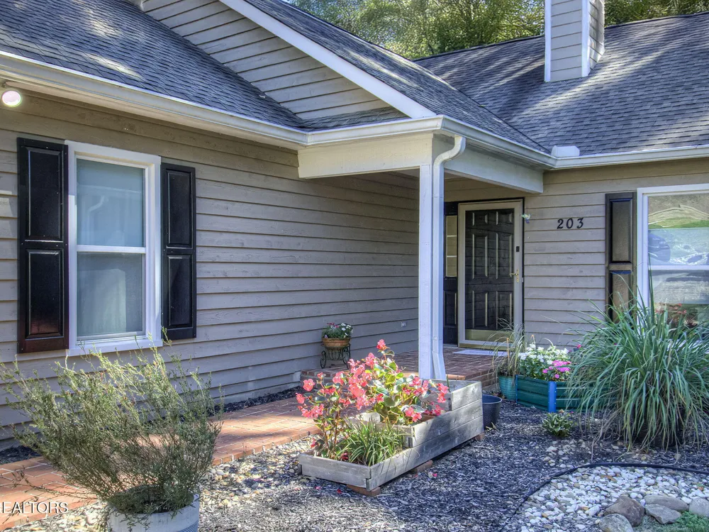 Welcome Home to 203 Kawga Lane in the beautiful Chota Hills neighborhood of Tellico Village. This gem of a home has been immaculately kept, updated & you will feel at home the moment you step inside to welcoming paint colors and adornments. Hang your coat on the modern foyer rack complete with a bench for convenience. You are greeted by gorgeous hardwood and luxury vinyl flooring throughout the home. The great room boasts vaulted ceilings and is perfect for gathering in front of the fireplace to watch your favorite shows on the 65- inch mounted TV with soundbar. The modern kitchen has stainless steel appliances with a large granite island complete with stunning lighting and tile backsplash. You will find a generous sized walk- in pantry with a barn door, a breakfast nook as well as a larger dining space with windows with pretty wooded views. You will want to retreat to the all- season- glassed in sunroom that overlooks the peaceful wooded lot. The spacious primary suite beckons serenity and has a walk-in closet, deep tub for soaking, and beautiful tiled shower. Two more bedrooms and bath round out the home. Entertaining or just enjoying nature is easy on the large back deck composed of durable TREX material. You can move in stress free with an encapsulated crawlspace, dehumidifier installed, transferable warranty of the HVAC, as well as new water heater with warranty, two car garage and thoughtful landscaping. The home is located in the heart of Tellico Village where you can enjoy all the amenities, golf courses, wellness center, pickleball, hiking trails, social events, clubs, restaurants and much more. Don't miss your opportunity to be part of a community that has something for everyone, there is a reason why so many want to be a part of Tellico and it can be yours today! Buyer will verify all square footage.