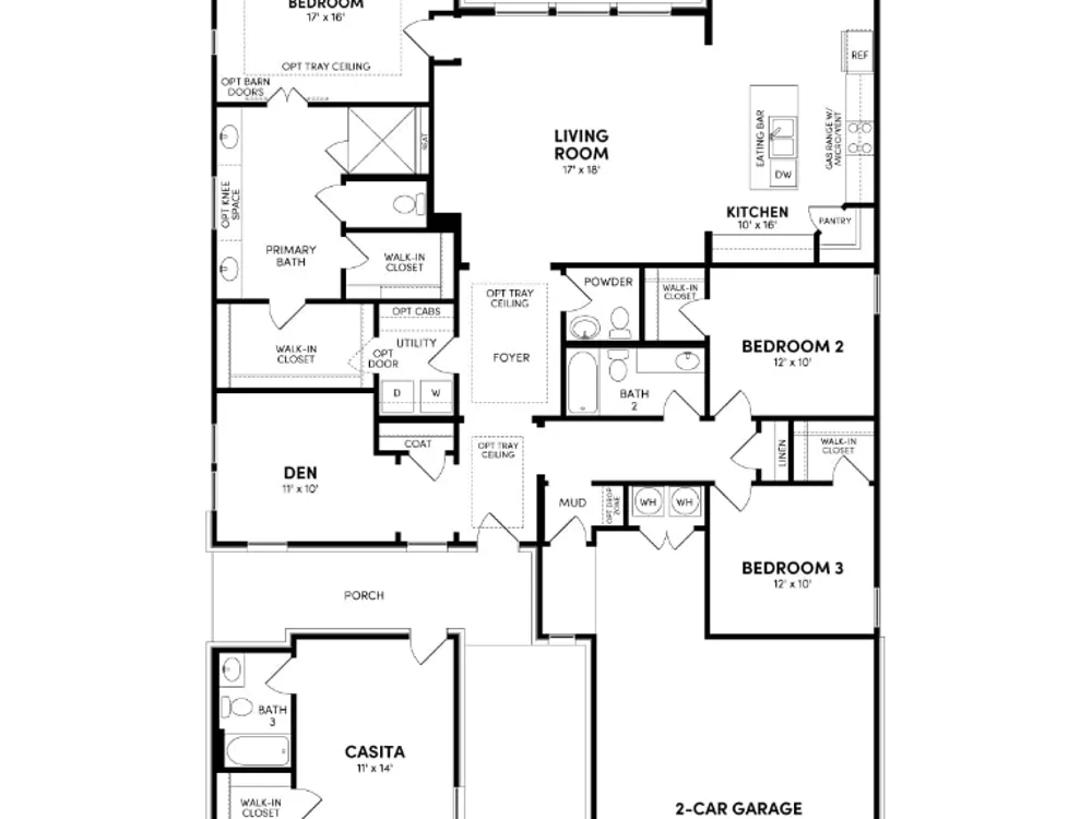 - Tray Ceiling(s), Ceiling Fan(s), Double Vanity, Kitchen Island, Main Level Primary, Open Floorplan, Pantry, Quartz Countertops, Smart Home, Walk-In Closet(s)