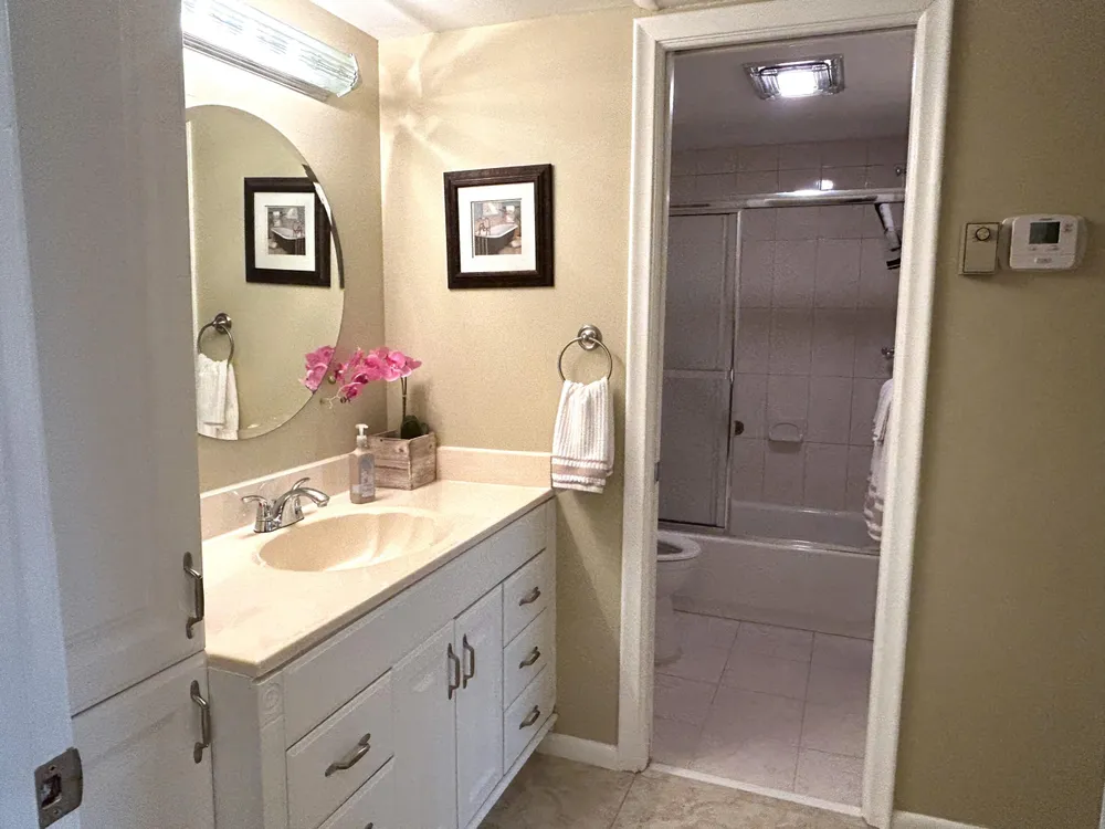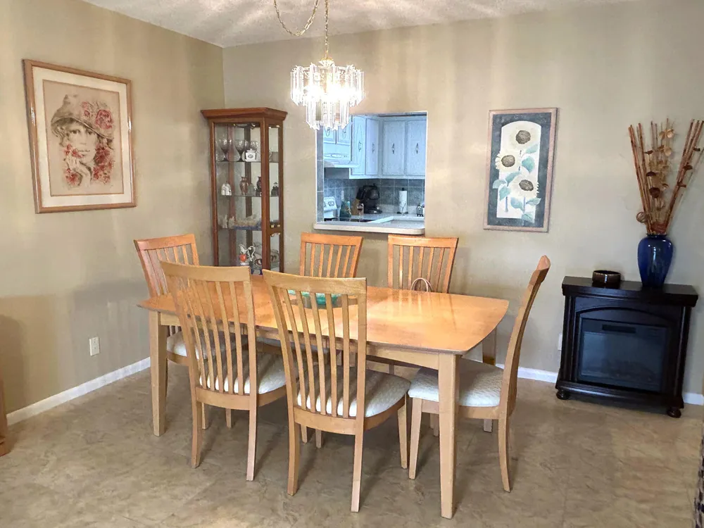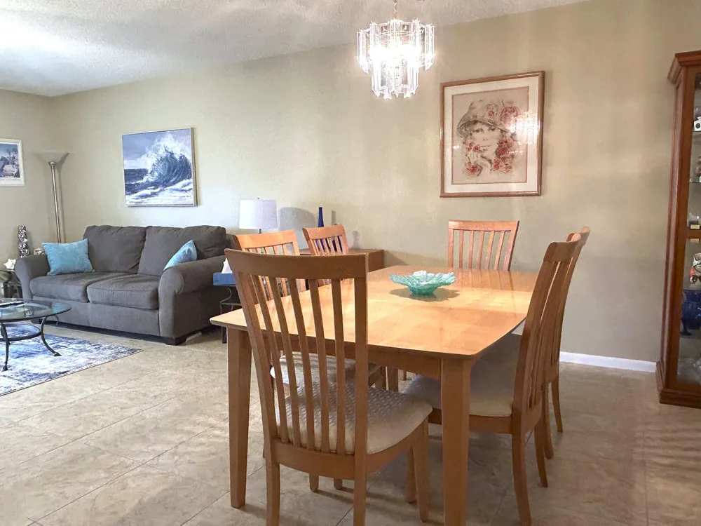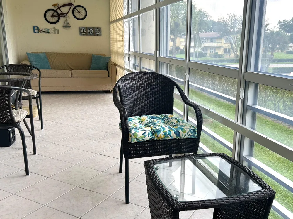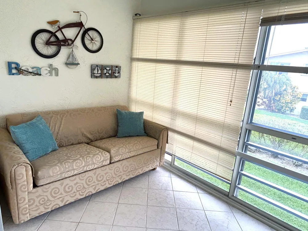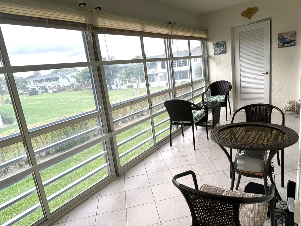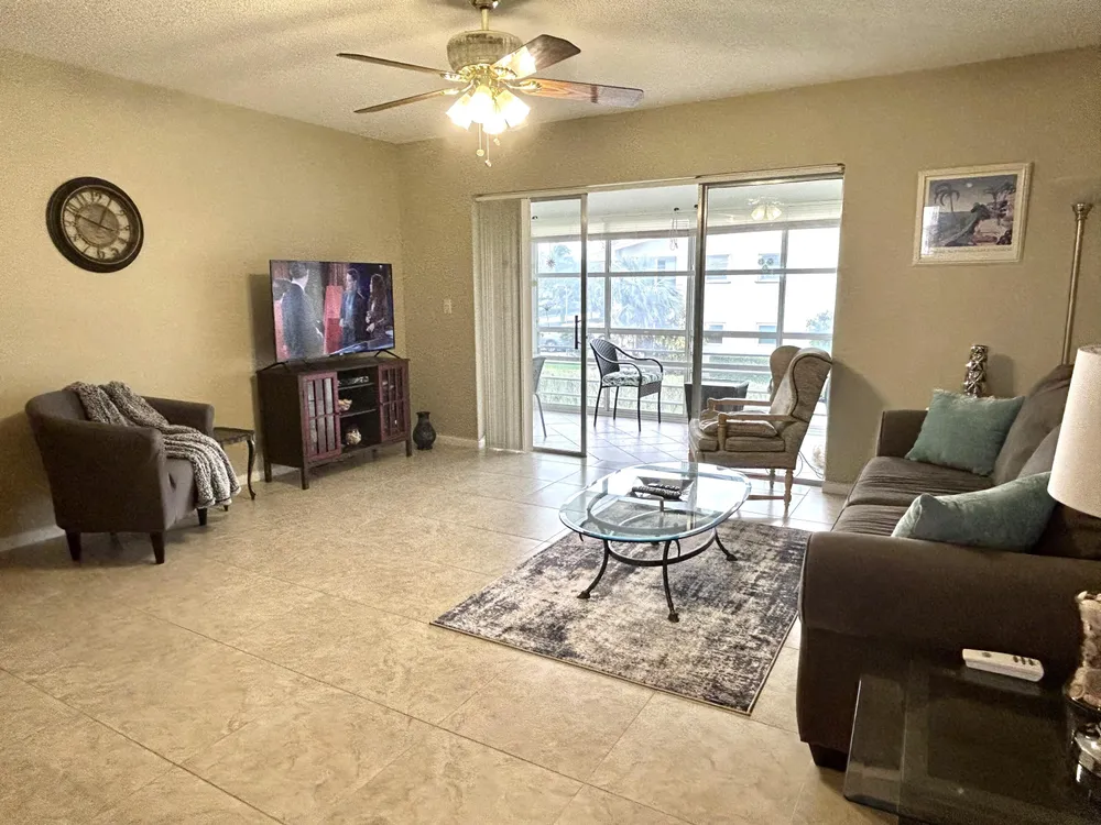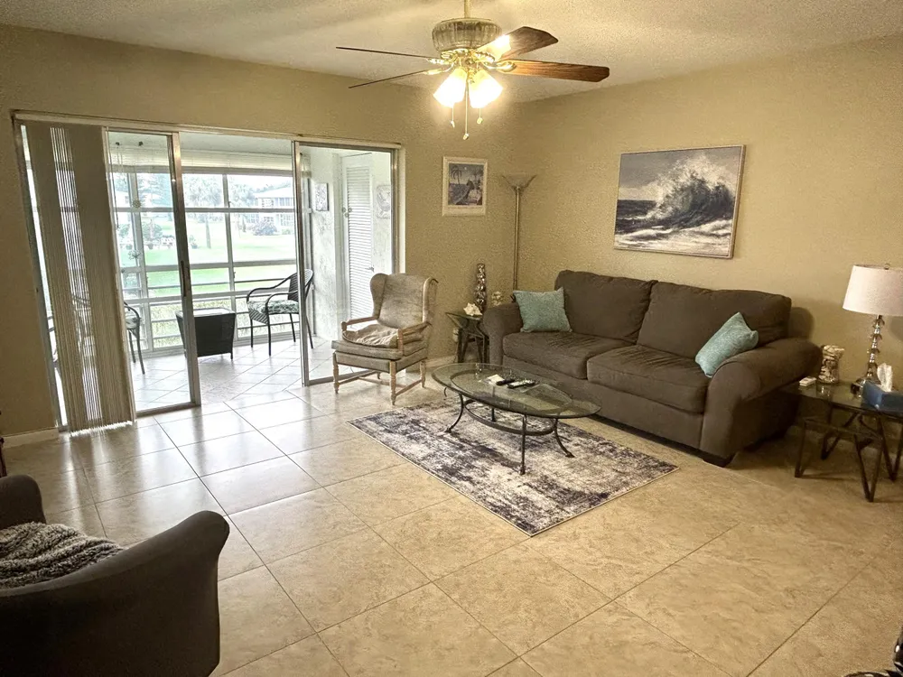 Beautiful and meticulously clean, large and spacious 1 bedroom, 1.5 bath condo in a vibrant active 55+ gated community. This immaculately maintained condo is fully furnished, and features a washer/dryer in unit, dishwasher, porcelain tile in the kitchen / living areas, spacious master suite with walk-in closet, and lots of storage space. The Florida room provides year-round comfort with plexiglass and tinted windows, creating an extended air-conditioned space. New roof, new water heater and central AC. Residents can indulge in resort-style living with access to 11 pools, including an indoor resistance pool, a fitness center, pickleball, tennis courts, bocce ball, billiards, hobby/wood shop, golf courses, clubhouse for social gatherings and entertainment, shows, dances, shuttle bus.