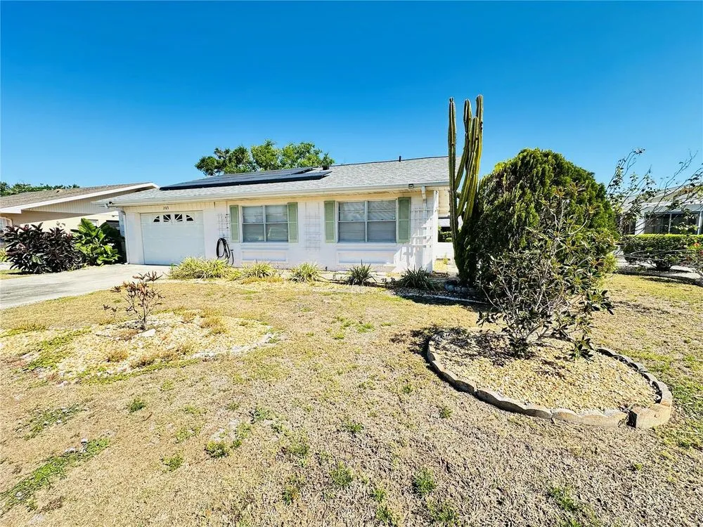 Great Price and Good Location for this 3 bedroom - 2 bathroom Single Family home with an Oversized 1-car garage and additional built-in storage. Laundry room is inside. Living room and dining area combo with nice working kitchen layout. A bonus bedroom Room has sliders opening to the backyard where a lanai could be added. Interior utility room as well as the additional bedroom is not counted in the 1,236 SF of this home. A must see opportunity to buy at a great price. Electrical Panel was replaced in 2018. Roof is about 2 years old. AC is about 2 years old. Fridge, washer, and dryer are all new. Solar panels are a couple of years old and they make the electric bill come out to roughly $25/mo. Solar Panels will be paid in full at the time of closing. Make this hidden gem your own. You will love Sun City Center living. Golf carts are the 2nd mode of transportation to clubhouses, indoor and outdoor pools, craft, hobby and meeting rooms, as well as local shopping, churches and medical appointments. Both public and private golf courses are available. Sun City Center is within a short driving distance to Sarasota, St. Petersburg and Tampa featuring professional sporting events, the arts, and America's Award Winning Beaches. The Magic of Orlando is only a 90 miles away. Live where others dream to vacation!
