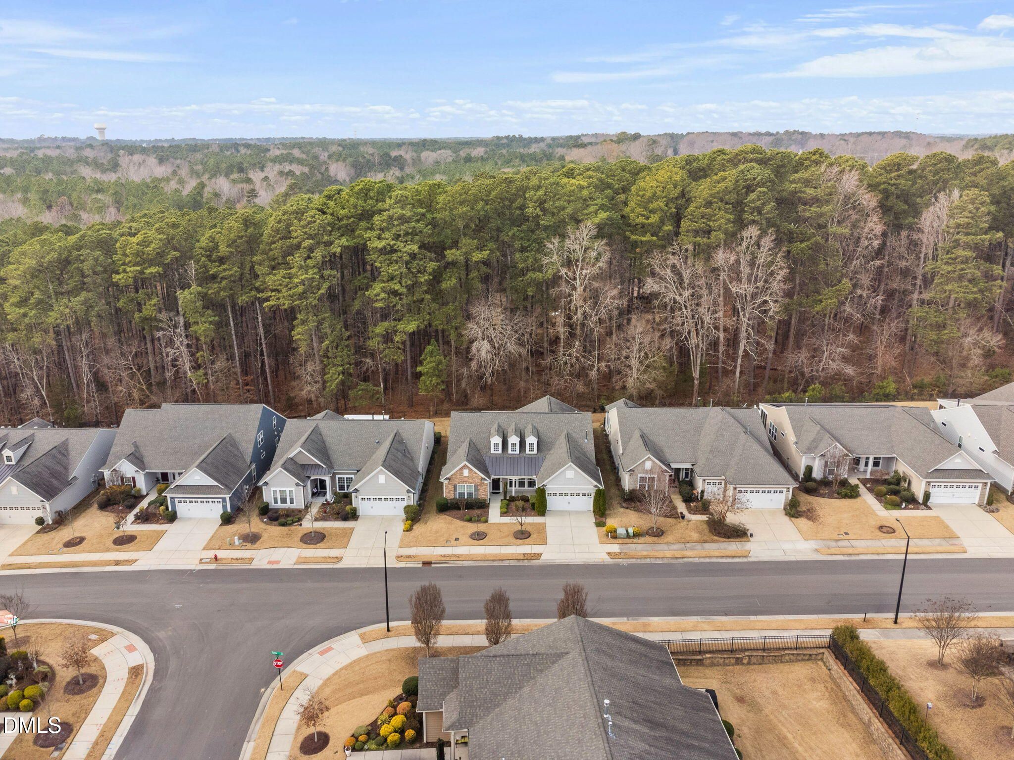 Welcome home to this beautifully designed two-story Tangerly Oak plan in the highly desirable 55+ Del Webb Carolina Arbors community—where comfort, space, and easy living come together. Beautifully situated on a serene lot that backs to woods. With 4 bedrooms and 4 full baths, this thoughtfully designed home lives primarily on the main level, featuring three bedrooms on the first floor, including a spacious primary suite, ideal for everyday living. The heart of the home is the gourmet kitchen, complete with a gas cooktop, wall ovens, a large center island, walk-in pantry, and sunny breakfast area—perfect for casual mornings or entertaining friends and family. The kitchen opens seamlessly to the inviting family room with a fireplace, as well as the formal dining room, creating a warm and connected living space. A light-filled sunroom extends the living area and leads to the covered porch and extended patio, where you can relax and enjoy peaceful wooded views year-round. Upstairs, guests will appreciate a private retreat featuring a bedroom, full bath, bonus room, and walk-in storage, offering excellent flexibility for hobbies, visitors, or additional living space. Additional highlights include an extended garage, abundant storage throughout, and a prime location within the community. Enjoy low-maintenance living and resort-style amenities, including a clubhouse, indoor/outdoor pool, fitness center, pickleball and so many clubs and activities. Close to Brier Creek shopping, restaurants and RDU.