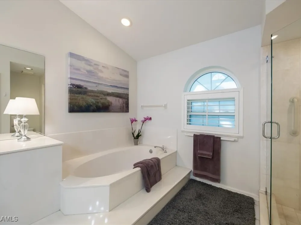 - Bathtub, Dual Sinks, Entrance Foyer, Eat-in Kitchen, Kitchen Island, Separate Shower, Vaulted Ceiling(s)