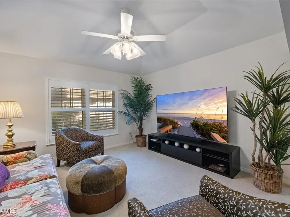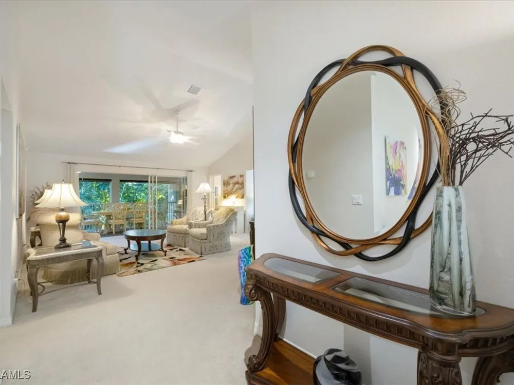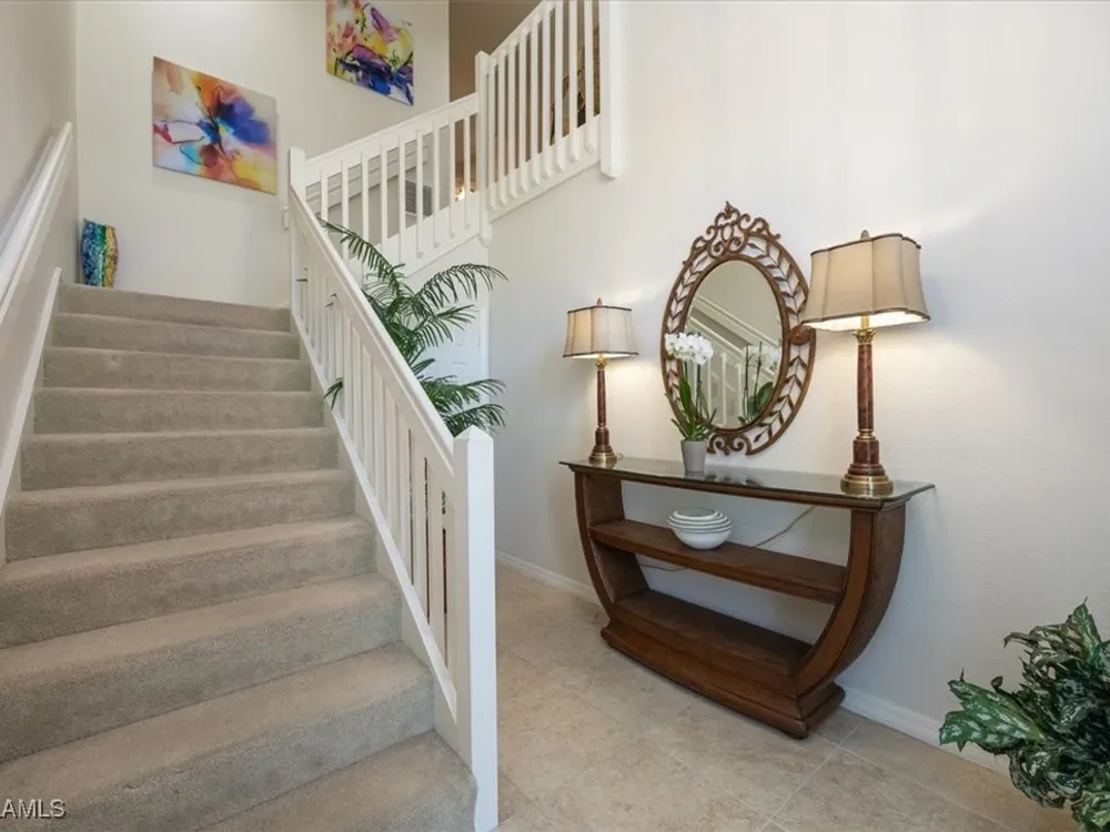 Elegant Coach Home in Tra Vigne at The Vineyards – Naples Luxury Living Encounter refined Naples living in this beautifully maintained 2-bedroom, 2.5-bath coach home with den in the highly sought after, gated golf community of Tra Vigne at The Vineyards. Perfectly situated in one of Naples, Florida’s premier luxury neighborhoods, this spacious residence lives like a single-family home, offering a grand stairway entry, open floor plan, soaring vaulted ceilings, abundant natural light, and timeless finishes. The modern kitchen boasts white cabinetry, solid-surface countertops, and a Halo Water Treatment System, ideal for both casual meals and entertaining. Plantation shutters throughout add to the home’s sophisticated style. A tiled, screened-in lanai provides private peaceful tropical views, perfect for enjoying your morning coffee or evening wine. The owner’s suite is a private retreat featuring a spa like bathroom with a soaking tub, walk-in shower, dual vanities, and a generous walk-in closet with natural light. A guest bedroom and den offer flexible space for visitors or a home office. Additional highlights include a one-car garage, ample guest parking, a driveway that can accommodate two additional vehicles and ample storage. This home also features a brand-new RHEEM air conditioning system installed in August 2025, complete with a 10-year transferable warranty for long-term comfort and peace of mind. Built with impact windows, the property offers both safety and energy efficiency. Tra Vigne residents enjoy beautifully landscaped streets, 4 resort-style pools, and vibrant social events. Optional Vineyards Country Club membership unlocks access to two championship golf courses, tennis and pickleball courts, a state-of-the-art fitness center, full-service spa, and exceptional dining experiences. Located just minutes from Naples’ world-class beaches, Fifth Avenue South shopping, and fine dining, Tra Vigne offers the perfect blend of luxury, convenience, and an active Florida lifestyle.