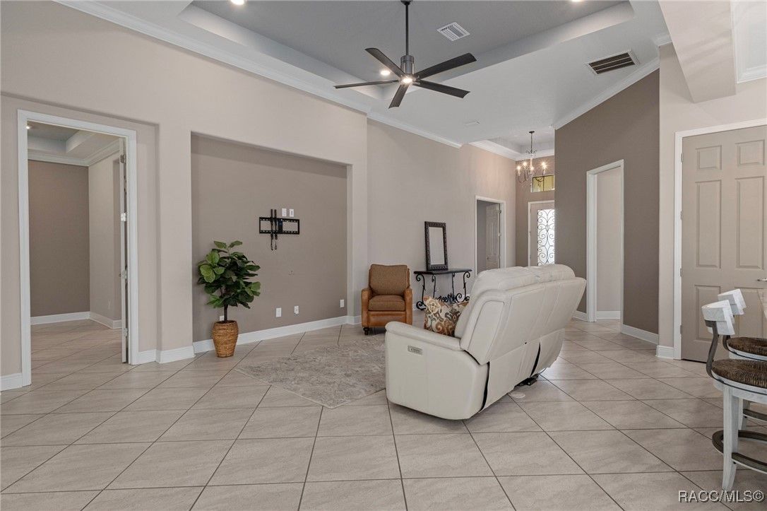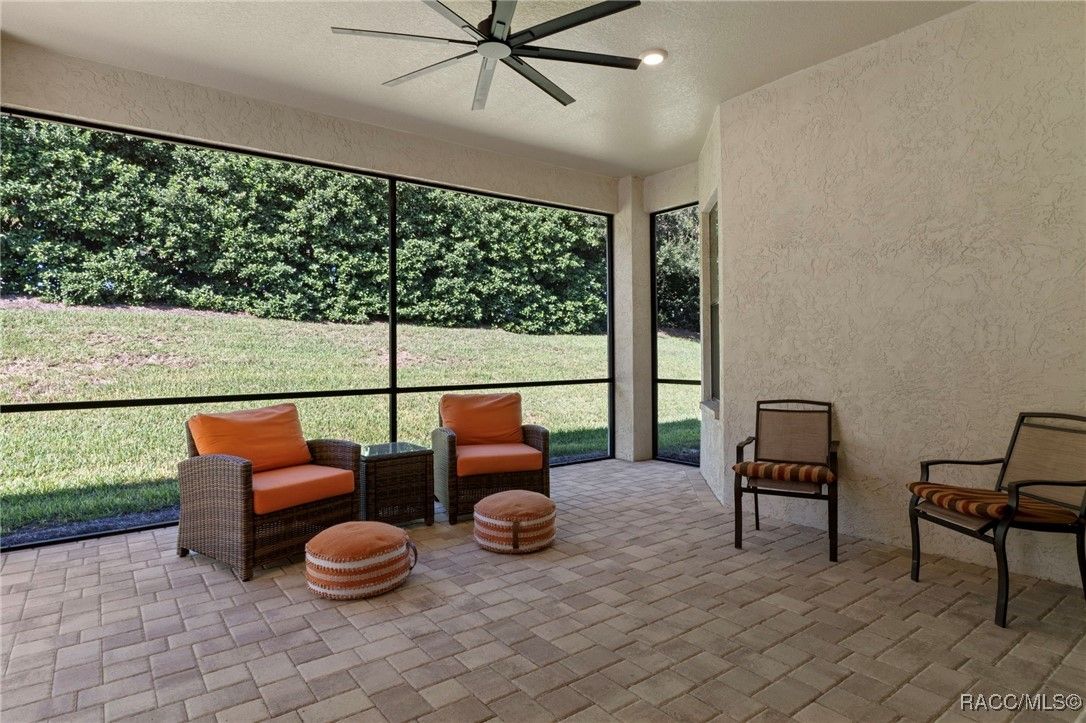 Put this one on your list BEFORE buying a new home! 2030 N BUSH HILL LOOP in NASH CROSSING (a 55+ deeded community which is completely built out)! Here is your opportunity to own a discovery villa that has all the extras you can put into a new build without the additional costs. You can find this beautifully maintained home in the five-star gated community of The Villages of Citrus Hills. Built in 2020 the owners spared no expense throughout this well- appointed and meticulously maintained home. This home boasts two spacious bedrooms and a dedicated office that can be turned into a 3rd bedroom. Because this home is FULLY MAINTAINED outside, you will have time for relaxation, entertaining and anything you can dream of for that perfect day in Florida. This home is fully repainted every 7 years included in the maintenance fee! Every room offers professionally designed finishes.Extras include: 2163 square feet (over 200 extra feet) St James Model, Crown moulding throughout, Radiant Roof Barrier(extra insulation),Glass tub/shower enclosure in 2nd bathroom. It also has a linen closet. 20 " tile flooring on the diagonal throughout home, Owners Suite has additional square foot added, recesses lighting and custom fans as well as his and hers closets. The 2nd bedroom also has recessed lighting. The study has additional square footage added and can easily be set up with a closet to make a 3rd bedroom. The dining room also has additional square footage added. There are over $25,000 in window coverings(Plantation shuttewrs and Hunter Douglas accordian blinds on slider)as well as Designer light fixtures throughout. Three accent colors were used throughout for continuity. No expense was spared even on the entry and lanai with pavers on both.The two car garage has dawn to dusk lights and the lawn care,watering, mowing, yard trimming and blowing are done weekly. Tray ceilings are found in the entry, main room and Owners Suite. The kitchen and both bathrooms boast Quartz countertops with a large island in kitchen that has 2 pop up electrical outlets. Each drawer also has 100 % opening cabinets drawers with soft closing feature. Drawers for pots and pans under the cooktop. Two spacious bedrooms and a dedicated office that can be flexed into a 3rd bedroom. This home is great for relaxation, entertaining and pure enjoyment. .. LUXURY LIVING+LOVELY LOCATION=LIVING THE LIFE! Don't sign on that line for a new home before viewing this one!