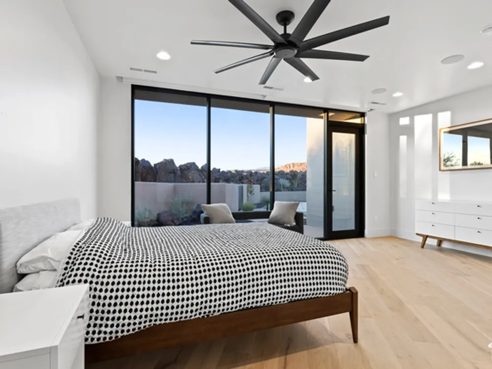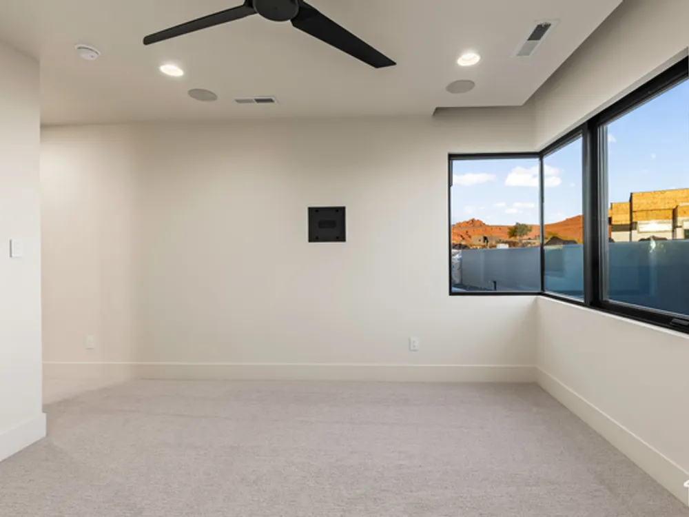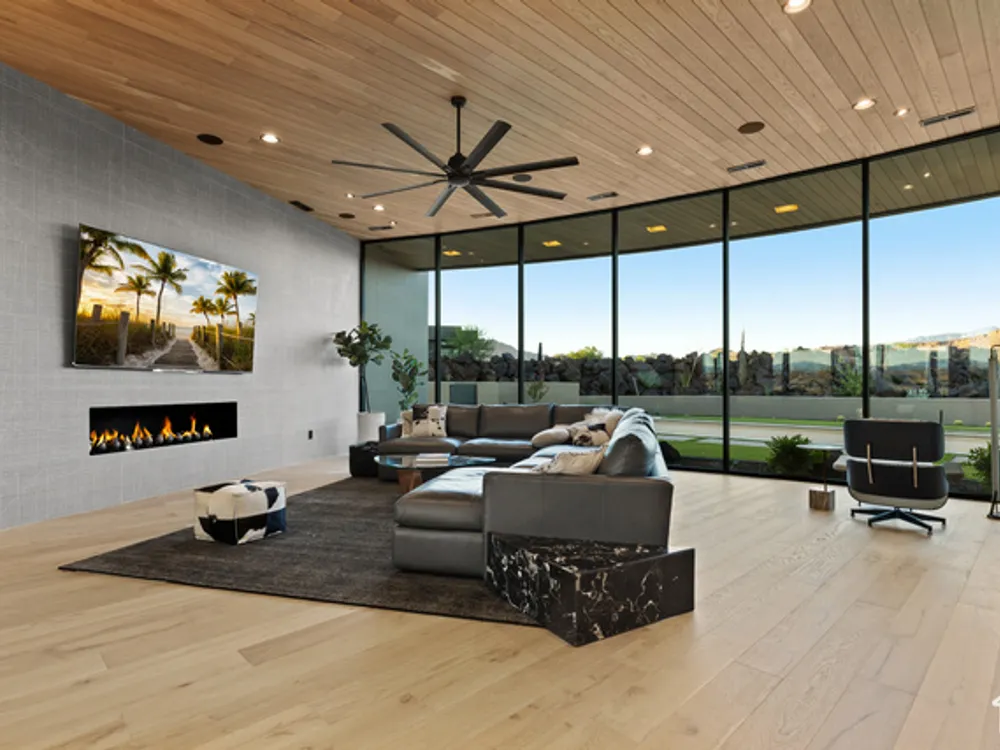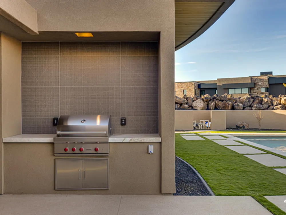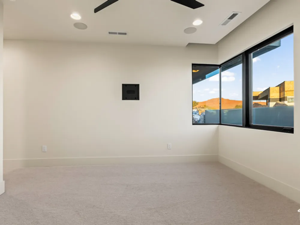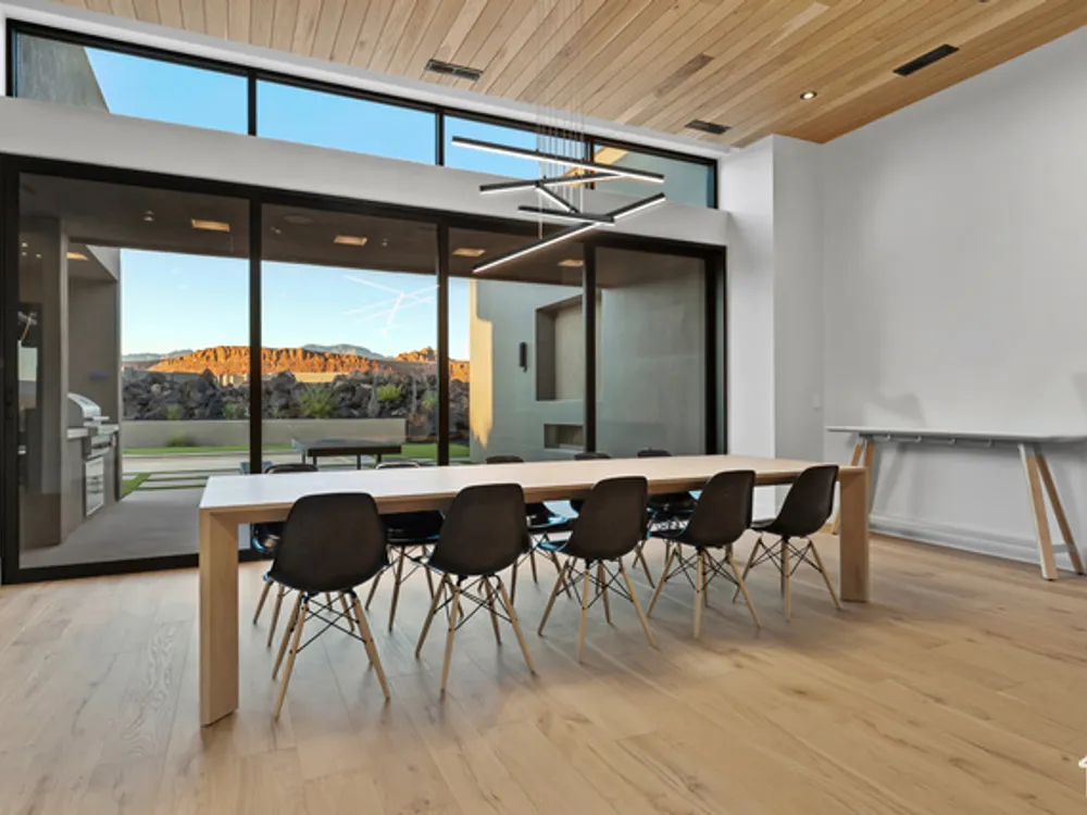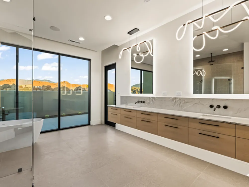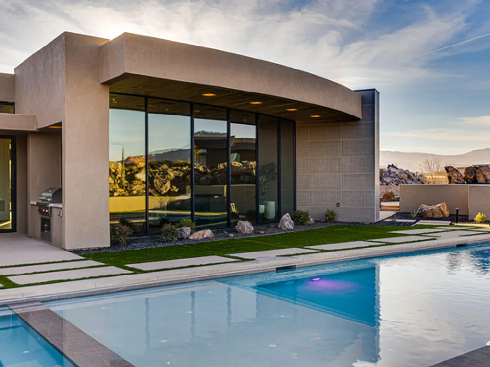Perfectly situated among basalt rocks at the base of Snow Canyon inside Entrada Golf & Country Club, this brand-new custom home captures stunning red rock and mountain views. The great room features a striking fireplace wall, expansive windows, and views of a private backyard with heated pool, spa, outdoor fireplace, built-in BBQ kitchen & TV hookups. The chef's kitchen offers Riverwoods Mill cabinets, Wolf/Subzero appliances, waterfall island, butler's pantry, and hardwood floors. The primary suite includes a luxury bath, gym, spacious closet with W&D and private patio access. Additional features: office, casita, ensuite bedrooms, 4-car garage w/ EV charger, Crestron Home automation, motorized shades, solid wood doors and so much more! All information is deemed reliable but not guaranteed, buyer to verify all.