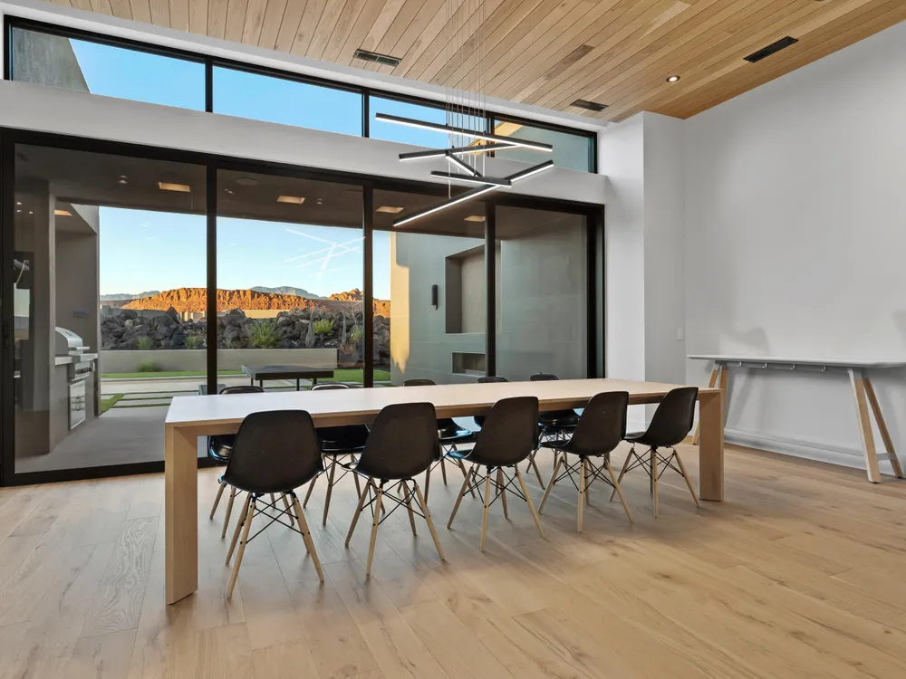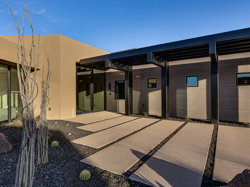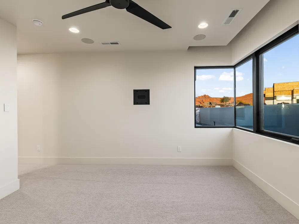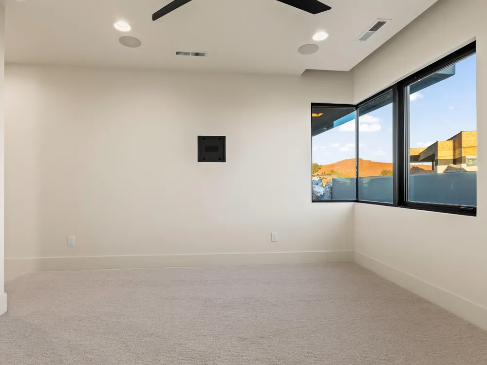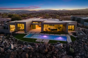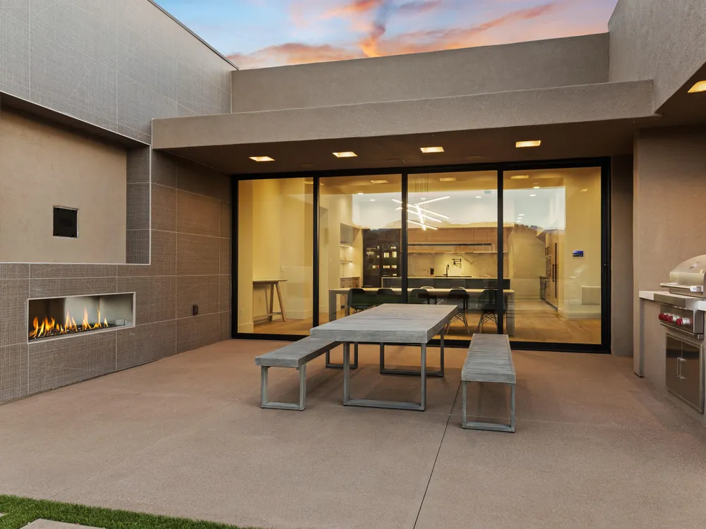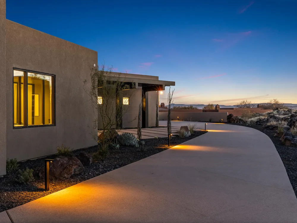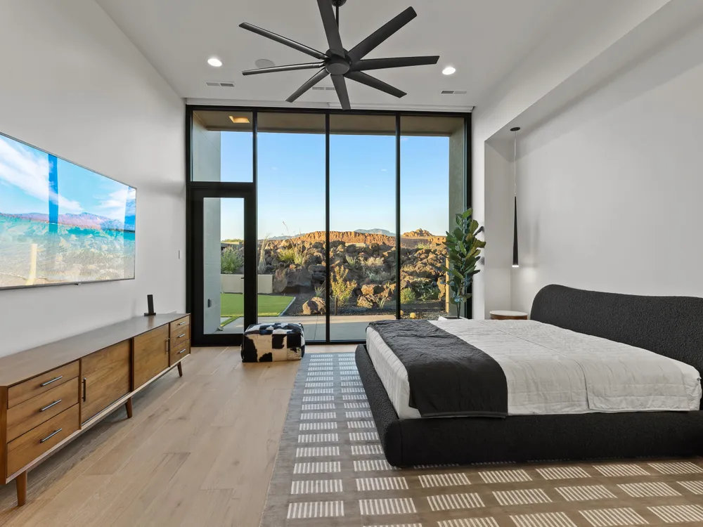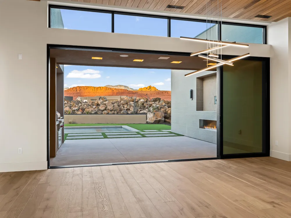 Perfectly situated among basalt rocks at the base of Snow Canyon inside Entrada Golf & Country Club, this brand-new custom home captures stunning red rock and mountain views. The great room features a striking fireplace wall, expansive windows, and views of a private backyard with heated pool, spa, outdoor fireplace, built-in BBQ kitchen & TV hookups. The chef's kitchen offers Riverwoods Mill cabinets, Wolf/Subzero appliances, waterfall island, butler's pantry, and hardwood floors. The primary suite includes a luxury bath, gym, spacious closet with W&D and private patio access. Additional features: office, casita, ensuite bedrooms, 4-car garage w/ EV charger, Crestron Home automation, motorized shades, solid wood doors and so much more! Buyer to verify all information.