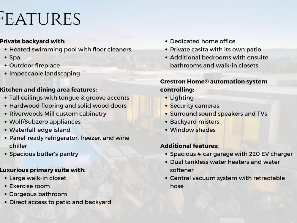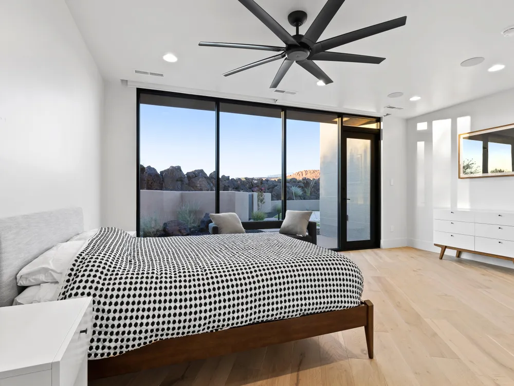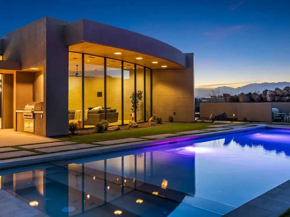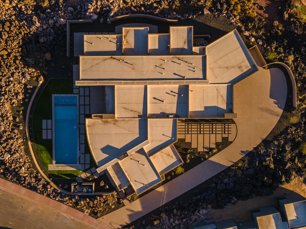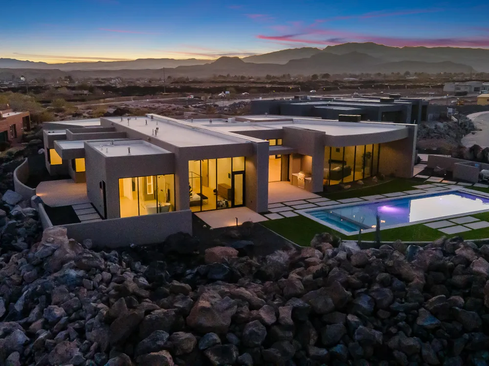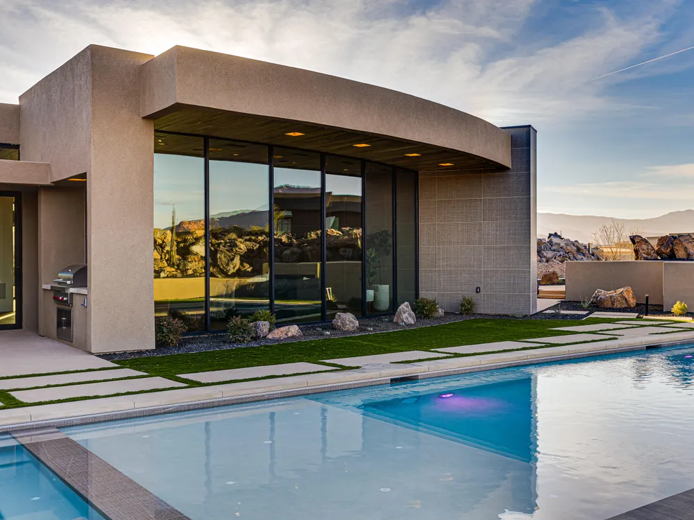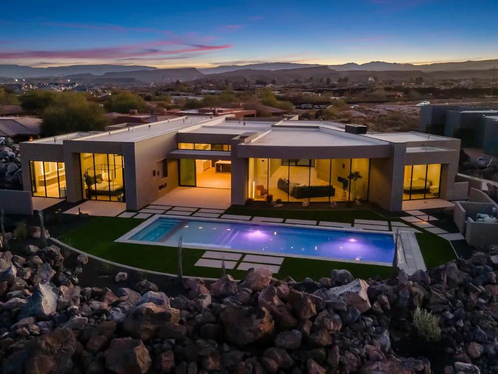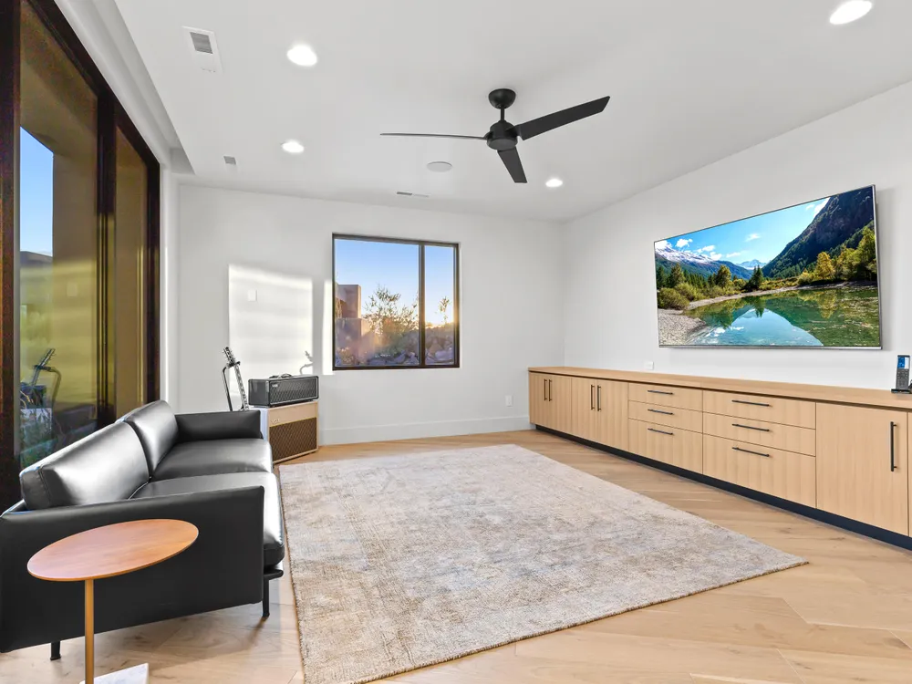 Perfectly situated among basalt rocks at the base of Snow Canyon inside Entrada Golf & Country Club, this brand-new custom home captures stunning red rock and mountain views. The great room features a striking fireplace wall, expansive windows, and views of a private backyard with heated pool, spa, outdoor fireplace, built-in BBQ kitchen & TV hookups. The chef's kitchen offers Riverwoods Mill cabinets, Wolf/Subzero appliances, waterfall island, butler's pantry, and hardwood floors. The primary suite includes a luxury bath, gym, spacious closet with W&D and private patio access. Additional features: office, casita, ensuite bedrooms, 4-car garage w/ EV charger, Crestron Home automation, motorized shades, solid wood doors and so much more! Buyer to verify all information.