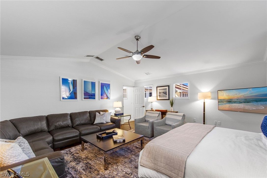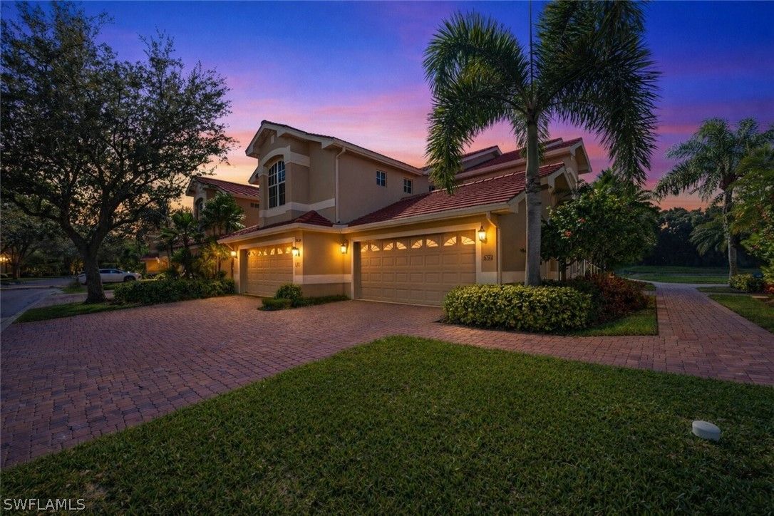 Designer finishes, curated décor, and extensive updates throughout make this beautifully appointed end-unit condo a true standout offering in Grandezza, unlike any other in the community. Impeccably maintained and move-in ready, all set against a backdrop of peaceful wide lake views. Soaring volume ceilings and abundant natural light enhance the spacious, open layout, while the great room flows seamlessly to the screened lanai, where these serene water, tree line, and golf course views create a calming setting for everyday living and unforgettable sunsets. Roll-down electric storm shutters on the lanai provide added peace of mind and convenience. The kitchen features beautiful granite countertops, light oak cabinetry, stainless steel appliances, and a pantry for additional storage, flowing effortlessly into the main living and dining areas to create an ideal space for entertaining. Offering over 2,000 sf. of living with 3 bedrooms, including a spacious oversized bonus room ideal as a guest suite, home office, media room, or hobby space, offering flexibility to fit a variety of lifestyles. The spacious primary suite offers a relaxing retreat with ample walk-in closet space and an ensuite bath featuring dual vanities and an oversized step-in shower. The LVT flooring in both bedrooms, back family room, and dining room is new (2024). The wool custom carpeting on the stairs, living room, and family room is brand new (2025) from Abbey Carpeting. The living room and family room carpets are included in the price, as they were custom cut and bound specifically for those rooms. A two-car attached garage adds exceptional storage and practicality, a feature not often found in condo living. A negotiable furniture package further enhances the appeal, creating a seamless, move-in-ready opportunity for immediate enjoyment. Located within the desirable Oakwood neighborhood, this residence enjoys a prime setting close to Grandezza’s main clubhouse and just a short distance to the Oakwood community pool. Grandezza is known for its beautifully maintained grounds and vibrant, amenity-rich lifestyle, featuring optional golf and social memberships, a resort-style pool with full-service cabana, multiple dining venues, and convenient food-to-go delivery service. Residents also enjoy tennis, fitness, and an active social calendar centered around the clubhouse. Ideally positioned in the heart of Estero between Naples and Fort Myers, this location offers convenient access to RSW Airport, Hertz Arena, Gulf Coast Town Center, Coconut Point, and the area’s renowned white-sand Gulf beaches. Owner will consider renting as well.