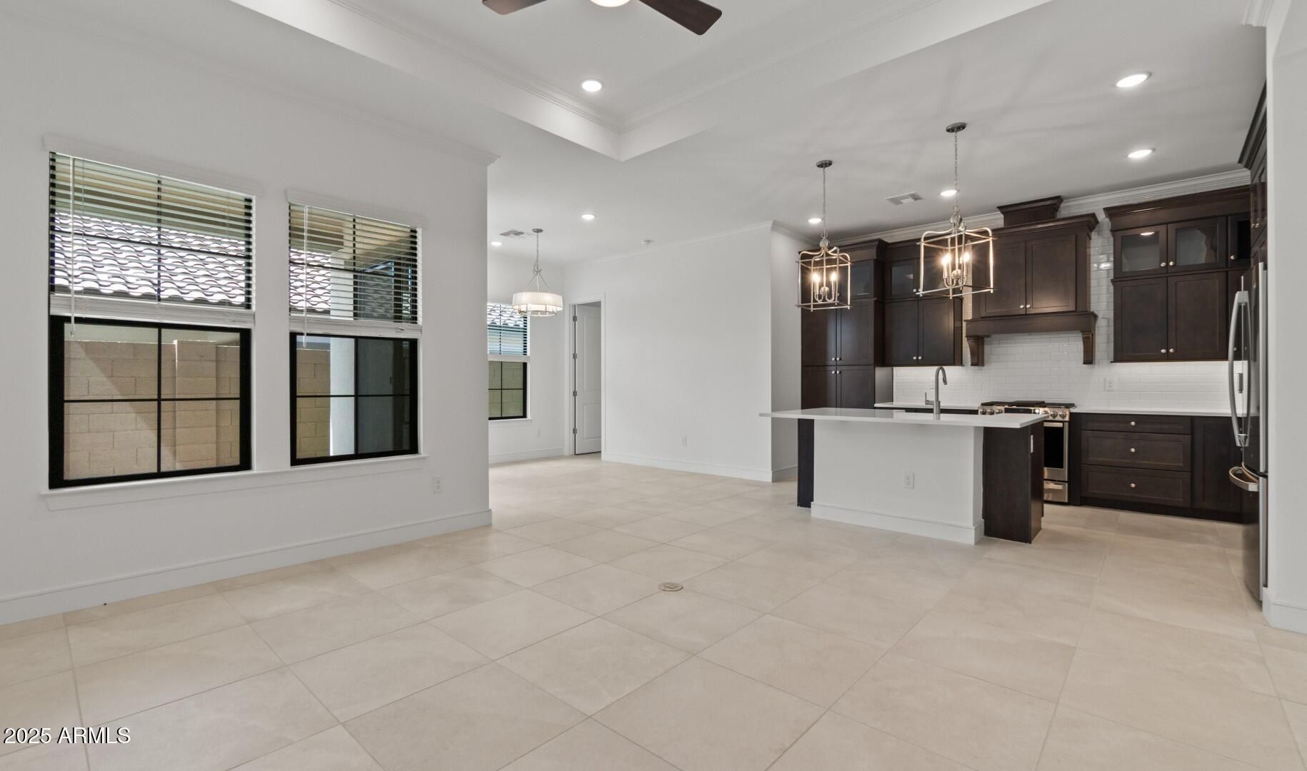 ~Special CASH Pricing Available $443,990~ Live life to the fullest at Victory at Verrado Villas, a vibrant 55+ community in Buckeye, AZ, offering exceptional resort-style amenities. This beautifully crafted Clyde plan blends Farmhouse-inspired style with a spacious, open layout designed for entertaining. The chef's kitchen impresses with a large island and striking pendant lighting, dark-stained cabinets, marble-look quartz counters, and GE Profile stainless-steel appliances, including a refrigerator. A private home office provides the perfect retreat for work, fitness, or hobbies. The luxurious primary suite offers a spa-like bath with dual sinks, a no-step rain shower, and a generous walk-in closet. Don't miss the opportunity to make this stunning home yours.