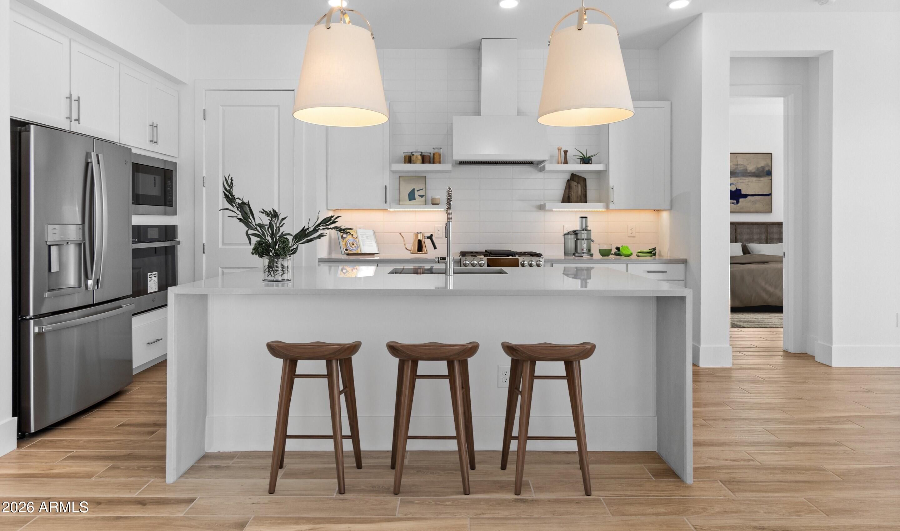 Live life to the fullest in Victory at Verrado, a premier 55+community offering private golf club, resort amenities plus convenient boutique shopping and dining. This beautifully designed Bernstein plan features an open layout perfect for entertaining and relaxing. The gourmet kitchen boasts elegant stunning White cabinets, Soapstone quartz counters, a spacious island with pendant lighting, and premium stainless-steel appliances. The inviting great room provides the ideal space for gathering with friends and family. Unwind in the luxurious Primary Suite, complete with a spa-like bath, oversized shower, and walk-in closet. Don't miss out on this home!!