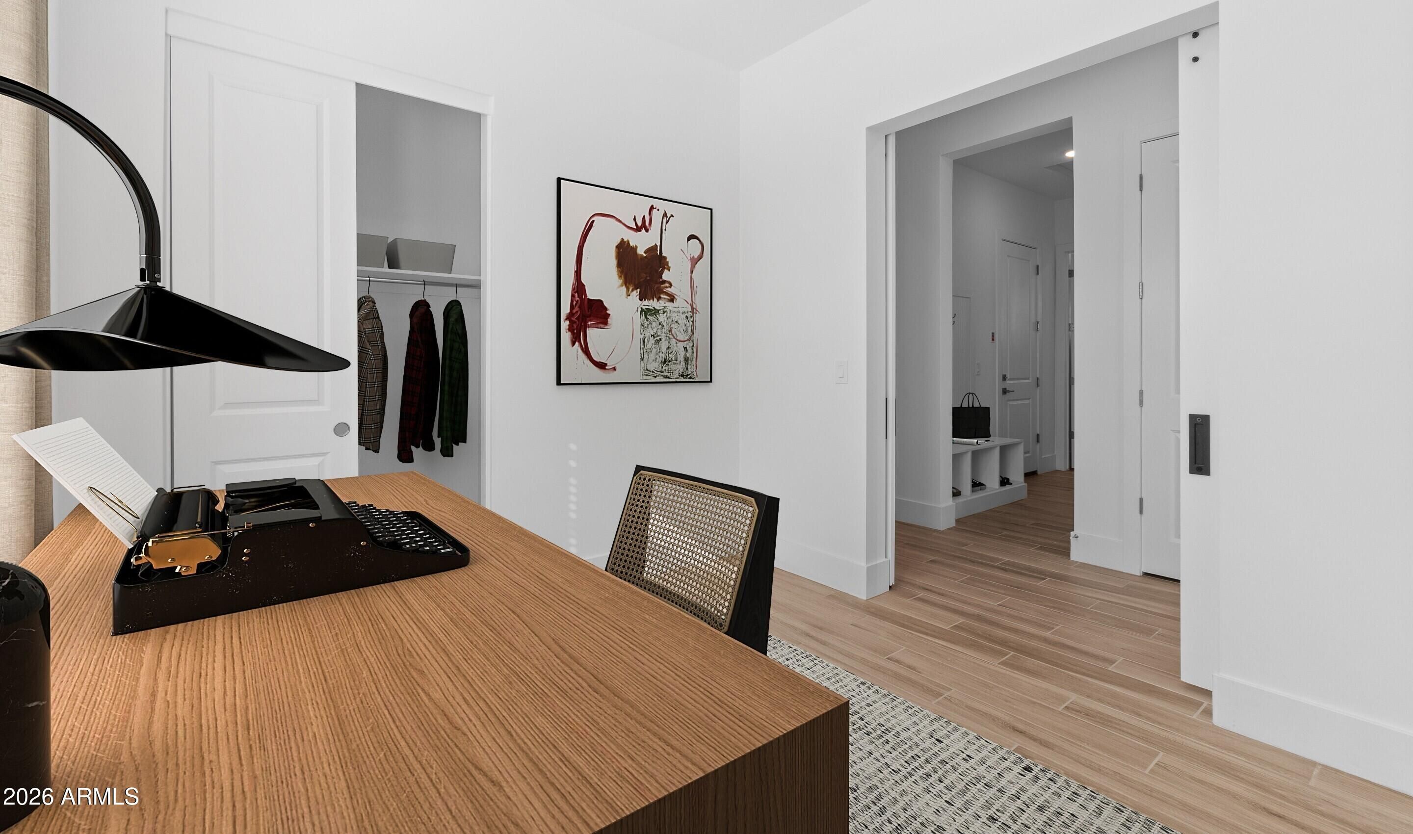 Experience vibrant 55+ living at Victory at Verrado, where resort-style amenities and a lively Main Street with shopping and dining create the perfect backdrop. This thoughtfully designed Bernstein plan showcases stylish Loft-inspired finishes and an open layout ideal for entertaining. The gourmet kitchen features Calacatta Abezzo quartz countertops, white cabinetry, a large island with pendant lighting, and GE Profile stainless-steel appliances. The inviting great room flows seamlessly to a covered patio and beautifully landscaped yard for effortless indoor-outdoor living. The serene primary suite offers a spa-like bath, oversized shower, and walk-in closet for your perfect retreat. A second bedroom is perfect for guests, plus an office is perfect for productivity or as a home gym.
