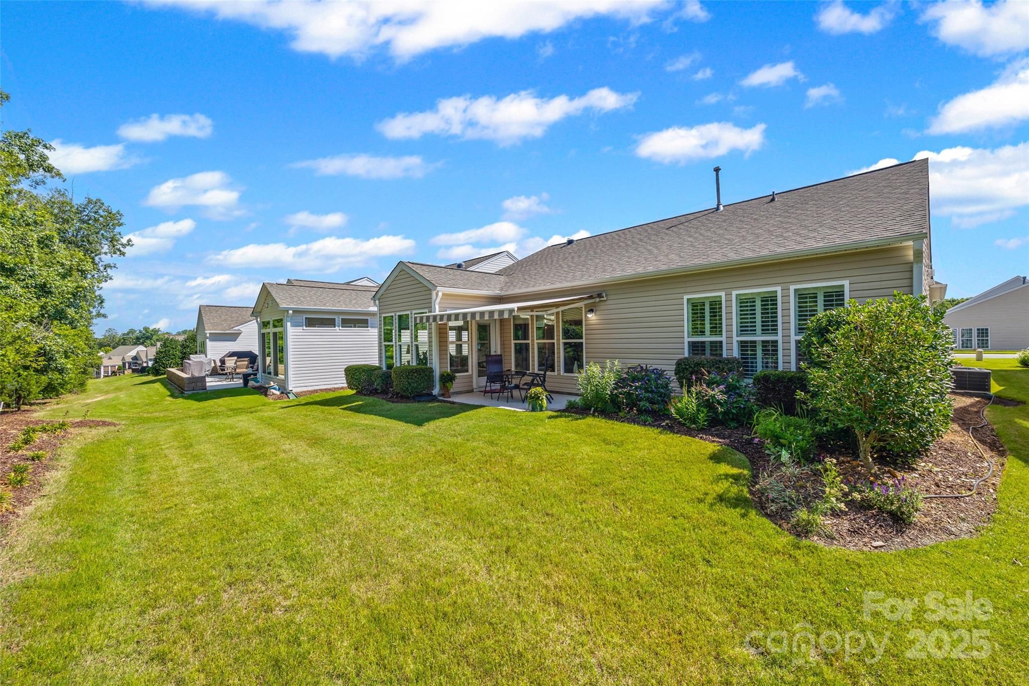 Welcome Home to Sun City Carolina Lakes! This move-in ready home offers the perfect blend of comfort, privacy, and sophistication - right in the heart of one of the area’s most sought-after active adult communities. Nestled on a peaceful cul-de-sac street, this beautifully updated Copper Ridge model offers serene, tree-lined views that back to the 8th hole, providing both privacy and picturesque golf course scenery. This 2-bedroom, 2-bath home showcases timeless elegance with wood floors, plantation shutters in the office and bedrooms, and crown molding throughout. A dedicated home office features stunning custom built-in shelving, while the open-concept living area is filled with natural light and anchored by a cozy gas fireplace. The kitchen delights with white cabinetry, pull-out drawers, and a stylish updated backsplash, blending functionality with charm. Adjacent, the bright sunroom opens to a spacious patio with an adjustable awning, perfect for relaxing or entertaining while enjoying tranquil views. Both bathrooms have been tastefully updated with new vanities, modern lighting, and beautifully refreshed shower finishes. The primary suite offers a generous bedroom, a luxurious en-suite bath featuring a soaking tub, separate tiled shower, and a large walk-in closet. The garage is complete with epoxy floors & a utility sink for added convenience. Sun City residents enjoy resort-style amenities, including an 18-hole golf course, two amenity centers, indoor and outdoor pools, fitness facilities, pickleball and tennis courts, walking trails, and a full calendar of clubs, classes, and social events.