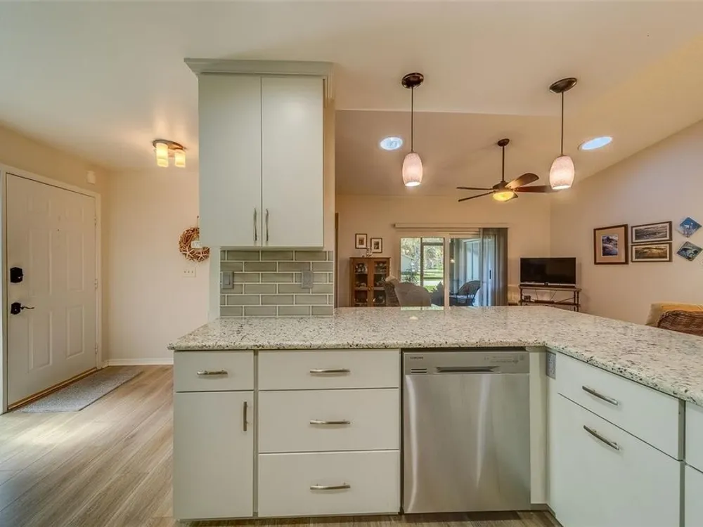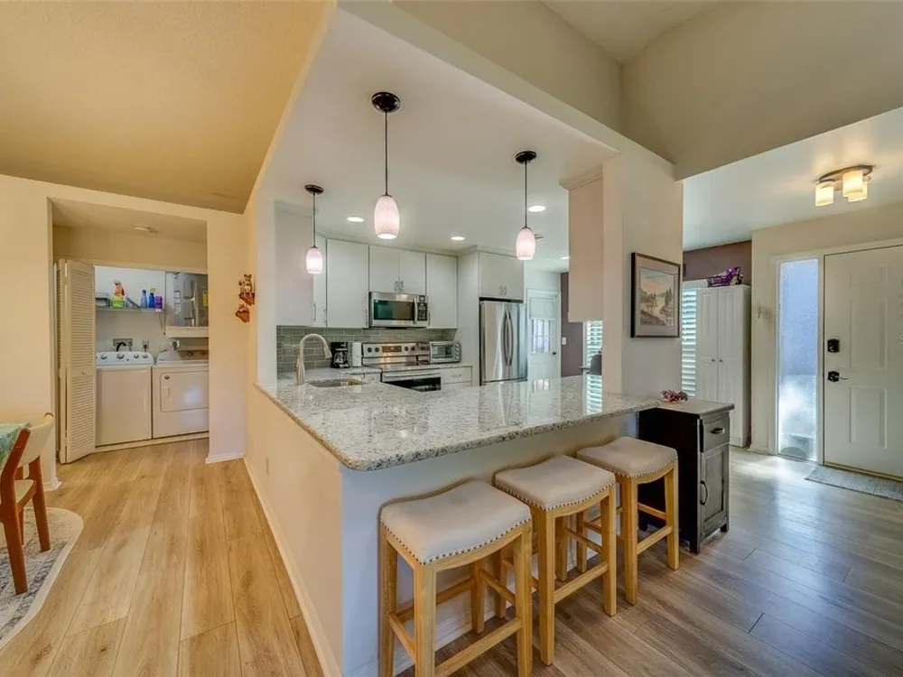 PRICED TO SELL! Welcome to this move-in ready, worry free, NON-EVACUATION/NON-FLOOD ZONE 2 bedroom/2 bathroom corner unit villa located in the meticulously maintained & centrally located 55+ community in Clearwater FL. ROOF 2020, IMPACT WINDOWS AND DOORS, HVAC 2016, UPDATED ELECTRICAL PANEL, LUXURY VINYL FLOORING. This home has been recently remodeled and boasts a split floor plan with vaulted ceilings which creates an open and spacious feel. Both bedrooms are generously sized and the primary bedroom features an en-suite bathroom and walk-in closets for added convenience. The kitchen has been fully remodeled and is an open concept connecting the main living areas. The layout lends itself to a wonderful space for entertaining guests. An additional highlight of this property are the two covered and screened patios that provide a great space for fresh air and relaxation. The Villas of Lake Arbor is a pet friendly community and a short drive to award winning beaches, shopping, restaurants, and the Tampa International Airport. Welcome to your very own slice of paradise in the Sunshine State! *** All Information Is Deemed Accurate** Buyer Must Verify**