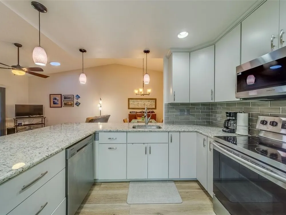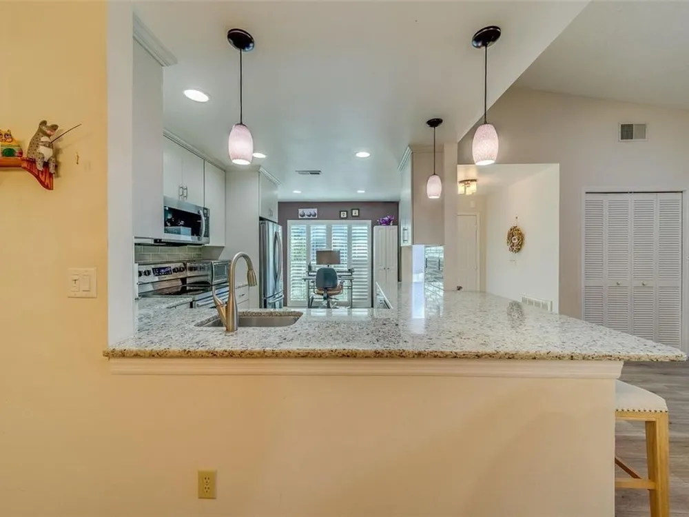 - Ceiling Fan(s), Split Bedrooms, Stone Counters, Vaulted Ceiling(s), Window Treatments