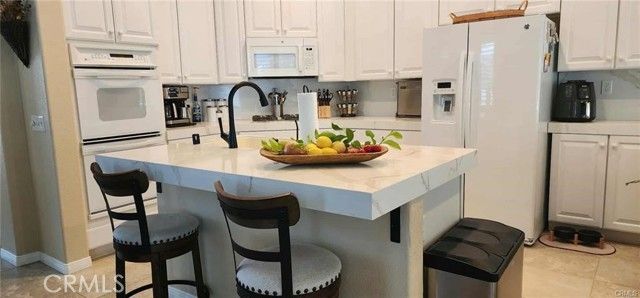Pour yourself your favorite beverage and set back and enjoy the view of Mt. San Gorgonio from your front courtyard – taking in this beautiful site and enjoy the conversation you might have with your neighbors and friends. When you’re finished relaxing, come and play the 18-hole professional course here at Sun Lakes and partake in the enjoyment of playing on a well maintained and picturesque golf course. If this course seems to be challenging – then play the Executive 18-hole golf course that offers similar breathtaking views and challenges. If golf isn’t your bag – then how about playing tennis on the renovated tennis courts near the South Club house. If tennis isn’t your interest, how about playing pickleball on the renovated pickleball courts near the North Club house. If tennis or pickleball isn’t your cup of tea – try relaxing at the large pool and spas located at the main club house, north club house, or the in-door pool and spa at the South Club house. There’s a saying here at Sun Lakes Country Club – if you’re bored, it’s your fault” because if you have a interest, there probably is a club you can join. Having tried out the different facilities – ranging from golf, tennis, pickleball, bocce ball, weight rooms, hobby rooms, entertainment center, exquisite on-site restaurant and sand wedge sandwich shop, and now you need to relax – ENJOY THE UPGRADES AND EVEN MORE UPGRADES your new home: 3 bedrooms, Den/bedroom and 2 1/2 bath. As stated, this home has upgrades galore, starting with 18” porcelain tile in the entry, hall, kitchen, bath and laundry, with upgrade carpets, professionally installed plantation shutters, ceiling fans throughout, quartz countertops and splash guards, and white Euro cabinets, new garbage disposal, new water heater and circulation pump. Your entry has a professionally designed front courtyard where you can enjoy your morning coffee and mountain views, and the back yard has a full-length covered patio with outdoor fan and a professionally installed bar and barbeque set, which you can enjoy entertaining your friends and family. In addition, the owner has had a new roof installed and has had the eves, trim and gutters recently professionally painted. This model (Sunflower) has a 2-car expanded garage (for your golf cart storage). Even more exciting, Sun Lakes doesn’t have any Melo Ross as does all new construction in Banning and Beaumont areas!
