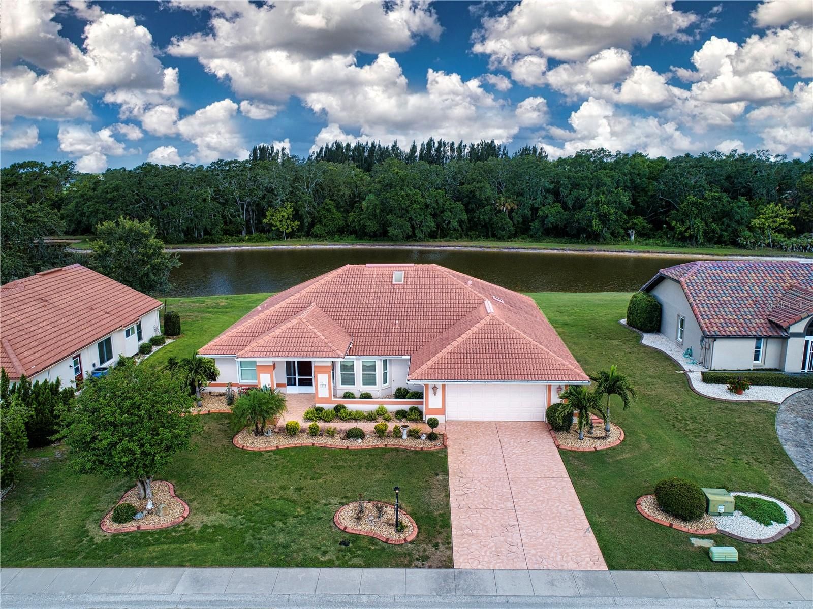 WATERFRONT HOME WITH LOW HOA IN BEAUTIFUL WEDGEWOOD. Imagine yourself in a most beautiful and well-maintained property in this sought after community. Your property line actually extends into the lake and you water your lawns with the lake water, minimizing YOUR WATER BILL. Water and conservation view from both living areas, kitchen, master suite and guest bedroom. From the screened lanai you will enjoy wildlife watching, bird watching and the Florida sunsets are priceless. Expansive home built for entertaining with vaulted ceilings, skylights, formal and informal living areas and many updates. Split floor plan with 3 bedrooms and 2 baths. The generous master suite features 2 walk-in closets, linen closet, separate shower, spa/jetted tub, large vanity with2 sinks. Enjoy peace of mind with the electric roll down hurricane shutters. Irrigate with water from the lake and save $$. Huge garage with built in storage, indoor laundry room and screened and tiled entry. Updates from 2007 to present include, new air conditioner, cherry cabinets with raised panel doors and roll out drawers, Corian counters, bathroom vanities & sinks, large, screened lanai, window treatments and plantation style blinds, automatic storm shutters, custom Crete treatment on driveway, garage floor and sidewalks, water heater, hurricane garage door and more.