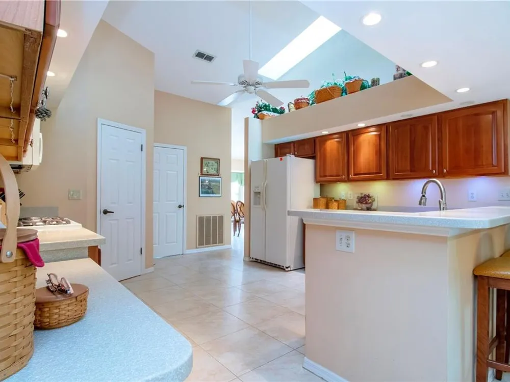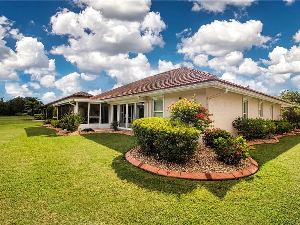 WATERFRONT HOME WITH LOW HOA IN BEAUTIFUL WEDGEWOOD. Imagine yourself in a most beautiful and well-maintained property in this sought after community. Your property line actually extends into the lake.and you water your lawns with the lake water, minimizing YOUR WATER BILL. Water and conservation view from both living areas, kitchen, master suite and guest bedroom. From the screened lanai wildlife watching, bird watching and the Florida sunset are priceless. Expansive home built for entertaining with vaulted ceilings, skylights, formal and informal living areas and many updates. Split floor plan with 3 bedrooms and 2 baths. The generous master suite features 2 walk-in closets, linen closet, separate shower, spa/jetted tub, large vanity with2 sinks. Enjoy peace of mind with the electric roll down hurricane shutters. Irrigate with water from the lake and save $$. Huge garage with built in storage, indoor laundry room and screened and tiled entry. Updates from 2007 to present include, new air conditioner, cherry cabinets with raised panel doors and roll out drawers, Corian counters, bathroom vanities & sinks, large, screened lanai, window treatments and plantation style blinds, automatic storm shutters, custom Crete treatment on driveway, garage floor and sidewalks, water heater, hurricane garage door and more.