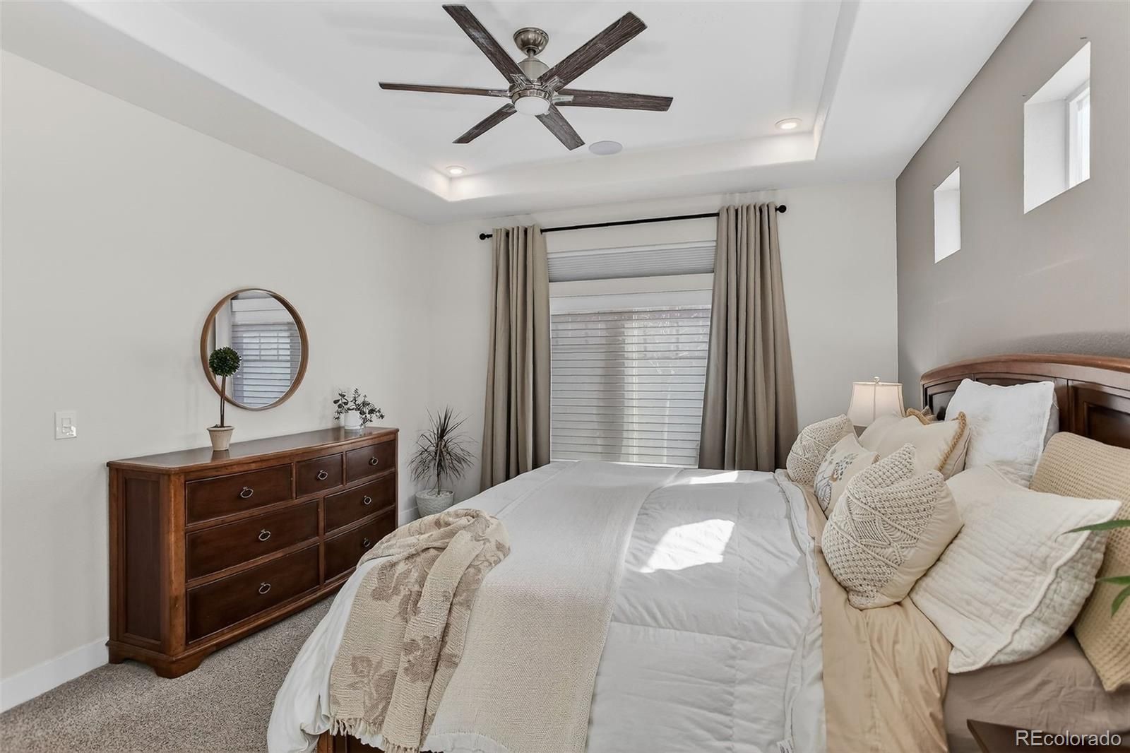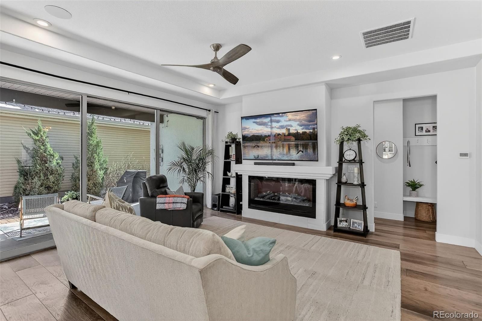 Life feels a little easier at Fairway Villas, a private 55+ community tucked alongside the fairways of Green Valley Ranch Golf Club. Enjoy quiet walks along beautifully maintained paths, a round of golf, coffee with neighbors & travel that's effortless with E-470 & Denver International Airport nearby. Situated on a VALUABLE CORNER homesite WITH PRIVATE YARD, this FORMER MODEL HOME was thoughtfully designed for comfortable, low-maintenance living, with PREMIUM UPGRADES that elevate both function & style. The ranch-style layout offers the ease of main-level living, ENHANCED by EXPANSIVE windows that fill the home with natural light creating a bright, open & ELEVATED feel throughout. The kitchen sits at the heart of the home, featuring generous counter space, UPGRADED FINISHES such as quartz, PREMIUM lighting, gas range, walk-in pantry & soft-close pull-out shelving that ENHANCES everyday convenience with thoughtful organization. The living area opens seamlessly to a covered patio, complete with a SONOS SURROUND SYSTEM extending indoors & out, creating an ideal setting to unwind or entertain. The main-level primary suite offers a quiet retreat, while the secondary bedroom with nearby bath provides flexible space for guests, a home office, or a cozy den. Even the laundry room REFLECTS MODEL HOME QUALITY, with built-in shelving designed to keep everything effortlessly organized. Updated lighting and modern ceiling fans throughout add a fresh, polished touch. Downstairs, the finished basement expands the home’s possibilities with a large family room, additional bedroom & bath, and an impressive storage area, ideal for hobbies, seasonal décor, or travel gear. With golf, walking trails, dining, medical services, shopping, interstate access & DIA all nearby, this home offers the perfect balance of privacy, convenience & community. A place where the pace is comfortable, the neighbors are welcoming, and the next chapter feels just right. Contact Wendy today for a showing.