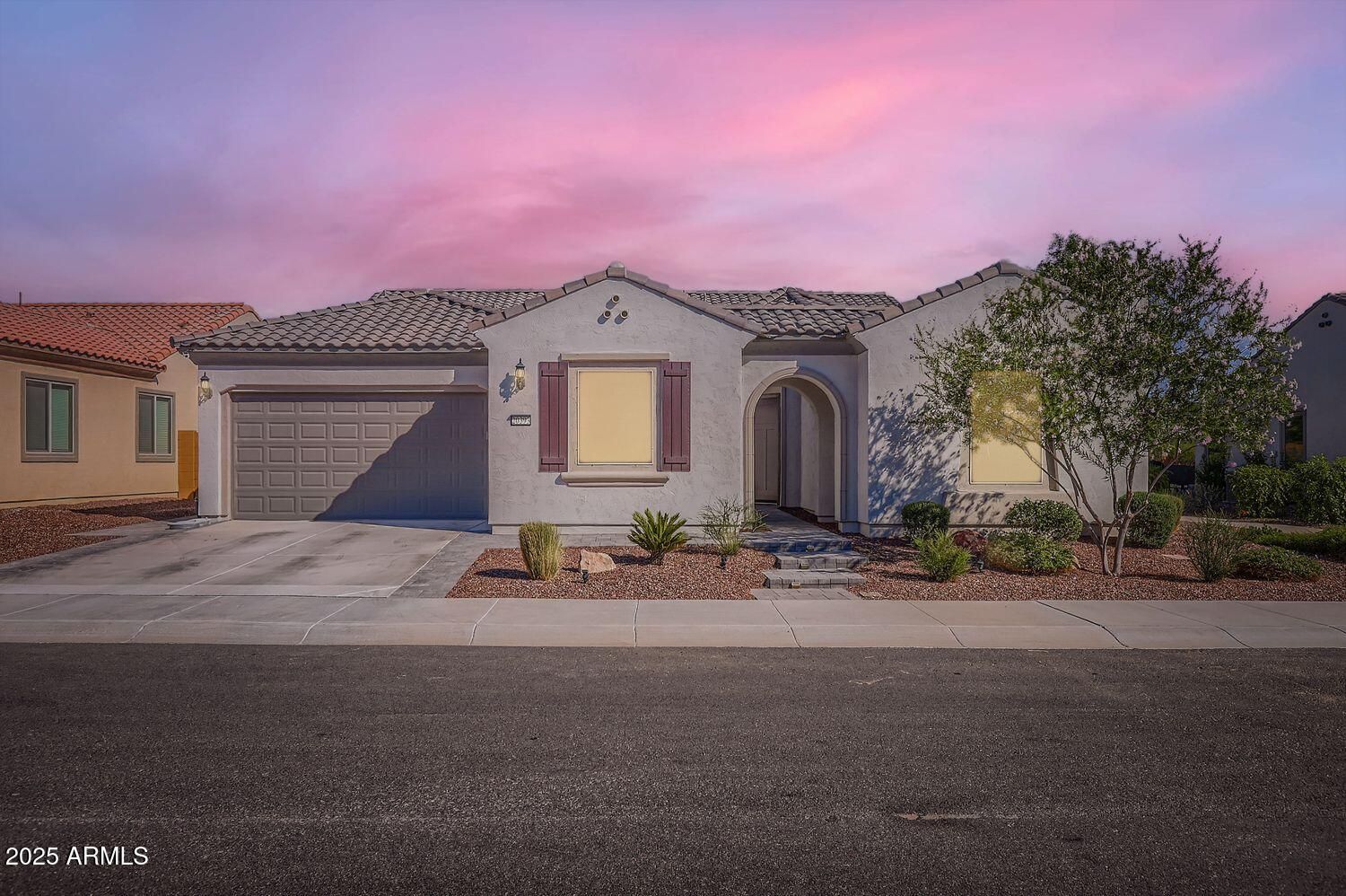 LOTS OF SPACE AND LOTS OF VALUE! This 3-bed, 2.5-bath Voyage model, with a den and 2.5-car garage is located in the vibrant and amenity-rich 55+ active adult community of Sun City Festival. With a masonry-walled back yard facing southeast, this home also offers a lot of privacy for the owners. The Kitchen features natural-colored Alder wood cabinets with pull-out trays, granite countertops, a Blanco dual-basin granite sink and an electric cooktop with wall oven and microwave. The owner's suite is spacious with dual closets, a rainglass enclosed shower and direct access to the laundry. The living area includes a den with French doors, tiled floors with carpeted bedrooms. The insulated 2.5-car garage includes additional electrical outlets and lighting and epoxy-coated garage floor.
