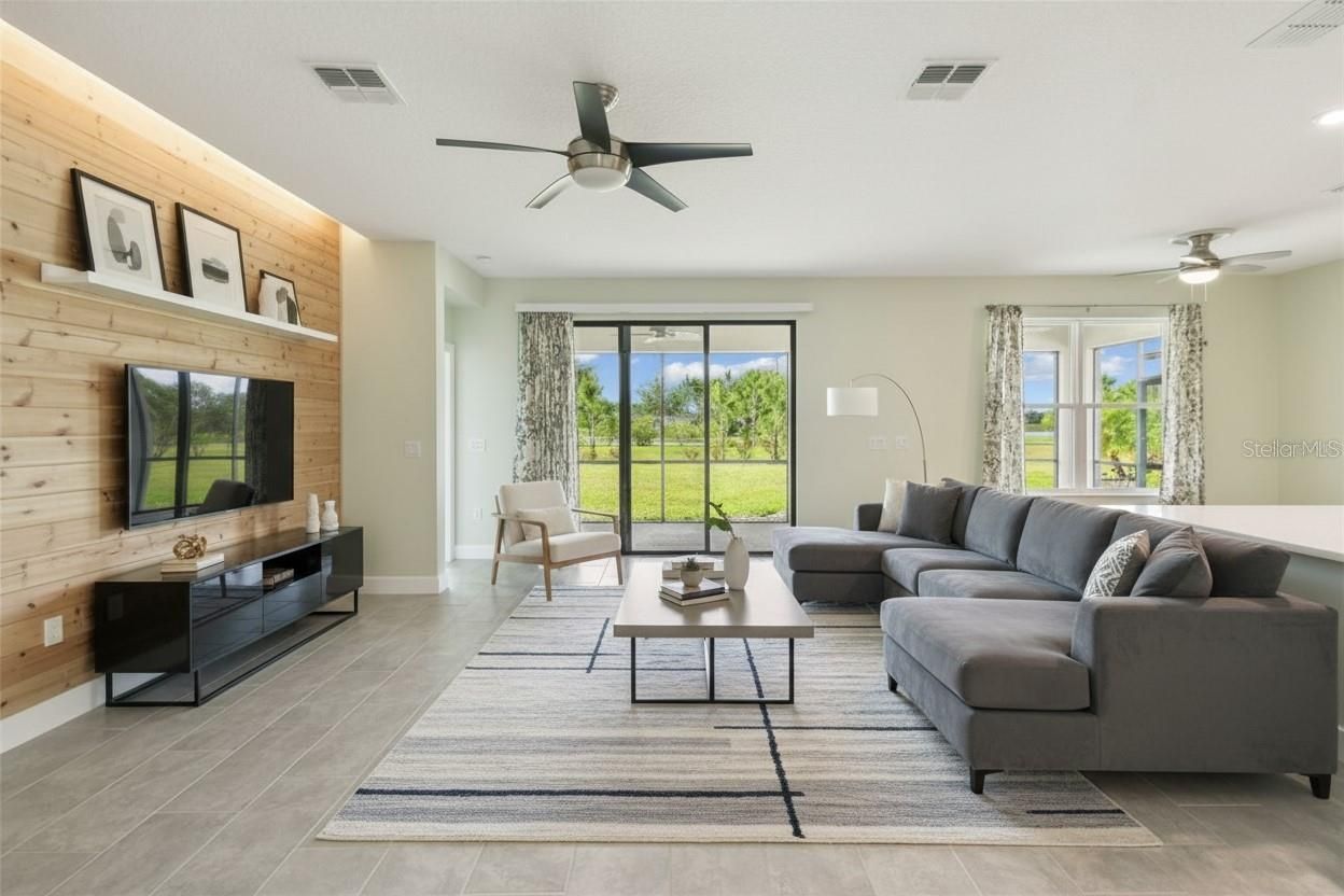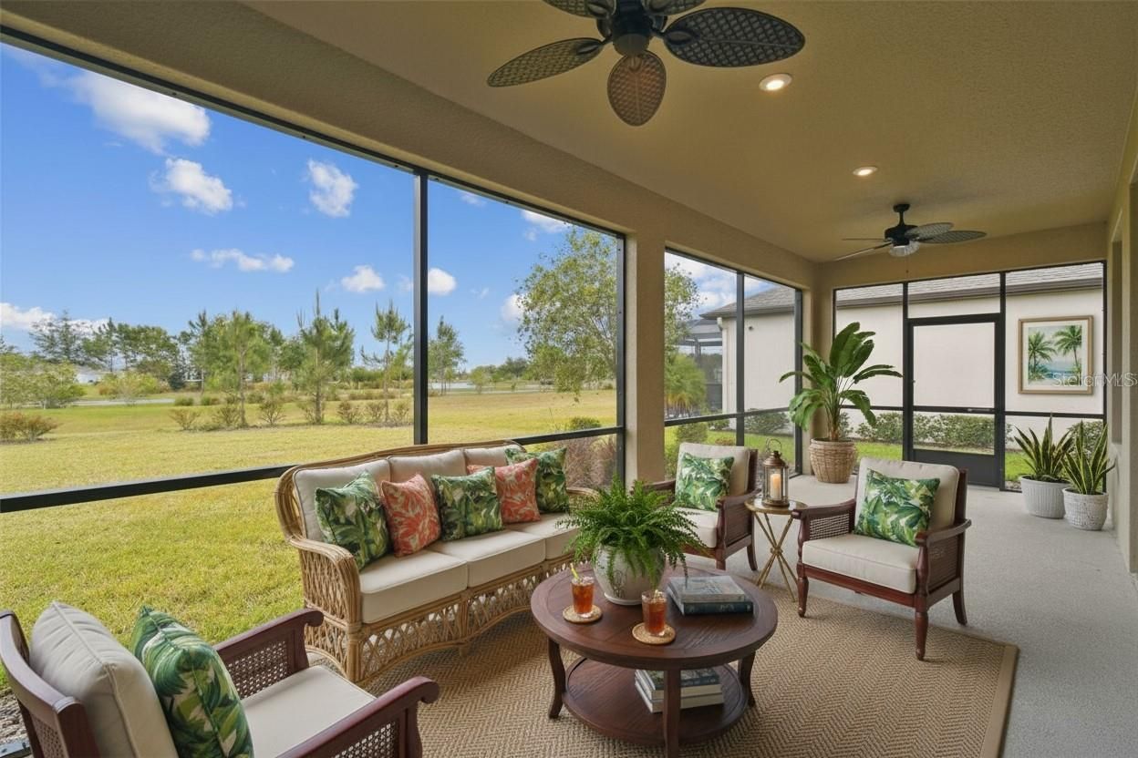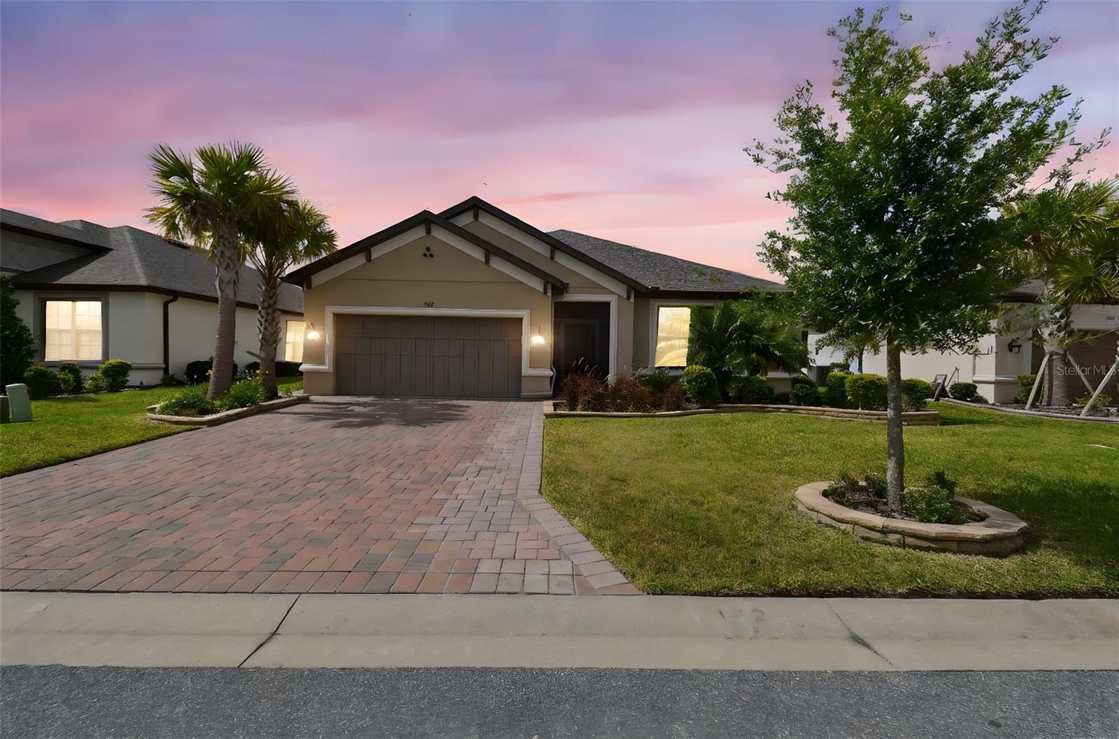 One or more photo(s) has been virtually staged. BACK ON MARKET! Buyers Contingency Fell Through! Your Gain! Welcome to this stunning, like new, 2022 Brava Model, offering 3 bedrooms, 2 bathrooms, and a thoughtfully designed layout in a prime location near the Village Center amenities. The home greets you with custom upgraded landscaping and a charming screened-in front porch, creating a warm and welcoming first impression. Step inside to discover an open-concept great room, complete with a custom accent wall that adds a touch of elegance and personality to the space. The seamless flow between the living, dining, and kitchen areas makes this home ideal for both daily living and entertaining. The kitchen is a true highlight, featuring an eat-at bar, granite countertops, a stylish tile backsplash, and a walk-in pantry for all your storage needs. Whether you’re cooking a gourmet meal or enjoying a quick snack, this space is both functional and beautiful. The primary bedroom is a luxurious retreat, boasting an extra-large walk-in closet and a spa-like en-suite bathroom. The bathroom is equipped with dual sinks, stone counters, and a custom oversized shower with a built-in seat for added comfort. The second bedroom features its own walk-in closet, providing ample storage and privacy for family or guests. The third bedroom, which can also serve as a den or study, has a glass double-door entry, offering versatility to suit your needs. The second bathroom includes a tub/shower combination, ensuring convenience for everyone. The dedicated laundry room is designed with practicality in mind, featuring a sink and custom cabinets to keep everything organized and efficient. The screened lanai offers a distant view of a pond. The backyard offers endless possibilities, with plenty of space to add a pool or create a custom outdoor oasis. It can also be fenced, making it a safe and fun area for your furry family members to enjoy. The 2-car garage provides plenty of storage space, ensuring a clutter-free home while accommodating your vehicles and belongings. This home offers the perfect blend of relaxation and recreation, making it an ideal place to call home. With its like-new condition, custom upgrades, and modern design, this Brava Model is truly move-in ready. Whether you’re looking to unwind in your spacious backyard or explore the vibrant community, this home has it all. All this in one of the top 55+ communities in America. Solivita offers residents access to state of the art amenities and work out facilities, dance and aerobics studios, 14 heated swimming pools, 2 heated spas, tennis courts, pickleball courts, softball, shuffleboard, bocce ball, billiards room, art gallery, 3 restaurants and 2 championship 18-hole golf courses. Schedule your private tour today and experience the beauty and comfort of this incredible home!