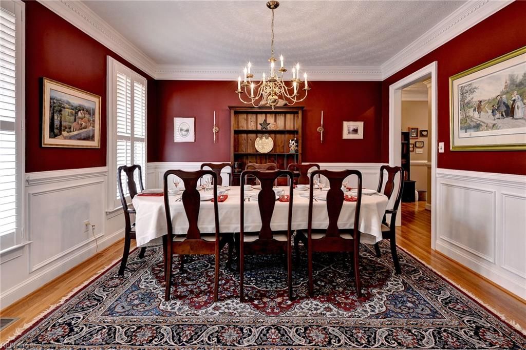 Charming and beautifully presented, with all of the comforts of HOME! Welcoming curb appeal, freshly-mulched flower beds with plantings about to come alive, and full, covered front porch. Inside, enjoy 1st floor living with study (or living rm), dining rm, great rm, kitchen, utility rm, powder rm & primary bedroom suite all on the main level with access to the screened porch from the great rm. The 2nd floor has 3 additional bedrooms (1 of which is a suite of 2 rms with a private full bath), + room over the garage that can be a second office, recreation/craft room or 5th bedroom and full bathroom. Features include wood floors on the first floor & upstairs hallway, plantation shutters throughout, updated appliances in kitchen (5-7 years), gas water heater (2026), roof (2025), Leafguard gutters, heat pump upstairs (8 years), 1st floor gas furnace (2-3 years), whole-house water purifier. Abundant storage throughout. Backyard is level and extends into the woods. Feature sheet in documents.