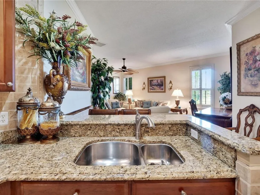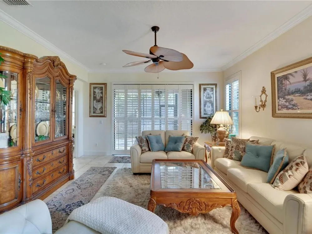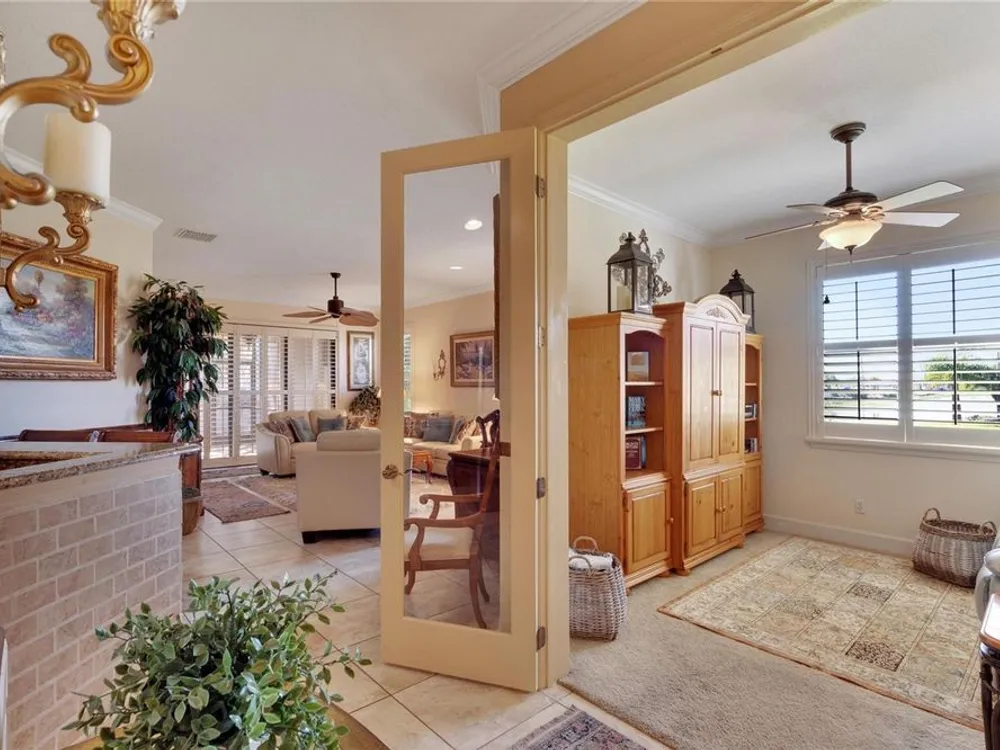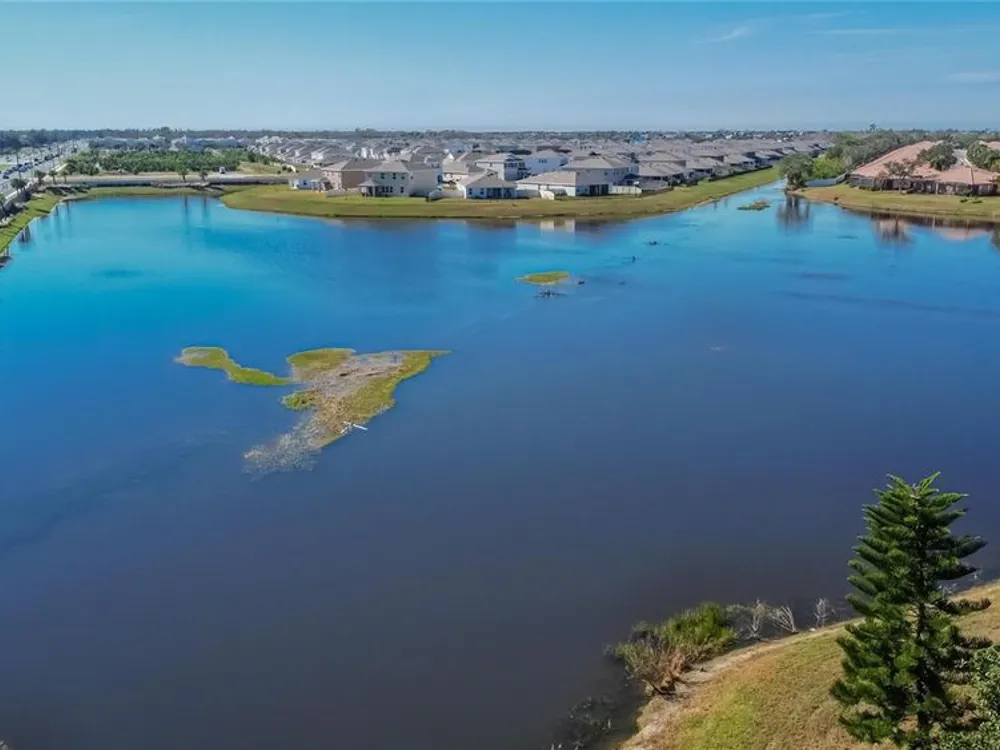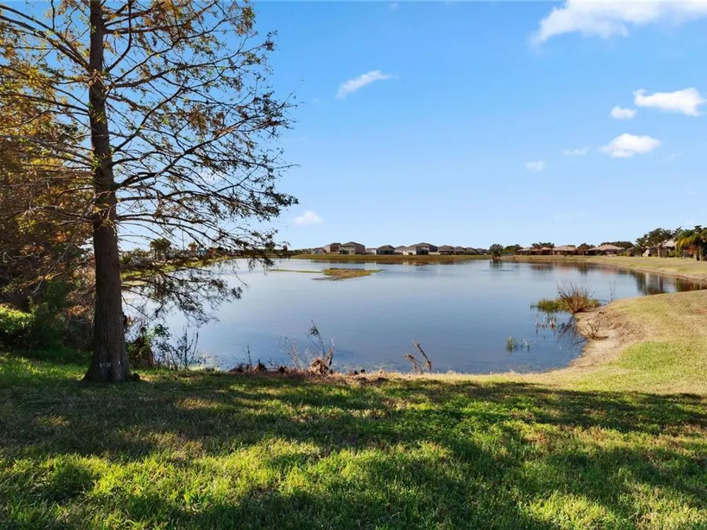 $10,000 PRICE DROP!! WELCOME HOME! You’ve found the one! Nestled in the serene, active 55+ community of Del Webb SouthShore Falls you’ll fall in love with this MOVE IN READY sought after BEACHCOMBER model with a BEAUTIFUL WATERVIEW! This sun filled 1631 sq ft villa home features 2-BEDROOMS, 2-BATHROOMS, a DEN AND FORMAL DINING ROOM WITH ELECTRIC FIREPLACE, and is located at the end of a cul de sac. As you enter through the screened in entrance way you will automatically feel right at home. You will notice the INVITING WARM NEUTRAL COLORS, CROWN MOLDING and that ALL the windows boast PLANTATION SHUTTERS, including the glass slider. This model enjoys a two bedroom split plan allowing for privacy for you and your guests. On the right is the guest bedroom with bay alcove, guest bath and laundry room. On the left is the formal dining room with electric fireplace. Opposite is the den/office with glass enclosed doors. Moving forward you will notice the 42 INCH WOOD CABINETS WITH DENTAL CROWN MOLDING, GRANITE COUNTER TOPS, STAINLESS STEEL APPLIANCES and a BREAKFAST BAR for casual dining overlooking the large great room. The owner’s suite is located off the great room and includes a generous walk in closet, a dual sink vanity with granite counters, and tiled walk-in shower. Moving through the great room and glass slider you will enter the PRIVATE, EXTENDED LANAI with a water view. Southshore Falls has a 24/7 gated and guarded entrance, a 14,000 sq ft Clubhouse featuring a Ballroom, State-of-the-art Fitness Center, Billiard room, Craft room, Library/Card room and Internet Café. Outdoor amenities include 2 Swimming pools, a Resistance pool, Hot tub, Shuffleboard, Bocce Ball, Pickle Ball and Tennis Courts, Putting Green and Nature Trail. There are several clubs and activities including Mahjongg, Trivia, Bingo, Photography Club, Painting, Jewelry Making, Scrabble, Golf club, Softball club, Out and About Club, Bike Club, Theater Group, Food Truck night and many evenings of dancing to live band just to mention a few of the offerings here at Southshore Falls and many more!!