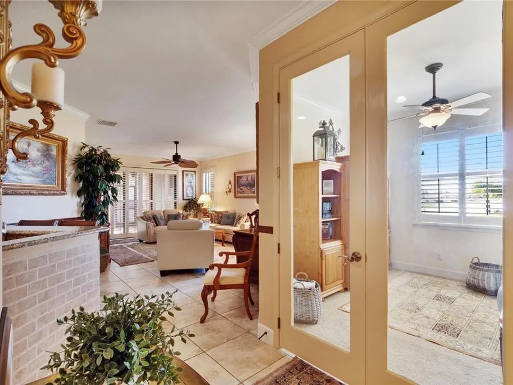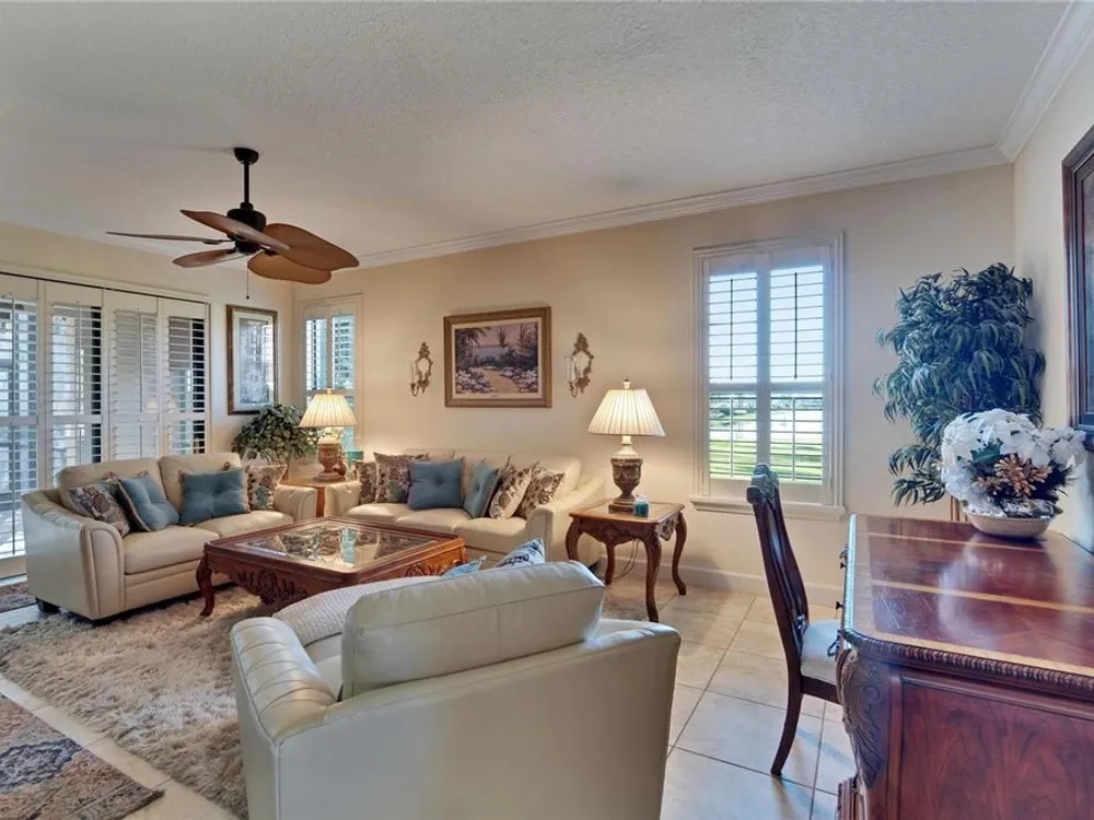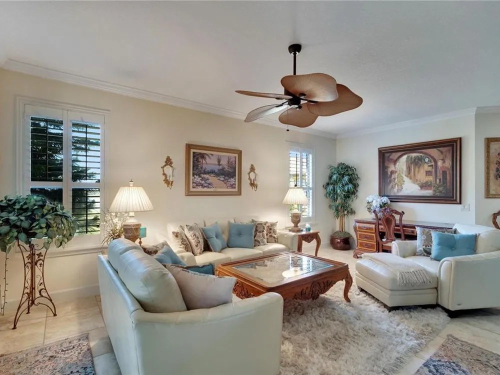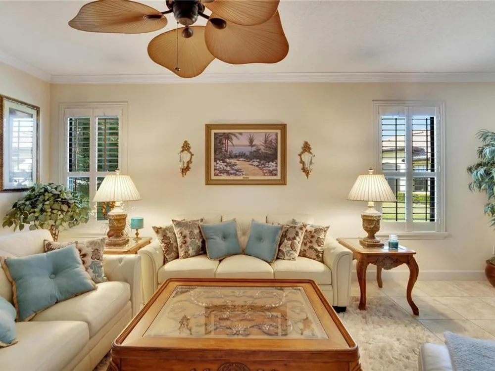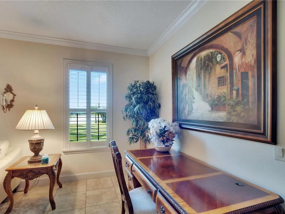 $10,000 PRICE DROP!! WELCOME HOME! You’ve found the one! Nestled in the serene, active 55+ community of Del Webb SouthShore Falls you’ll fall in love with this MOVE IN READY sought after BEACHCOMBER model with a BEAUTIFUL WATERVIEW! This sun filled 1631 sq ft villa home features 2-BEDROOMS, 2-BATHROOMS, a DEN AND FORMAL DINING ROOM WITH ELECTRIC FIREPLACE, and is located at the end of a cul de sac. As you enter through the screened in entrance way you will automatically feel right at home. You will notice the INVITING WARM NEUTRAL COLORS, CROWN MOLDING and that ALL the windows boast PLANTATION SHUTTERS, including the glass slider. This model enjoys a two bedroom split plan allowing for privacy for you and your guests. On the right is the guest bedroom with bay alcove, guest bath and laundry room. On the left is the formal dining room with electric fireplace. Opposite is the den/office with glass enclosed doors. Moving forward you will notice the 42 INCH WOOD CABINETS WITH DENTAL CROWN MOLDING, GRANITE COUNTER TOPS, STAINLESS STEEL APPLIANCES and a BREAKFAST BAR for casual dining overlooking the large great room. The owner’s suite is located off the great room and includes a generous walk in closet, a dual sink vanity with granite counters, and tiled walk-in shower. Moving through the great room and glass slider you will enter the PRIVATE, EXTENDED LANAI with a water view. Southshore Falls has a 24/7 gated and guarded entrance, a 14,000 sq ft Clubhouse featuring a Ballroom, State-of-the-art Fitness Center, Billiard room, Craft room, Library/Card room and Internet Café. Outdoor amenities include 2 Swimming pools, a Resistance pool, Hot tub, Shuffleboard, Bocce Ball, Pickle Ball and Tennis Courts, Putting Green and Nature Trail. There are several clubs and activities including Mahjongg, Trivia, Bingo, Photography Club, Painting, Jewelry Making, Scrabble, Golf club, Softball club, Out and About Club, Bike Club, Theater Group, Food Truck night and many evenings of dancing to live band just to mention a few of the offerings here at Southshore Falls and many more!!