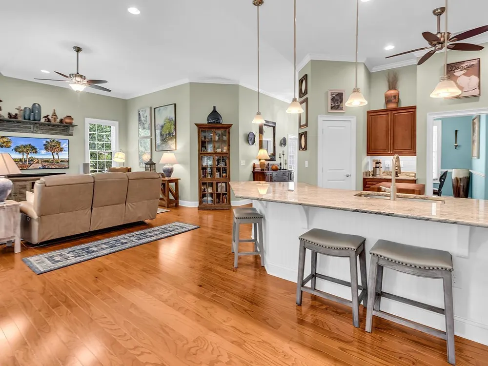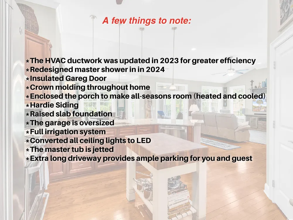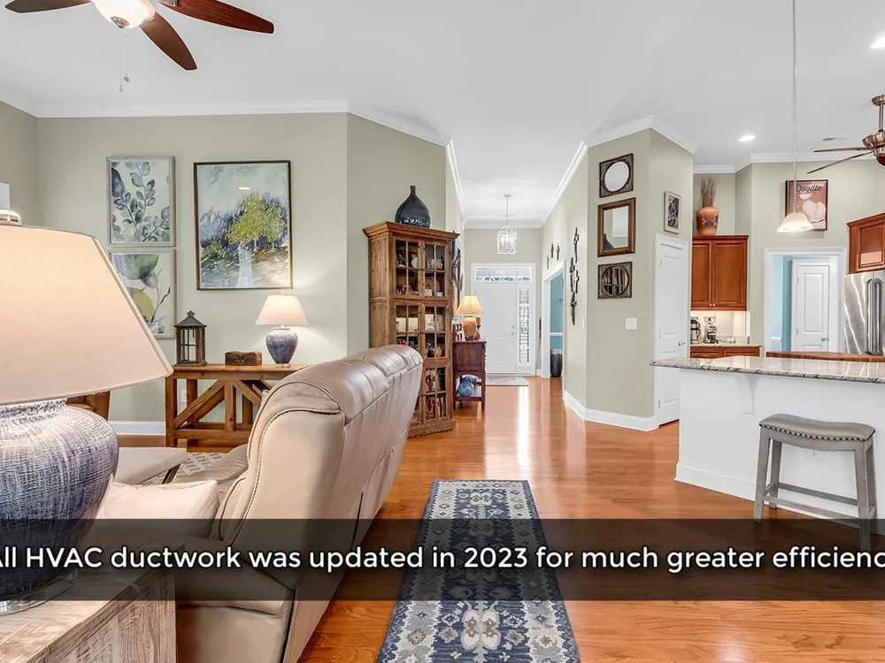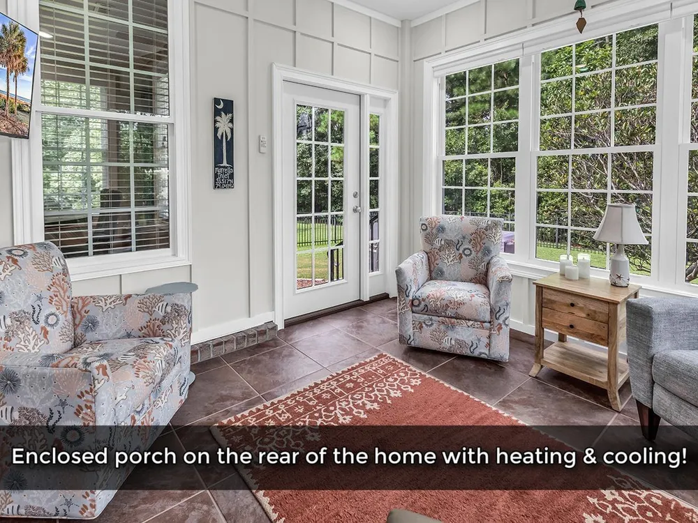Welcome to this impeccably maintained custom home in the sought-after Waverly Bay section of Prince Creek, crafted by renowned builder Ron Dendy of Signature Homes. From the moment you arrive, you’ll notice the attention to detail—from Hardie siding on a raised slab foundation to the manicured grounds supported by a full irrigation system. This large private lot offers ample room to extend your outdoor living, as the existing fence lines do not capture the full property footprint. Inside, the home flows with coastal elegance and thoughtful upgrades. The expansive living room invites gatherings both large and small. The rear porch has been enclosed, fully heated and cooled, creating a year-round retreat that blurs the line between indoor and outdoor living. The kitchen boasts granite countertops, crown molding, and upgraded LED lighting, while tray ceilings add depth and character to every first-floor bedroom. The redesigned master shower (2024) and relaxing jetted tub elevate the owner’s suite into a true sanctuary. This home offers 4 bedrooms, 3 full baths, plus an upstairs bonus room for flexible living (considered the 4th bedroom). Practical upgrades include natural gas service, an insulated garage door, upgraded ductwork (2023) for enhanced efficiency, and an HVAC service contract to keep everything in top shape. An oversized two-car garage ensures plenty of parking and storage. Living in Waverly Bay means enjoying a rare gated community lifestyle with resort-style amenities. Residents here have exclusive access to both TPC Boulevard and Prince Creek Parkway, making trips to shopping, the Murrells Inlet MarshWalk, or the beach both simple and golf-cart friendly. The Bays of Prince Creek features sidewalks throughout, two pools, a clubhouse, tennis and pickleball courts, volleyball, basketball, and lush green spaces perfect for gatherings and play. Located in the heart of Murrells Inlet—just minutes to Huntington Beach State Park, Wacca Wache Marina, and some of the best golf courses on the South Strand—this home offers not only comfort and style, but a lifestyle that is unmatched in the area.