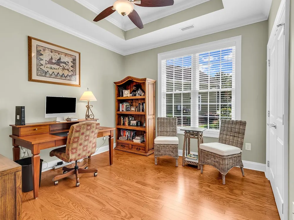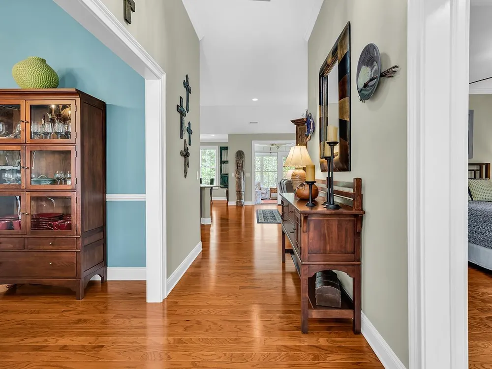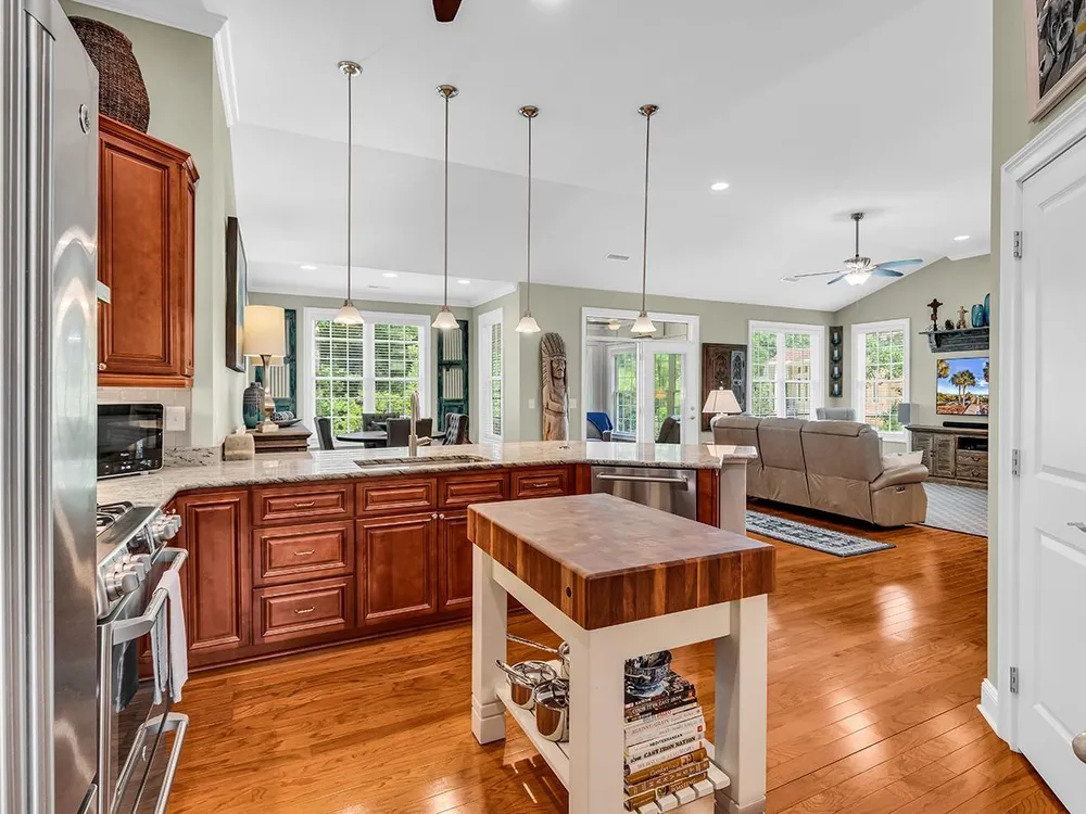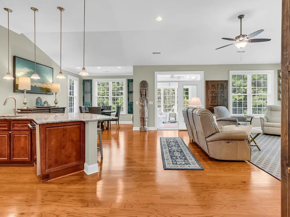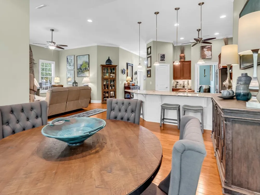 Welcome to this impeccably maintained custom home in the sought-after Waverly Bay section of Prince Creek, crafted by renowned builder Ron Dendy of Signature Homes. From the moment you arrive, you’ll notice the attention to detail—from Hardie siding on a raised slab foundation to the manicured grounds supported by a full irrigation system. This large private lot offers ample room to extend your outdoor living, as the existing fence lines do not capture the full property footprint. Inside, the home flows with coastal elegance and thoughtful upgrades. The expansive living room invites gatherings both large and small. The rear porch has been enclosed, fully heated and cooled, creating a year-round retreat that blurs the line between indoor and outdoor living. The kitchen boasts granite countertops, crown molding, and upgraded LED lighting, while tray ceilings add depth and character to every first-floor bedroom. The redesigned master shower (2024) and relaxing jetted tub elevate the owner’s suite into a true sanctuary. This home offers 4 bedrooms, 3 full baths, plus an upstairs bonus room for flexible living (considered the 4th bedroom). Practical upgrades include natural gas service, an insulated garage door, upgraded ductwork (2023) for enhanced efficiency, and an HVAC service contract to keep everything in top shape. An oversized two-car garage ensures plenty of parking and storage. Living in Waverly Bay means enjoying a rare gated community lifestyle with resort-style amenities. Residents here have exclusive access to both TPC Boulevard and Prince Creek Parkway, making trips to shopping, the Murrells Inlet MarshWalk, or the beach both simple and golf-cart friendly. The Bays of Prince Creek features sidewalks throughout, two pools, a clubhouse, tennis and pickleball courts, volleyball, basketball, and lush green spaces perfect for gatherings and play. Located in the heart of Murrells Inlet—just minutes to Huntington Beach State Park, Wacca Wache Marina, and some of the best golf courses on the South Strand—this home offers not only comfort and style, but a lifestyle that is unmatched in the area.