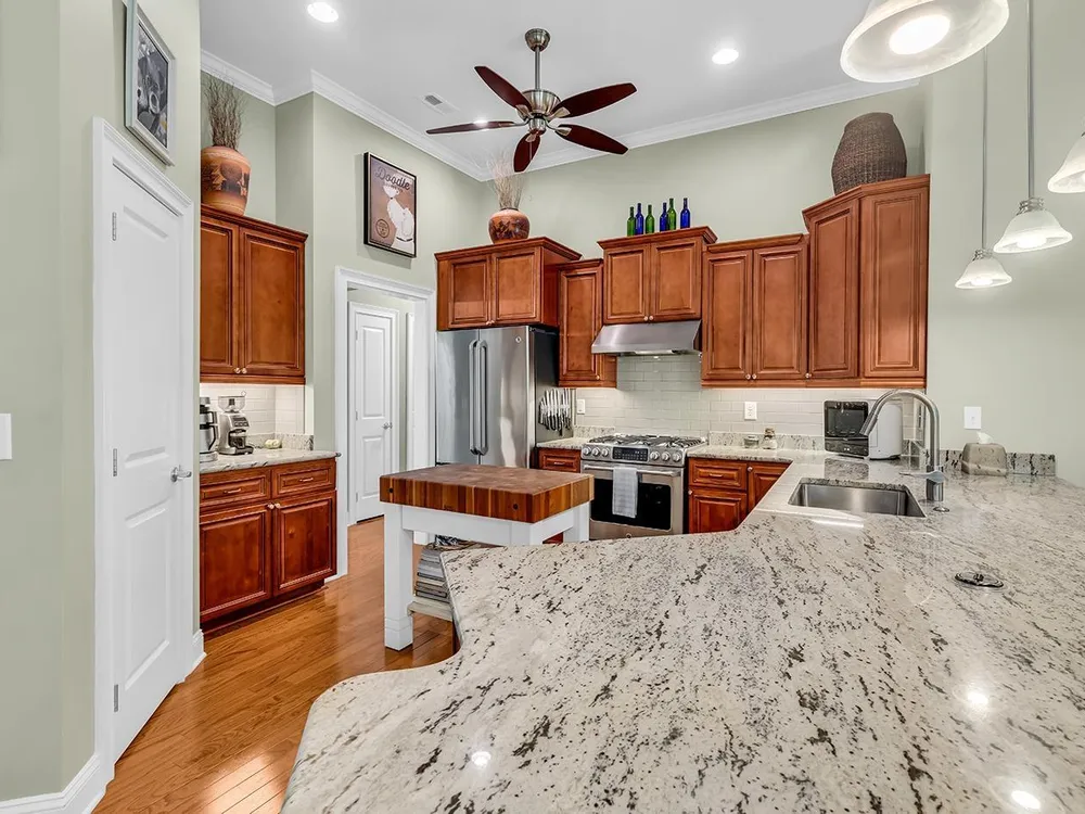 - Split Bedrooms, Breakfast Bar, Bedroom on Main Level, Entrance Foyer, Stainless Steel Appliances, Solid Surface Counters