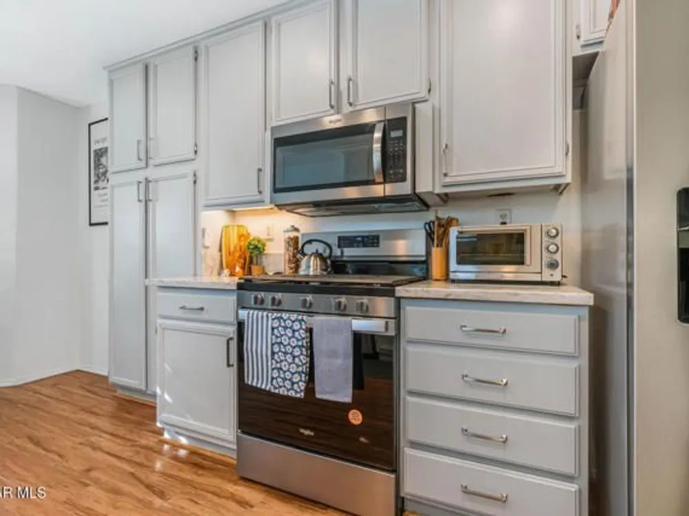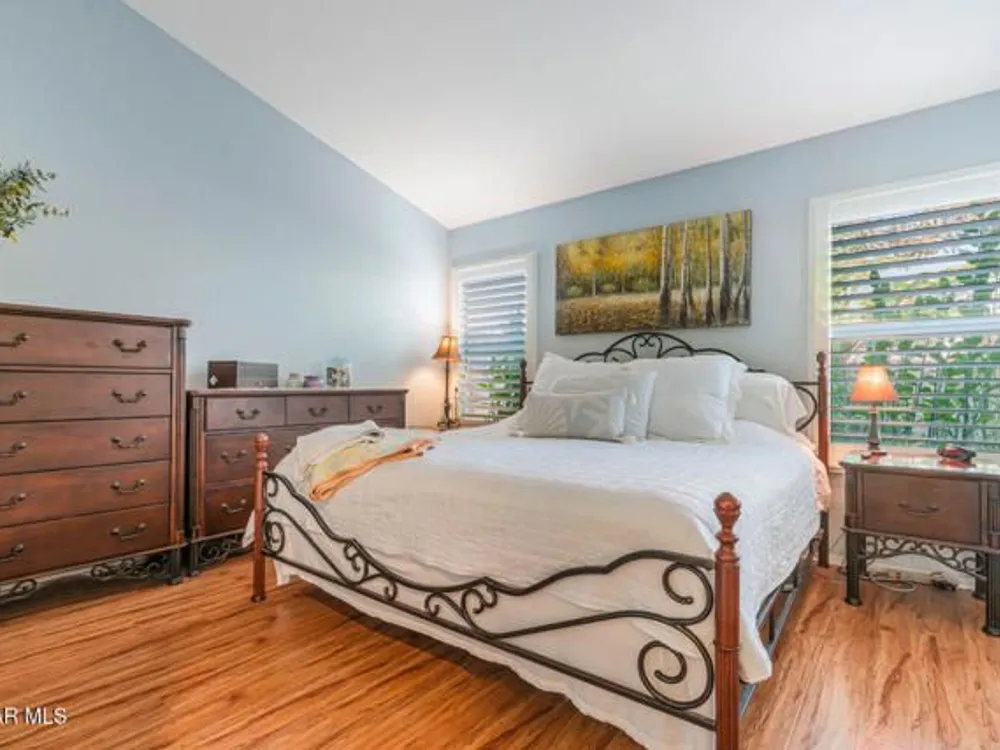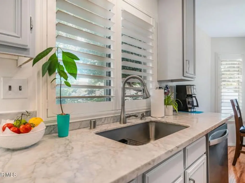 Casa Flores at its finest as the Simi Valley premier 55+ community located in East Simi, surrounded by 200-year-old oak tree(s), situated next to and across the street from the park and picnic area is undoubtedly the best locale within Casa Flores. No one on the south side but the park. Peaceful, serene and quiet location of this home, best in the community.Your primary bedroom suite is on the lower level with Corian in the bath, double sinks, upgraded tile and huge mirrored wardrobe closet, floor-to-ceiling linen closet.Beautifully remodeled kitchen with Italian Carrara marble counters, 5-burner stove, built-in microwave, nook to enjoy meals, single stainless steel deep sink, new hardware, refnished cabinetry, all withim the last two years.The upper level, with the second bedroom, full bath and sitting area/office/retreat also has a spot for a mini office and is perfect for the visiitng guest (maybe a grandchild)?Newer paint throughout, many newer amenitirs include laminate flooring on lower level and carpeted stairs and sitting area and bedroom up, plantation shutters, garage with wall-to-wall storage cabinets, epoxy garage flooring, recessed lighting in the kitchen and alcove, ceiling fans in the kitchen, upper level bedroom and spacious living area or Great Room concept.The adorable rear yard is perfect in size for eaase of maintenance, to sip coffee or enjoy your evening snacks and wine. Nearby restaurants, shopping, financial institution, local coffee house, Metrolink and close to the freeway. The community also offers paths, with stops along the way to rest.For those looking to downsize to a perfect community tailored to over 55 residents, this is your next home.For viewing, contact Jo Ann Poole.