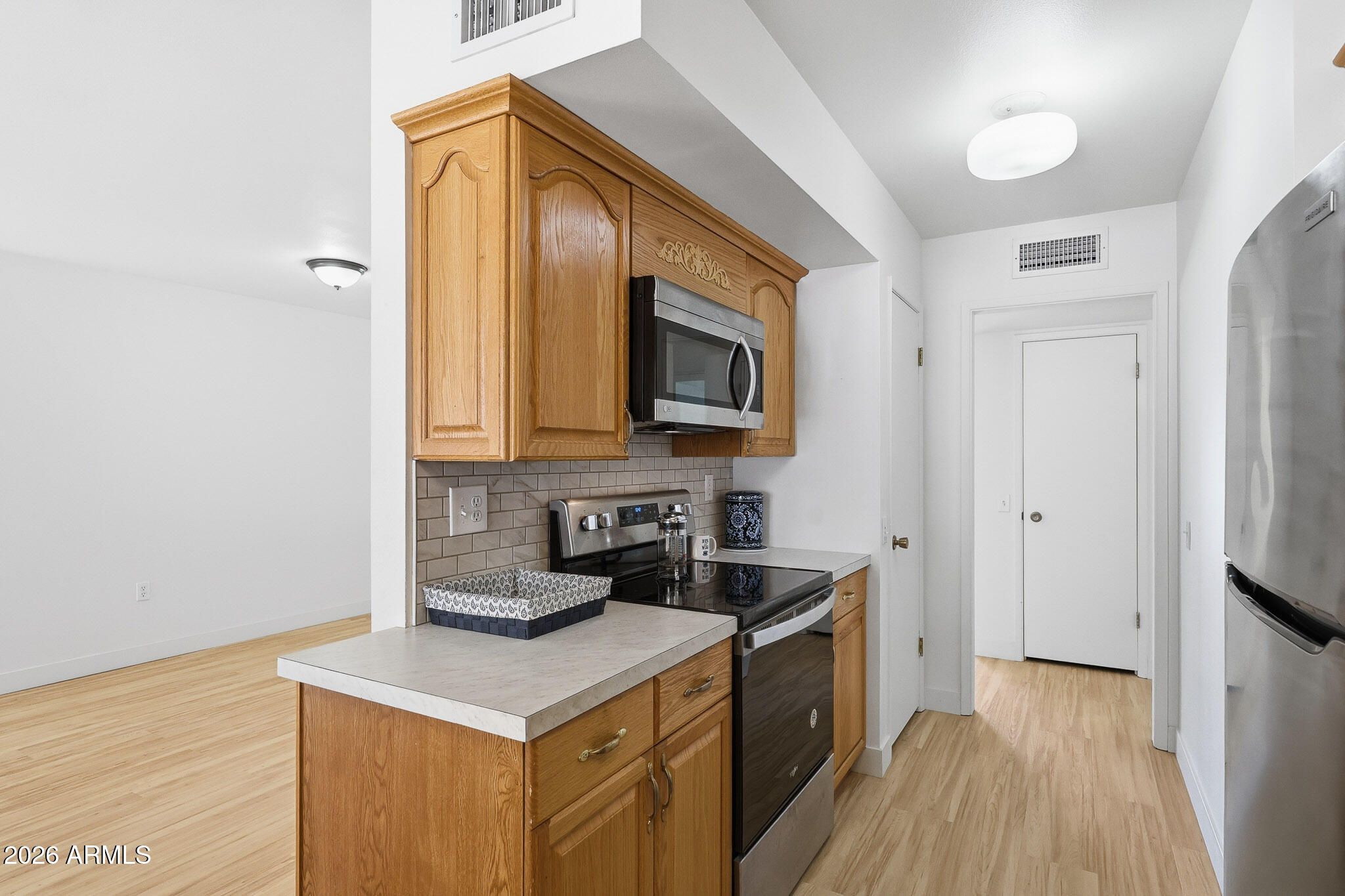 - Refrigerator, Built-in Microwave, Dishwasher, Disposal, Electric Range, Electric Oven, Electric Cooktop