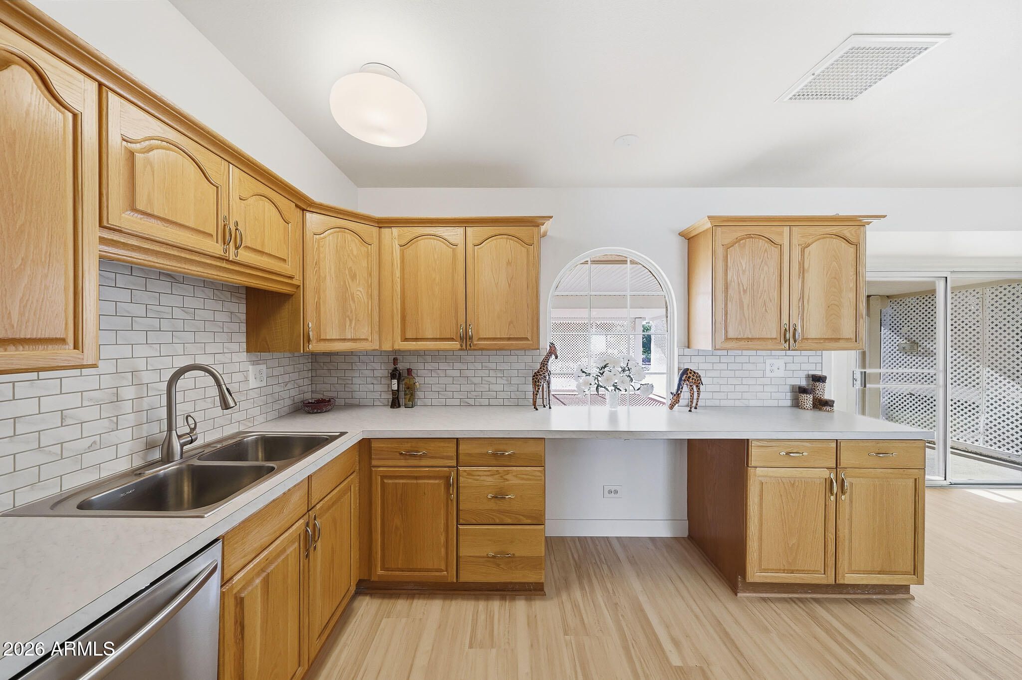 Located in the desirable 55+ Active Adult Community of Sun City West, this charming home is packed with thoughtful upgrades and ready for move-in. Enjoy peace of mind with fresh paint throughout, new baseboards, and no popcorn ceilings. A new roof and A/C installed in 2015/2016, a hot water heater replaced in 2018, and a beautifully remodeled kitchen completed in 2021 featuring stainless steel appliances, updated sink, and modern cabinetry. Brand new vinyl plank flooring has been installed throughout the home. The spacious back patio was expanded in February 2021 to over 1,200 sq. ft., including a 12x30 extended roof—perfect for outdoor entertaining. Don't miss out—this gem won't last long!