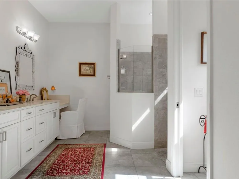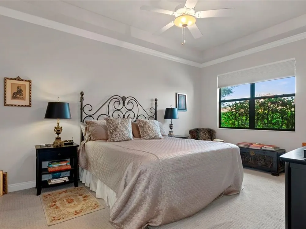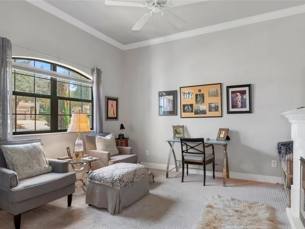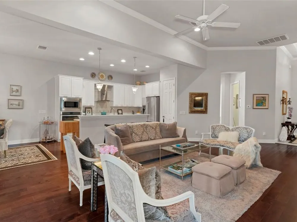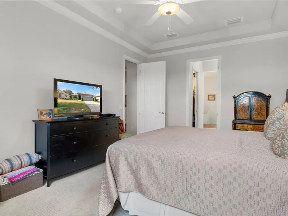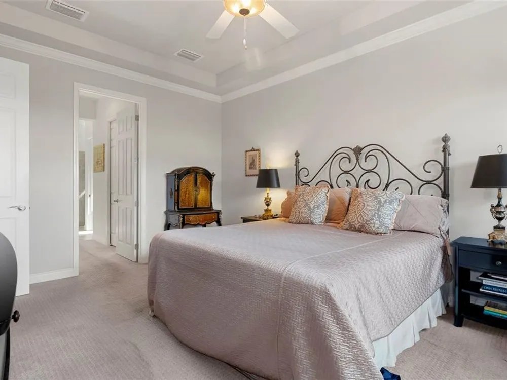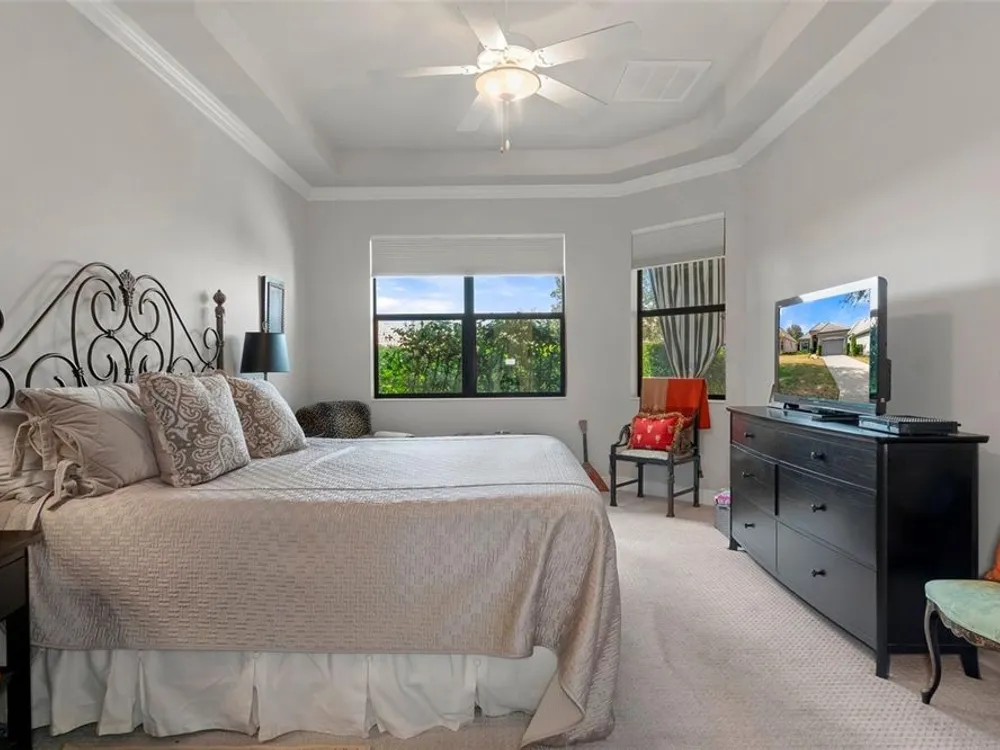 - Ceiling Fan(s), High Ceilings, Living/Dining Room, Open Floorplan, Main Level Primary, Solid Surface Counters, Thermostat, Tray Ceiling(s), Walk-In Closet(s), Window Treatments